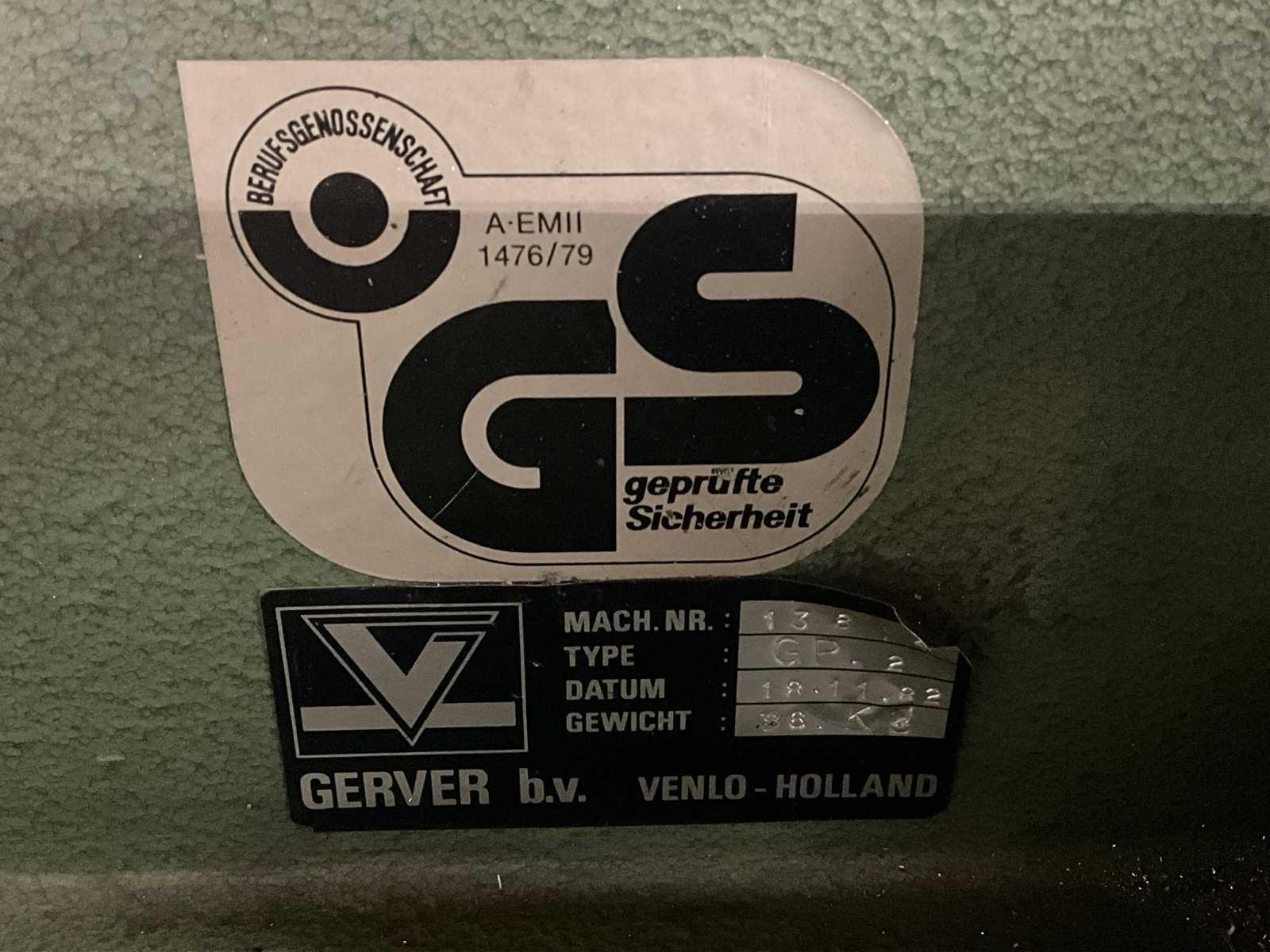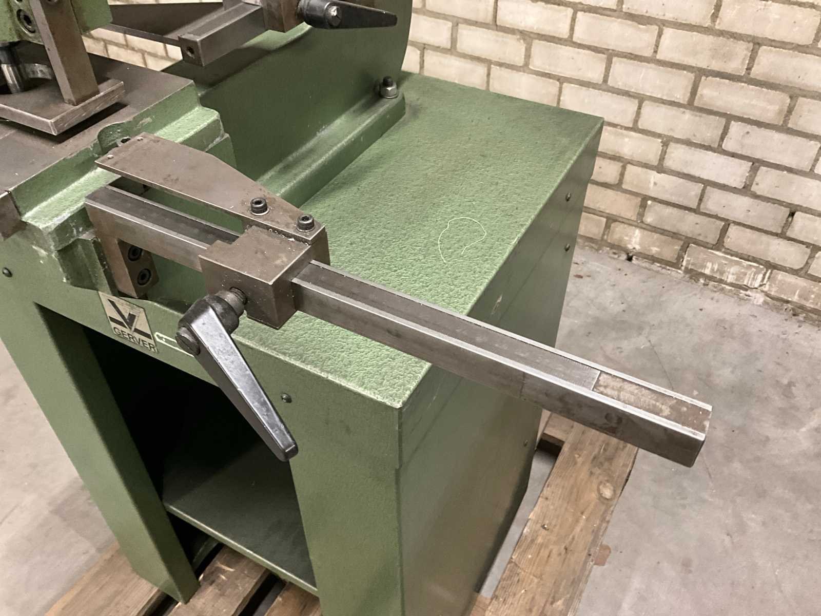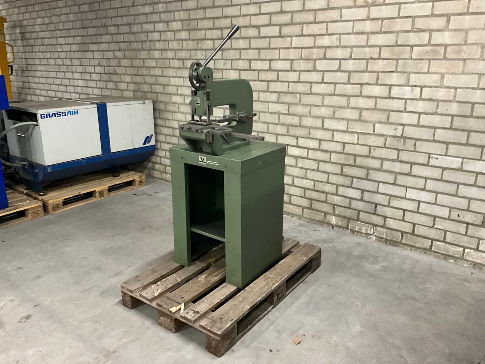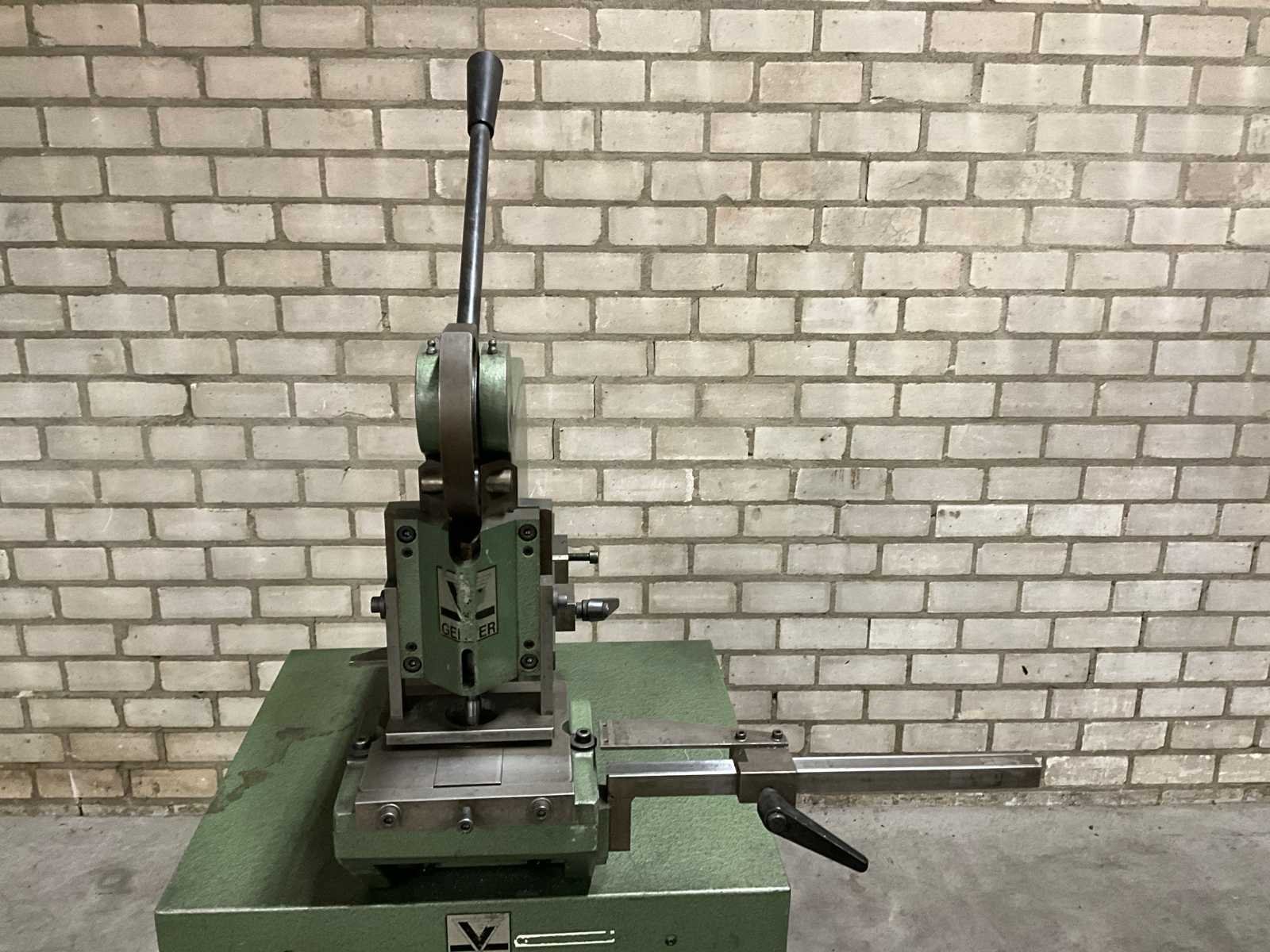 Maximale plaatdikte 3mm aluminium, 1,5mm staal, 1mm RVS; voorzien van: handmatige bediening; LET OP: Koper is zelf verantwoordelijk voor het uithuizen van het kavel. Er is een heftruck aanwezig! Nee Merk: Gerver B.V. Type: GP-2 Bouwjaar: 1982 Serienummer: 13824 Max. plaat afm. l: 350mm Max. plaat afm. b: 490mm Max. plaatdikte: 3mm Machinegewicht: 96kg Afmeting l: 660mm Afmeting b: 750mm Afmeting h: 1550mm