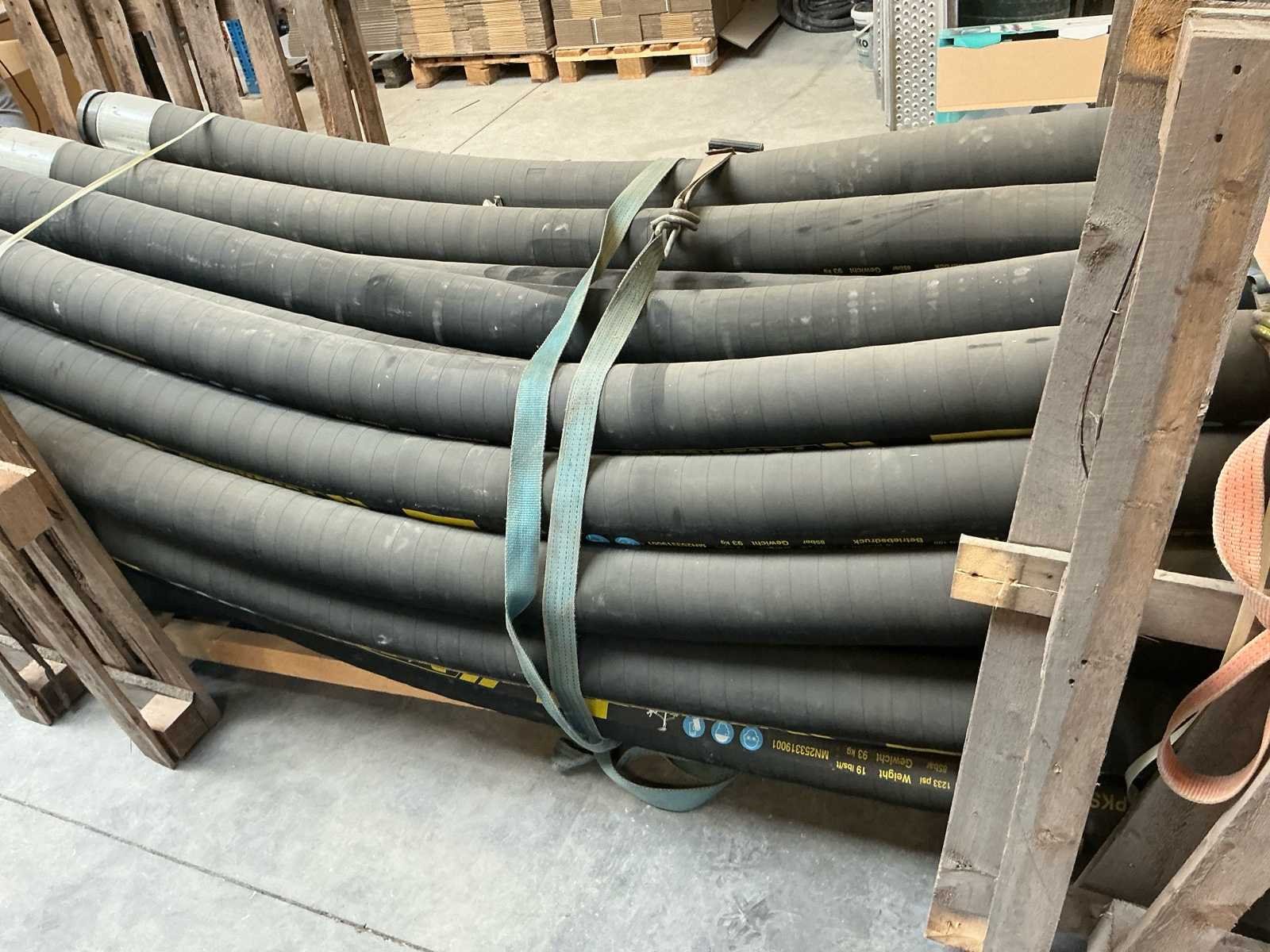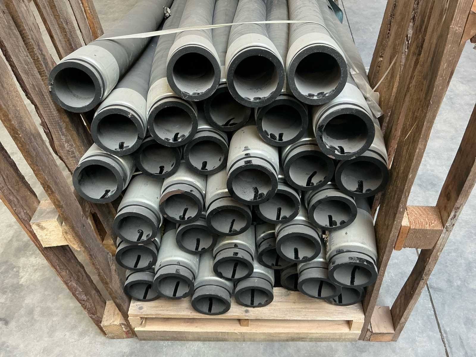 Voorzien van; 34 X 3 meter beton slangen niet gebruikt. 49 zwarte ringel; 6 schoonmaak ballen ; 50 afsluitingen/ koppelringen Nee Merk: Putzmeister Type: SK100 Afmeting l: 3mm Afmeting b: 100mm Afmeting h: 100mm