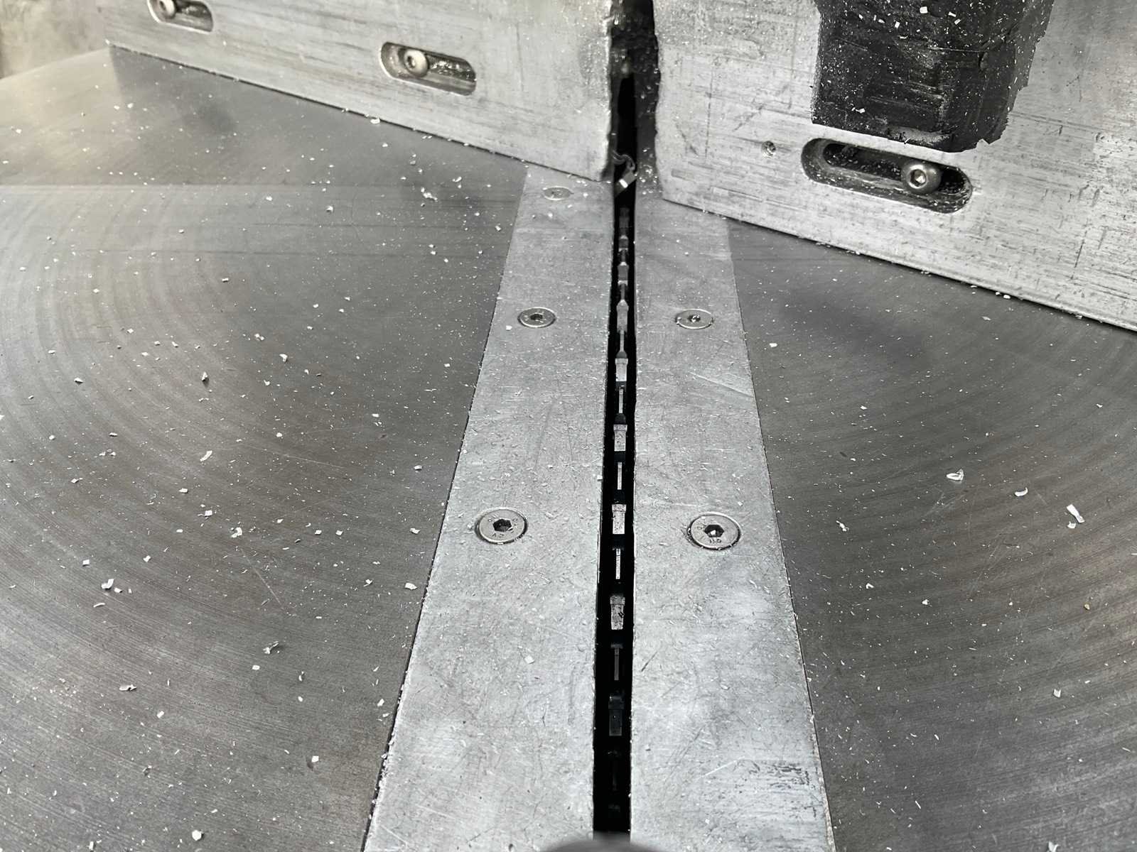 2850 rpm, breedte tafel: 770mm, voorzien van: afzuiginstallatie, aanvoerbaan (2x 4000mm), No Merk: Haffner Type: US 163 Bouwjaar: 1999 Zaagblad Ø: 5500mm Aansluiting: 400V Machinegewicht: 237kg Afmeting l: 940mm Afmeting b: 980mm Afmeting h: 1400mm