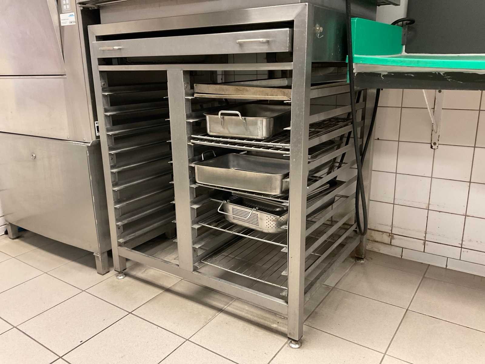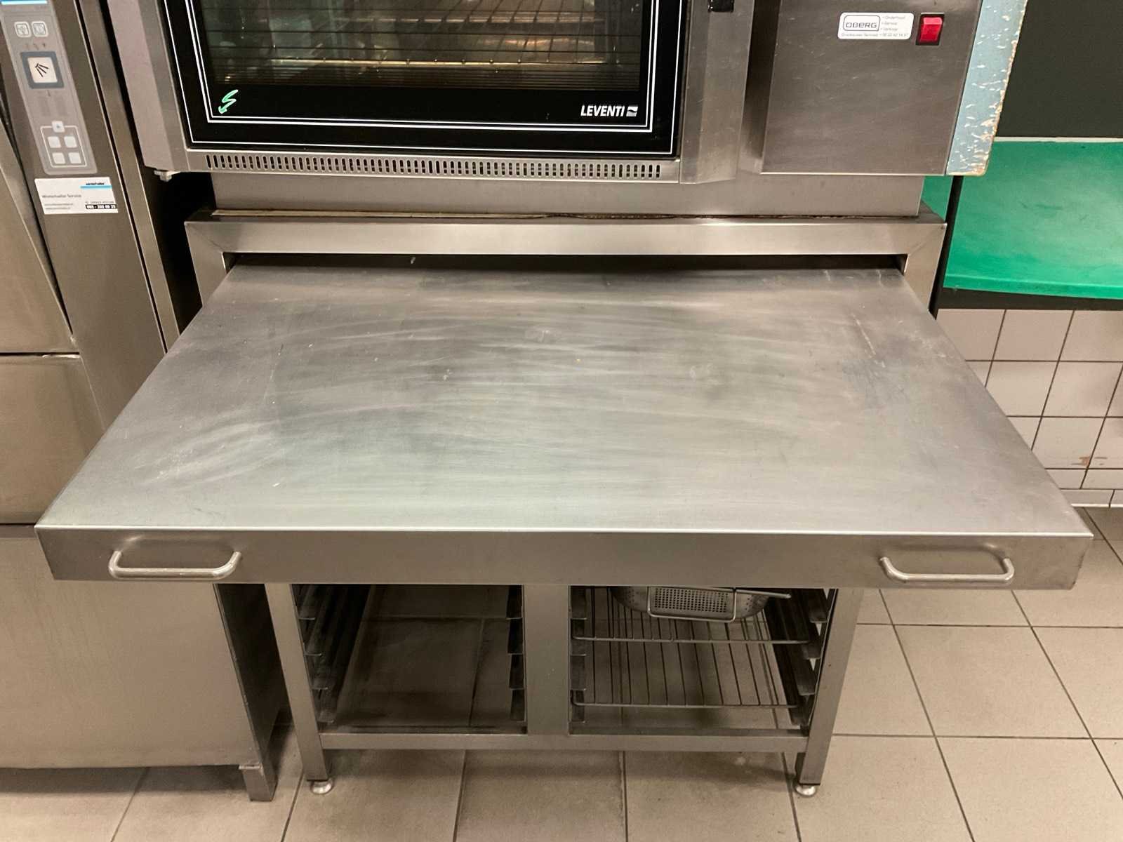 Voorzien van: RVS plateau onderstel, uittrekbaar werkblad, afzuiginstallatie, No Merk: Leventi Type: Combimat DGT Aantal niveau's: 6 Aansluiting: 400V Totale afmeting L: 80cm Totale afmeting Breedte: 98cm Totale afmeting Hoogte: 209cm