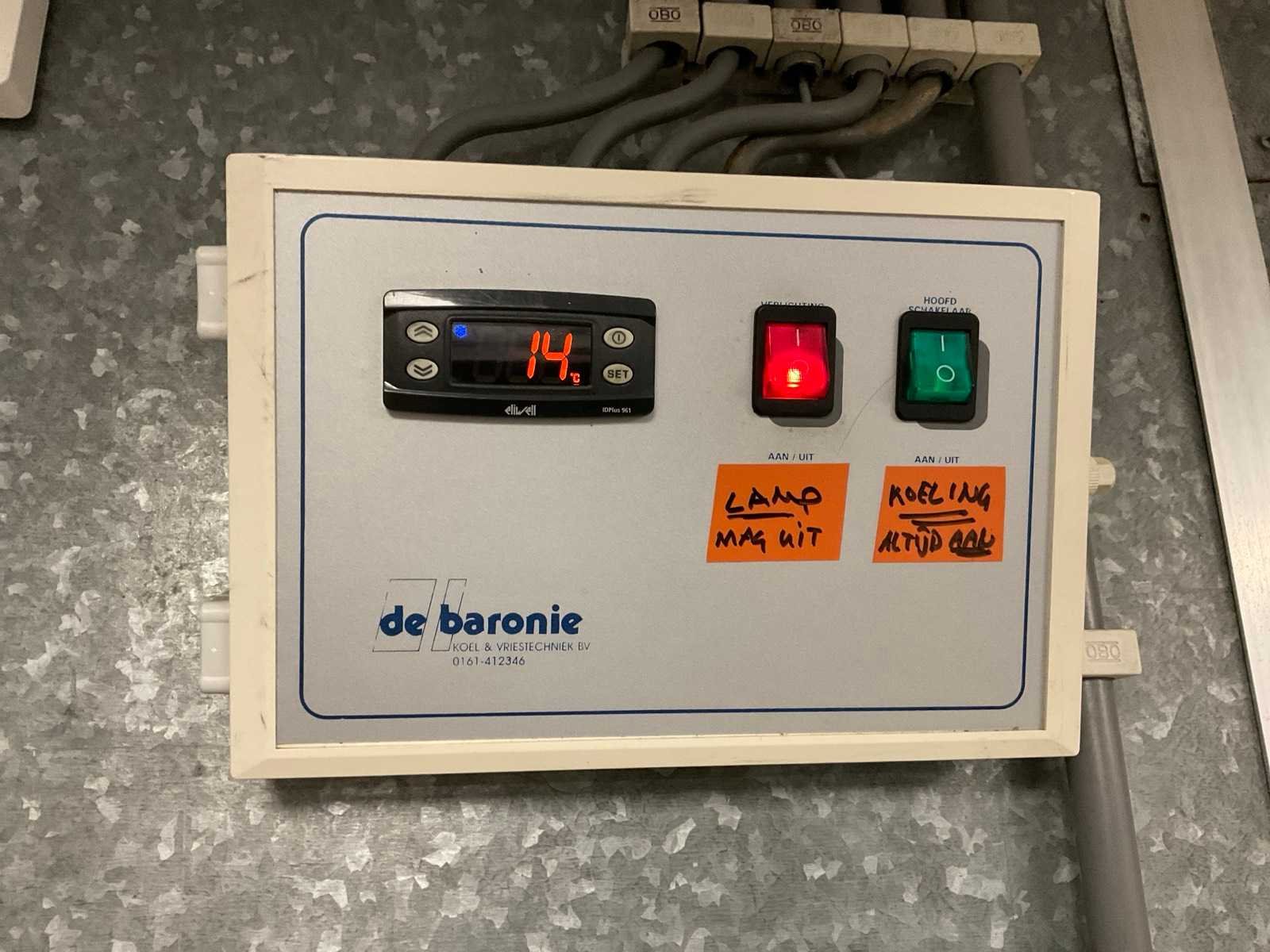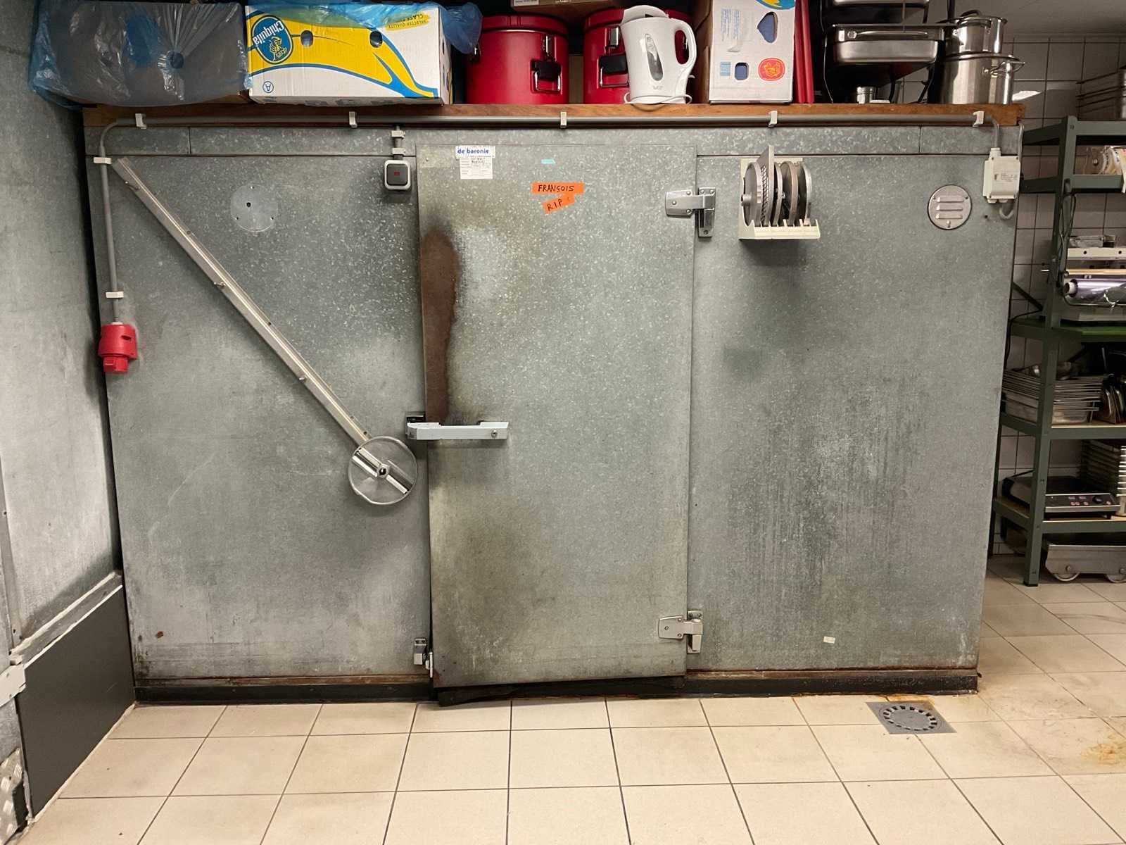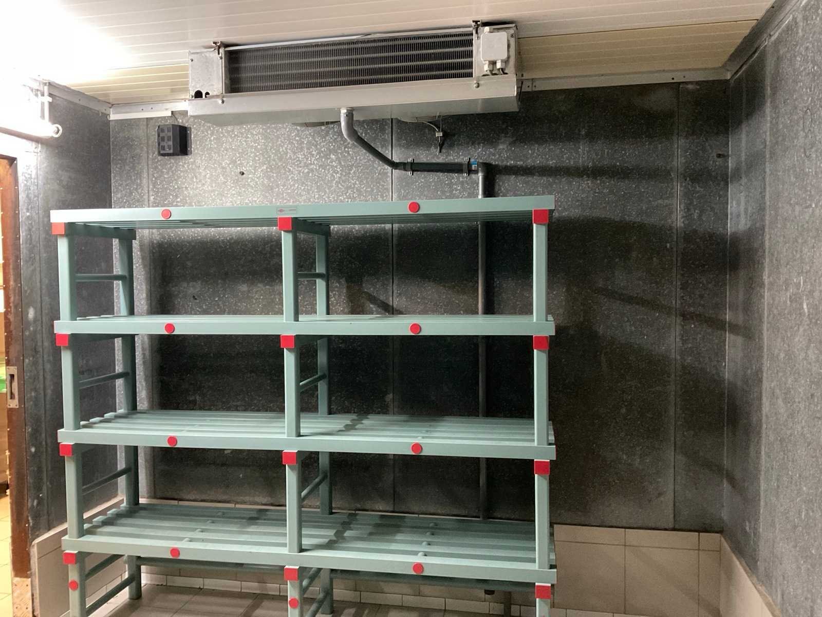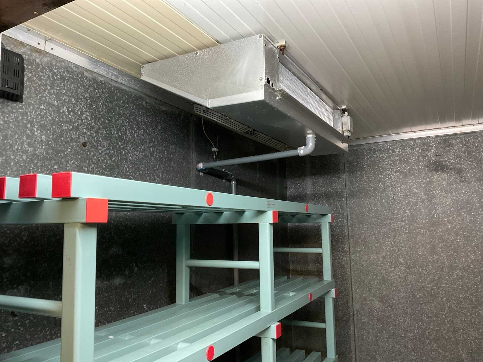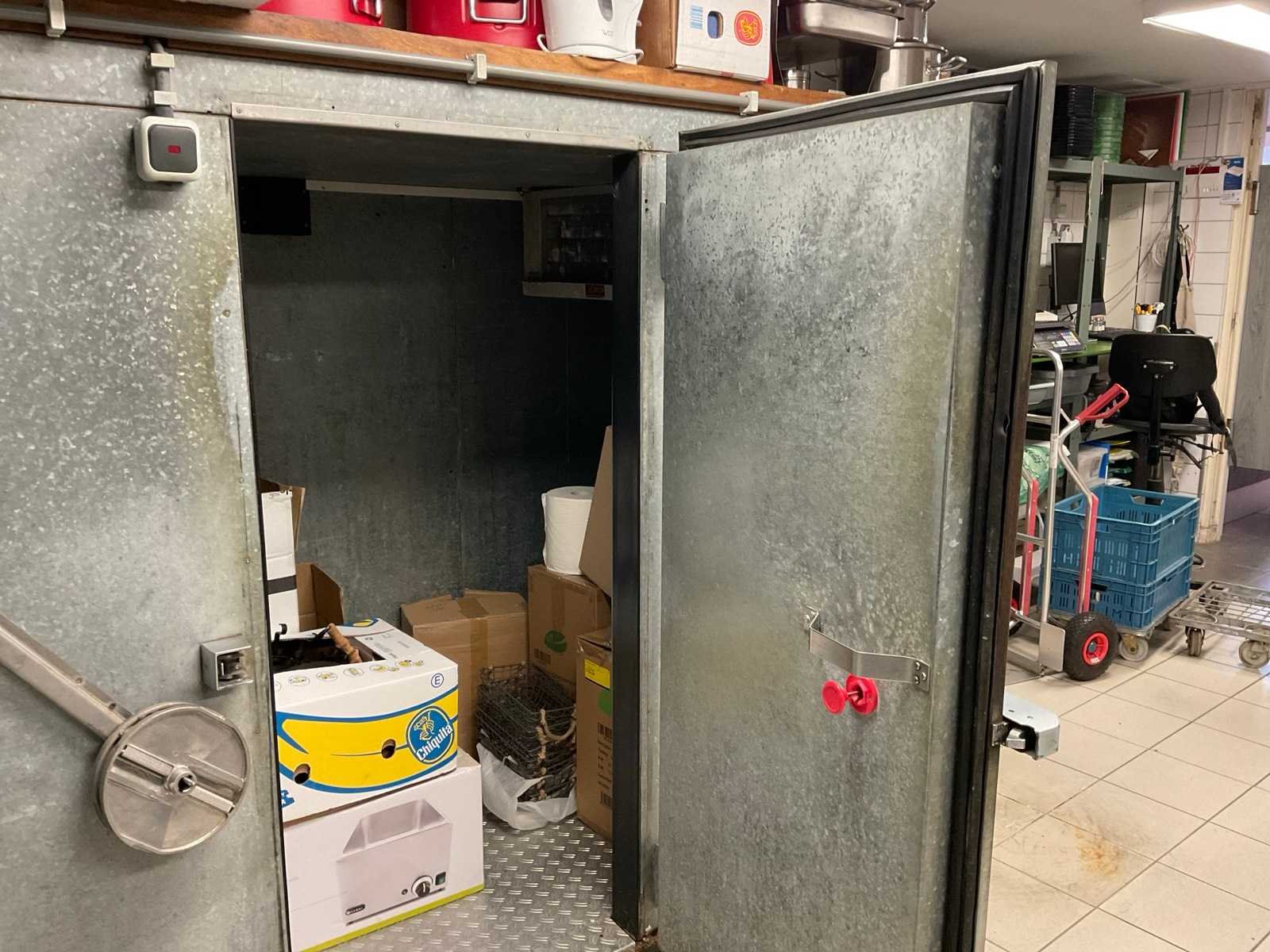 Bestaande uit 2 koelcellen (1x 3500x3050x2400 & 2700x1300x1800mm), voorzien van: koelunit op het dak, 3x koelcel stellingen, Dyzle temperatuur bewaking met modum, No Totale afmeting L: 3050mm Totale afmeting Breedte: 3500mm Totale afmeting Hoogte: 2400mm