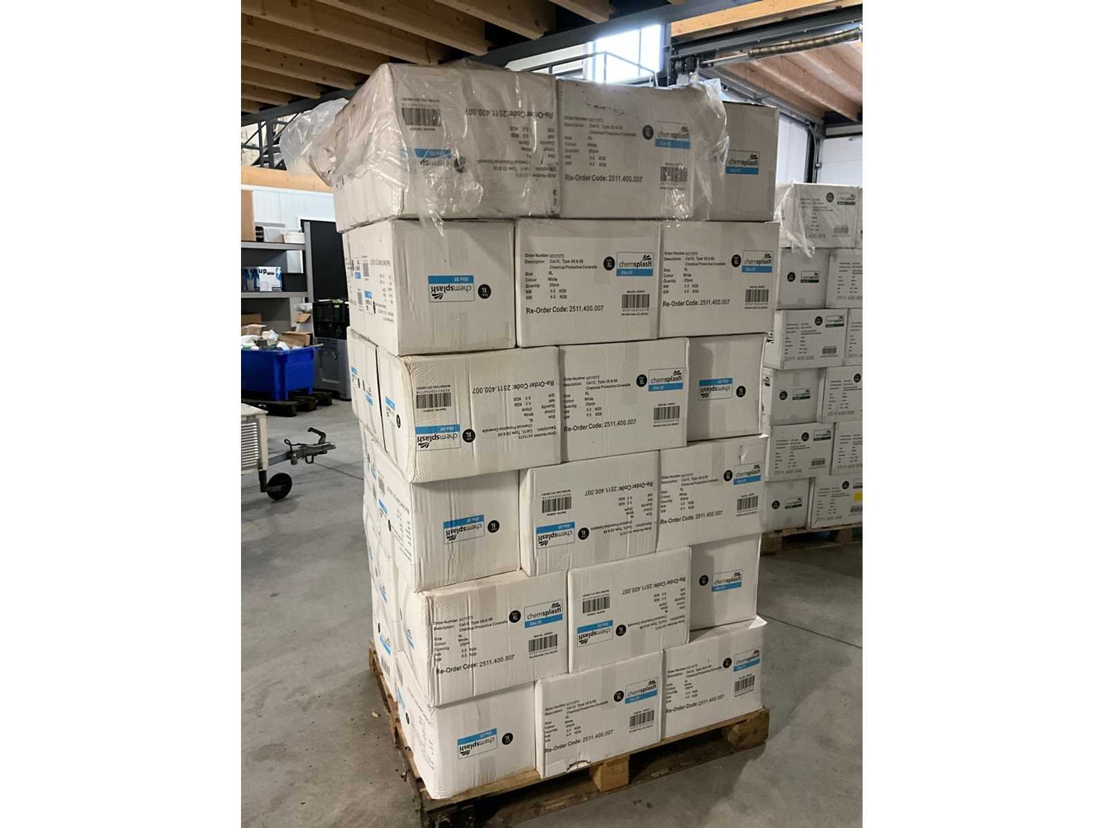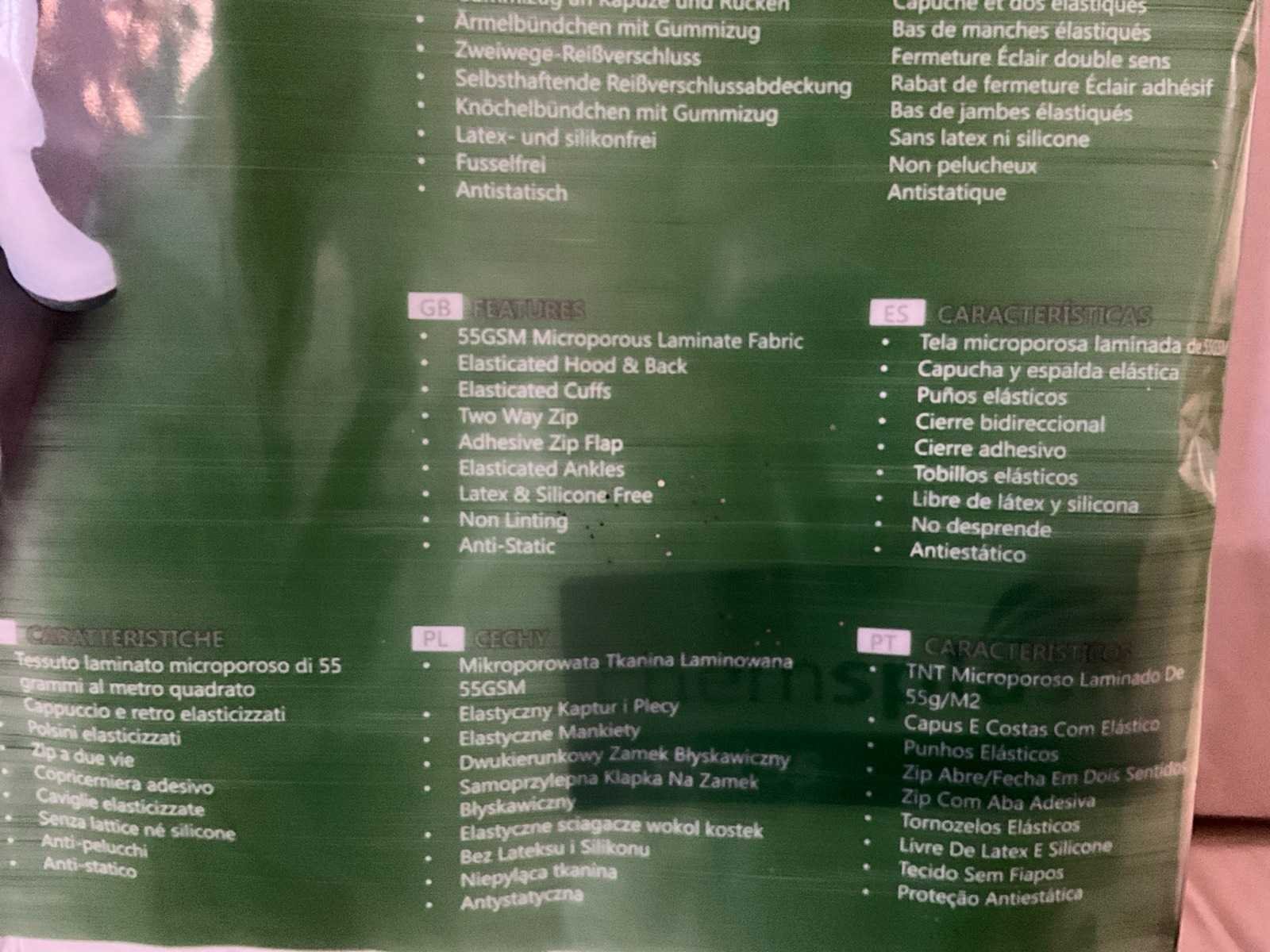 Betreft partij van 48 dozen ieder met 25 stuks; 1 pallet 1000x1200x2100mm (lxbxh) Nee Merk: Chemsplash Model: Eka 55 Cat. III Maat: XL