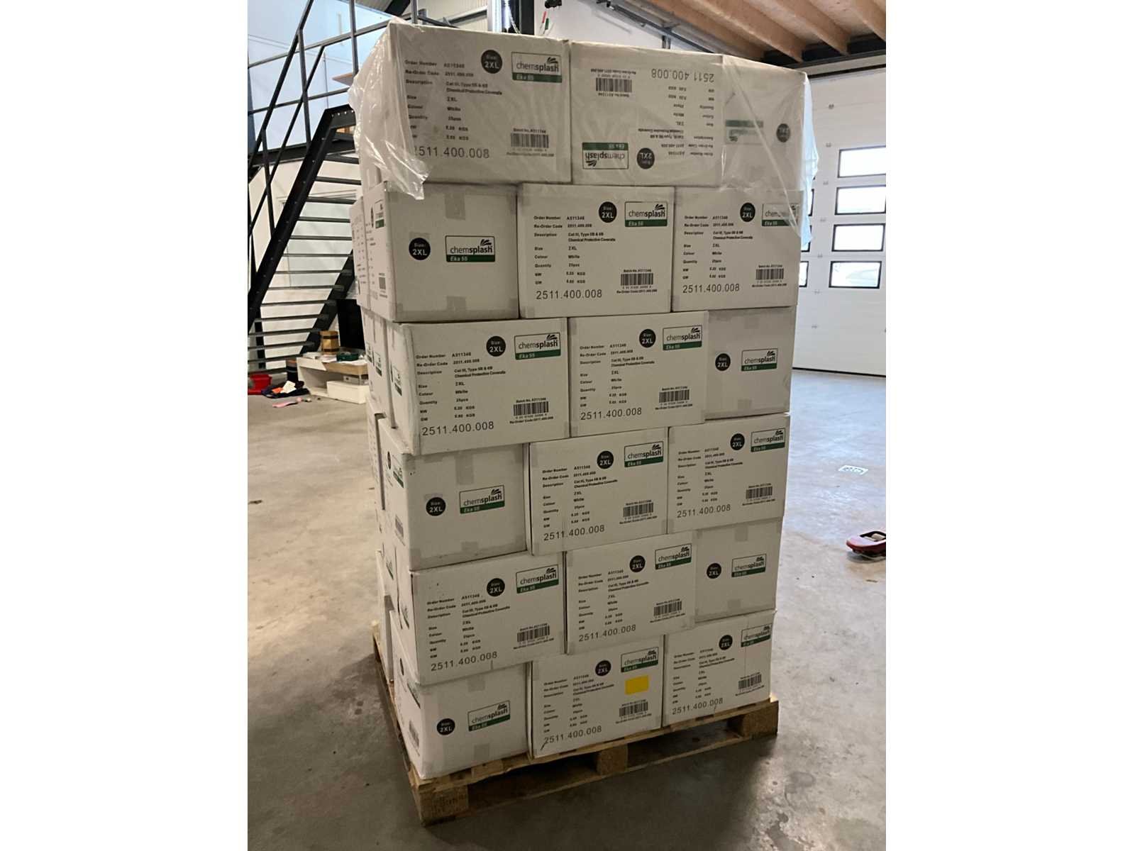 Betreft partij van 48 dozen ieder met 25 stuks; 1 pallet 1000x1200x2100mm (lxbxh) Nee Merk: Chemsplash Model: Eka 55 Cat. III Maat: 2 XL