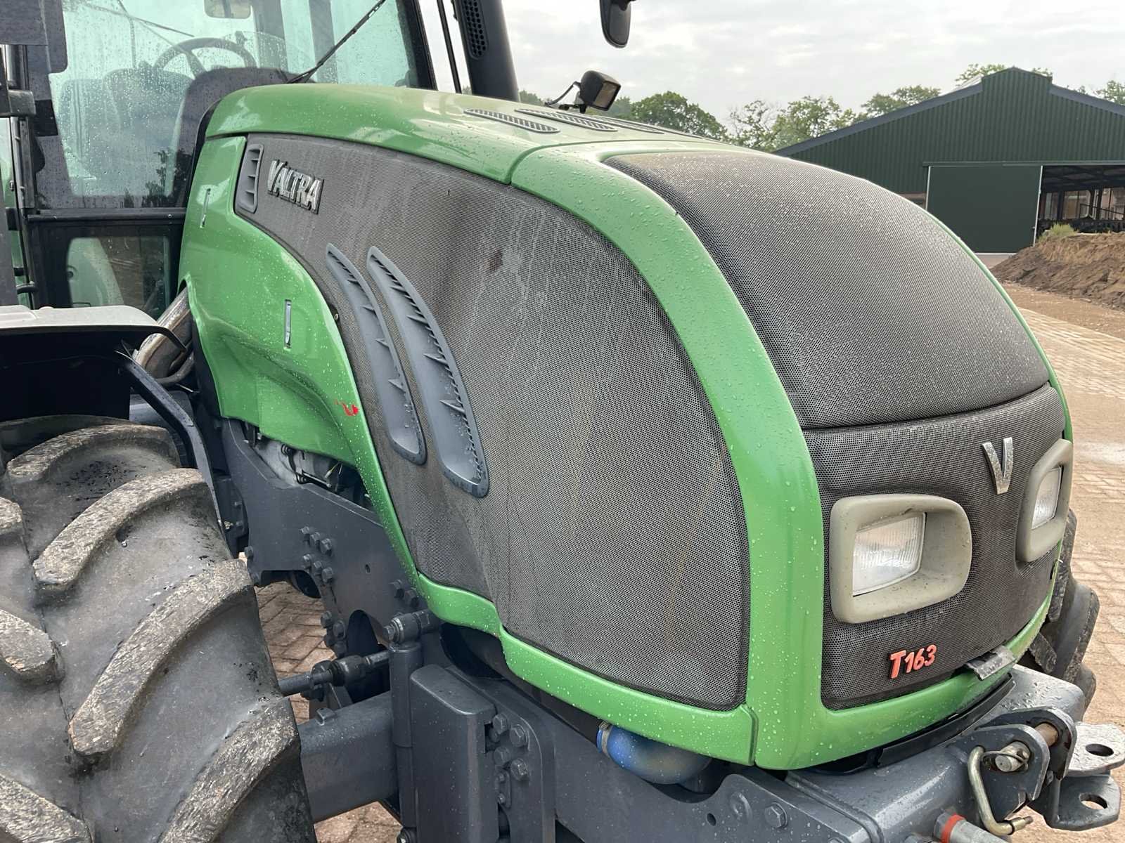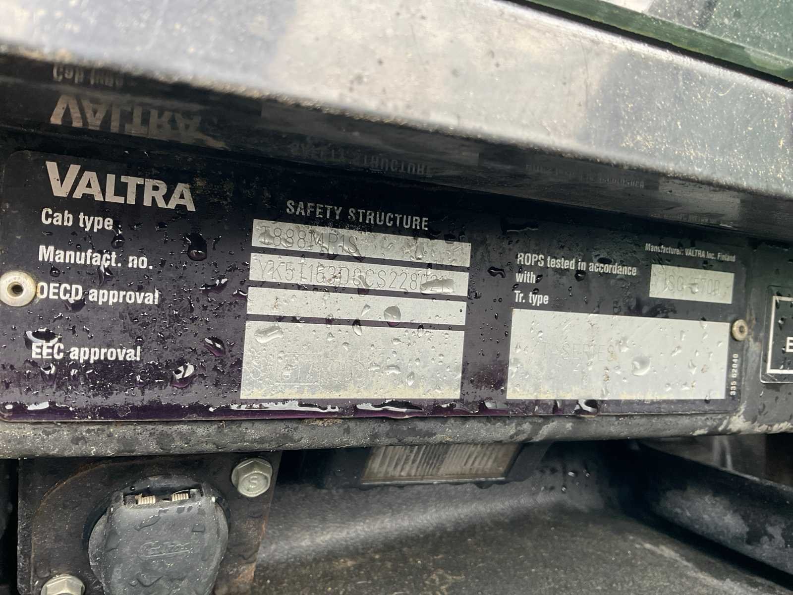 Voorzien van: omkeerinrichting (2e stuur en pedalen achterin cabine), fronthefinrichting, voorasvering, 4x dubbelwerkend ventiel achter, load sensing, luchtsysteem, luchtremaansluitingm ondertrekhaak (pitonfix), verstelbare boventrekhaak, topstang, spatbordbediening, geveerde stoel, stoelverwarming, difflock, radio, 1000-540e rpm aftakas, ad-blue Nee Merk: Valtra Type: T163e Bouwjaar: 2014 Serienummer: YK5t163D0CS228021 Kenteken: T-80-GGS Afgelezen urenstand: 9682 Aantal hydraulische ventielen achter: 4 Bandenmaat voor: Firestone 540/65R30 Bandenmaat achter: Trelleborg 650/65R42 Fronthefinrichting: true Totale afmeting L: 5100mm Totale afmeting Breedte: 2520mm Totale afmeting Hoogte: 3060mm Datum eerste toelating: 2014-06-30