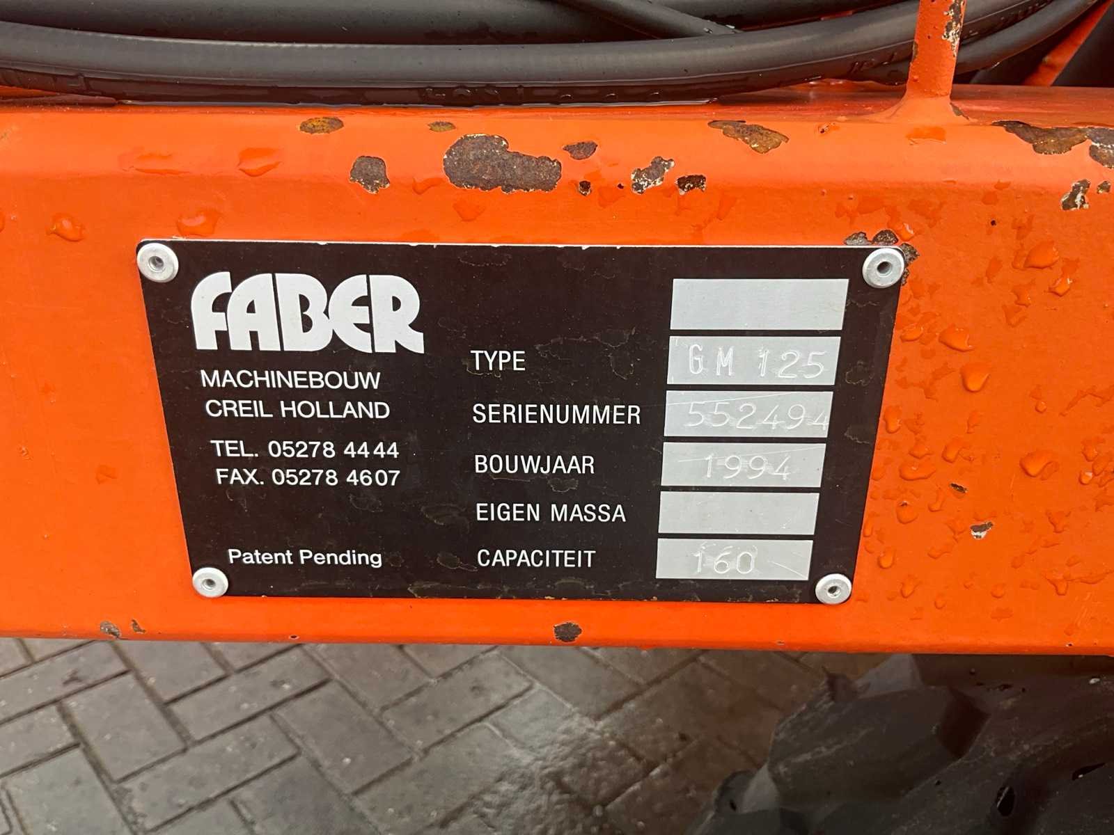 Voorzien van sproeikar (Sproeikar Gereviseerd in 2023); hydraulische stempels; kopakkersproeier; hydraulische aandrijving; Nee Merk: Faber Lengte: 5600cm Type: Maxi GM125 Bouwjaar: 1994 Serienummer: 552494 Diameter circa: 125mm Totale afmeting L: 8000mm Totale afmeting Breedte: 2650mm Totale afmeting Hoogte: 4000mm