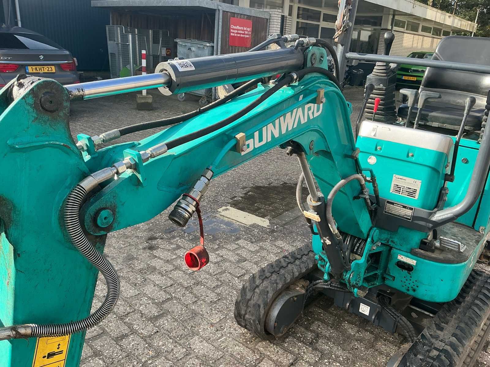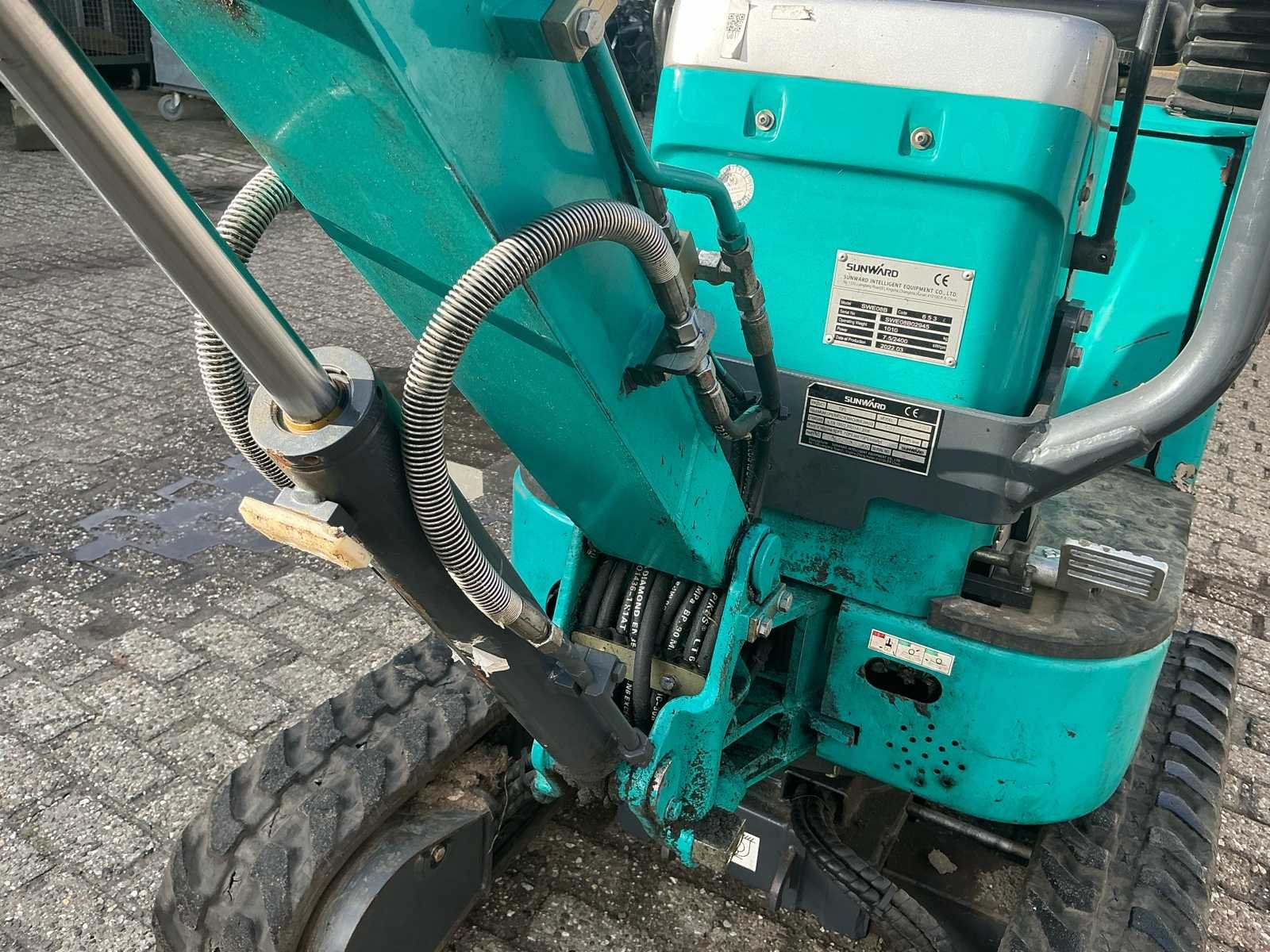 Deze machine beschikt over een inklapbaar subframe, rubberen rupsbanden (verstelbare breedte van 750-1000mm). De emissie rating: EU Stage V. Displacement: 0,75 L. De machine heeft een maximale graafkracht van 9.4 kN. Machine is hydraulisch en heeft de optie voor verschillende koppelingen zoals een prikker. Nee Merk: SUNWARD Type: SWE08B Bouwjaar: 2022 Merk motor: Yanmar Motorvermogen (kW): 7kW Brandstof: Diesel Bedrijfsgewicht: 1010kg Gieklengte: 2500mm Max. graafdiepte: 1825mm Inclusief graafbak: Ja Graafbak afm. b: 200mm Graafbak afm. h: 400mm Rups breedte: 200mm Afgelezen urenstand: 461 Totale afmeting L: 3500mm Totale afmeting Breedte: 1000mm Totale afmeting Hoogte: 2250mm