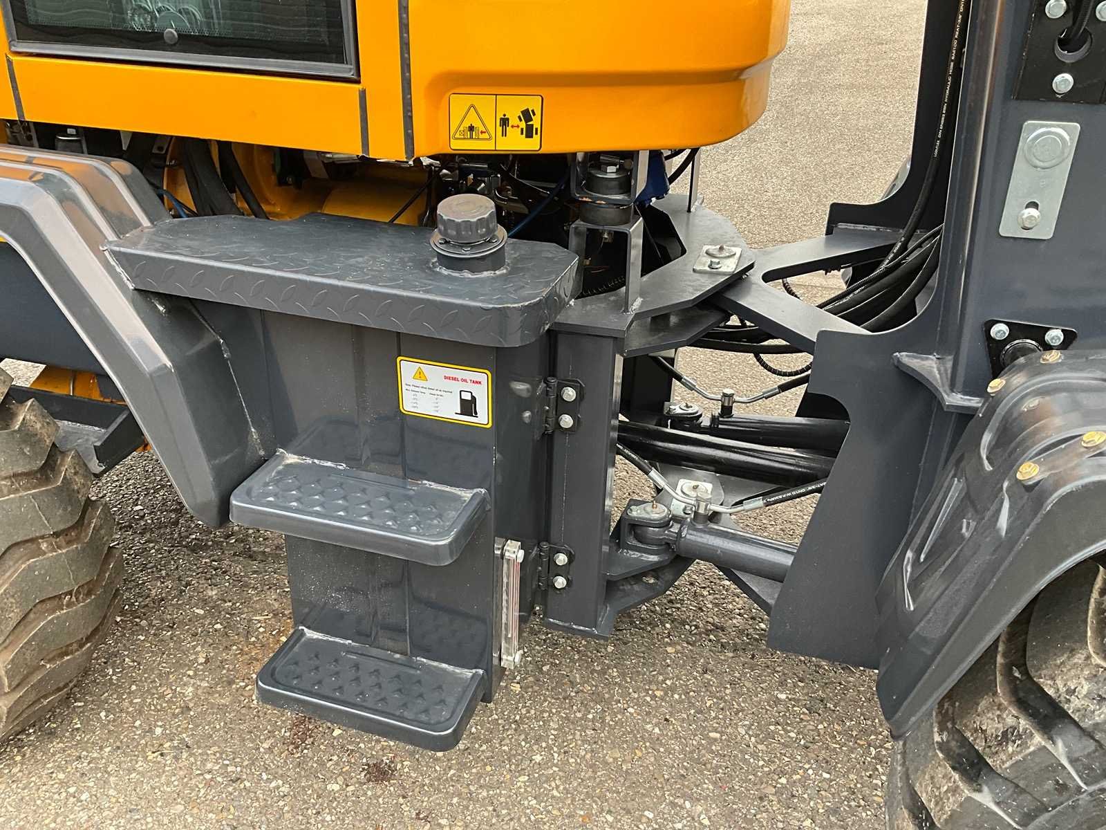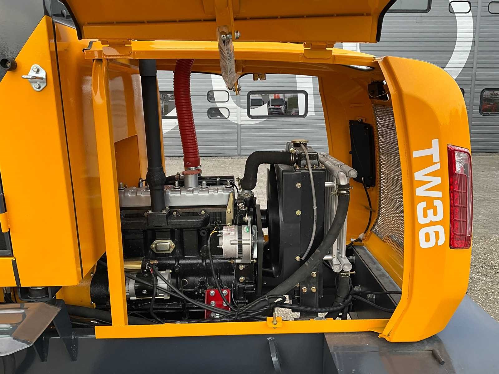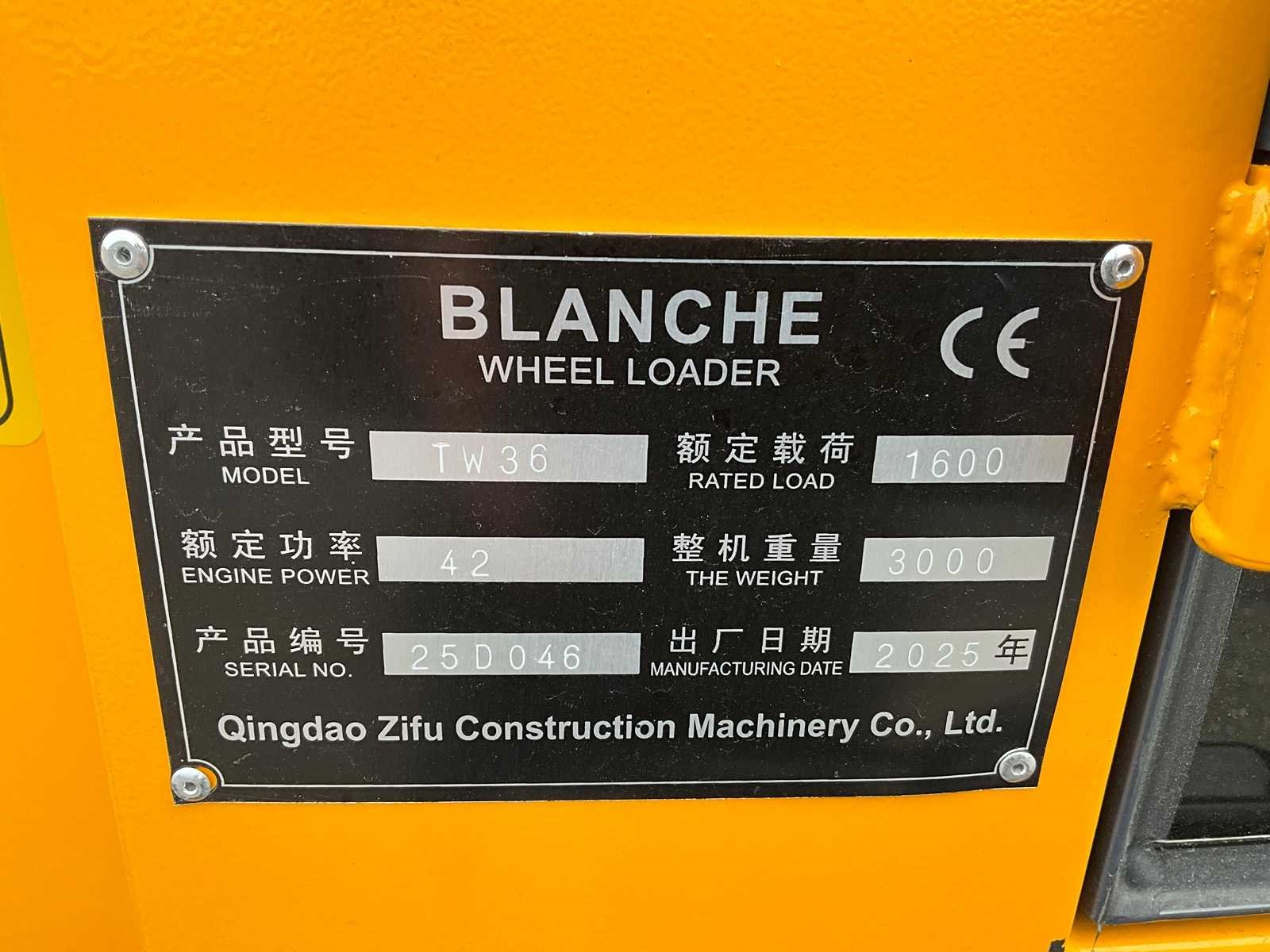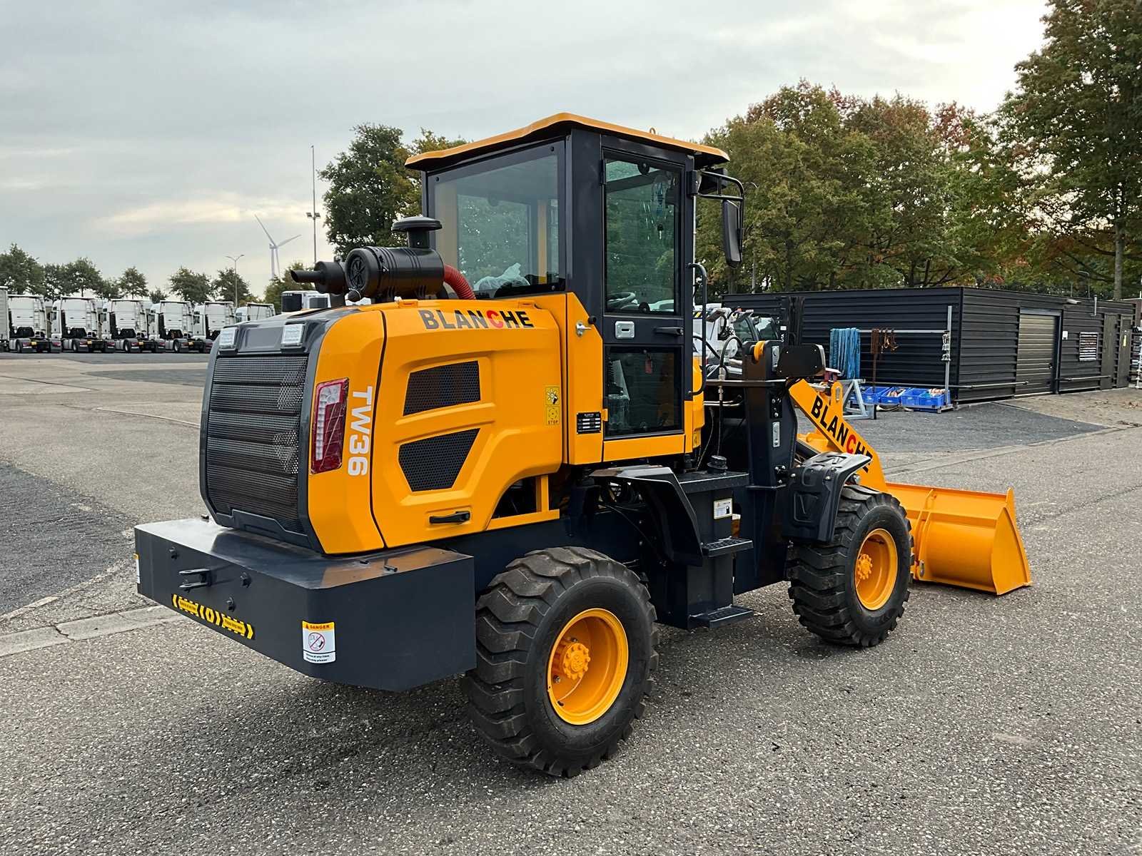 Dichte bak met tanden 1800mm, trommel remmen, 4WD, 2 rijsnelheden, LED verlichting, joystick bediening Nee Merk: Blanche Type: TW36 Bouwjaar: 2025 Serienummer: 25D046 Motorvermogen (kW): 42kW Aantal cilinders: 4 Brandstof: Diesel Bedrijfsgewicht: 3000kg Graafbak afm. b: 1800mm Bandenmaat: 20.5/70-16 Cabine: true Totale afmeting L: 5500mm Totale afmeting Breedte: 1900mm Totale afmeting Hoogte: 2700mm