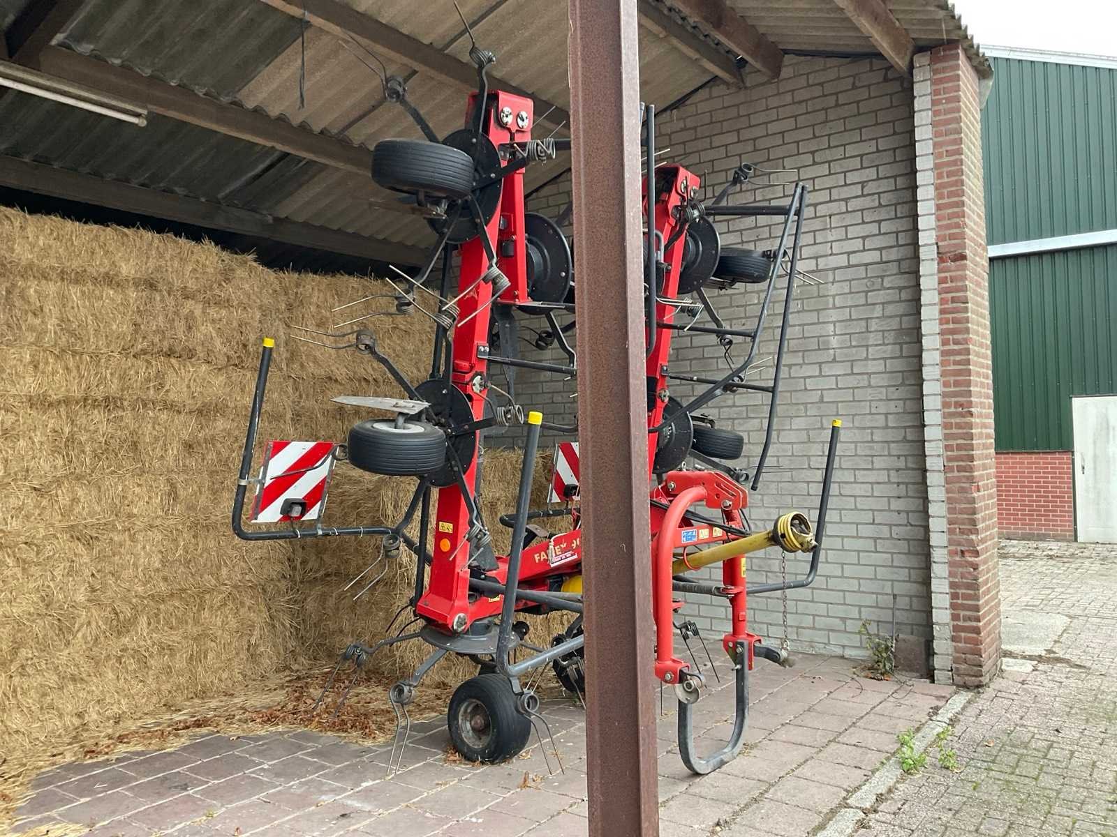 Aftakas aangedreven, voorzien van: 3-punts aansluiting No Merk: Kverneland Type: Fanex 903 Werkbreedte: 9000mm Hydraulisch opklapbaar: true Totale afmeting L: 2000mm Totale afmeting Breedte: 2700mm Totale afmeting Hoogte: 3440mm Leveringsvoorwaarden: Heftruck aanwezig op locatie.