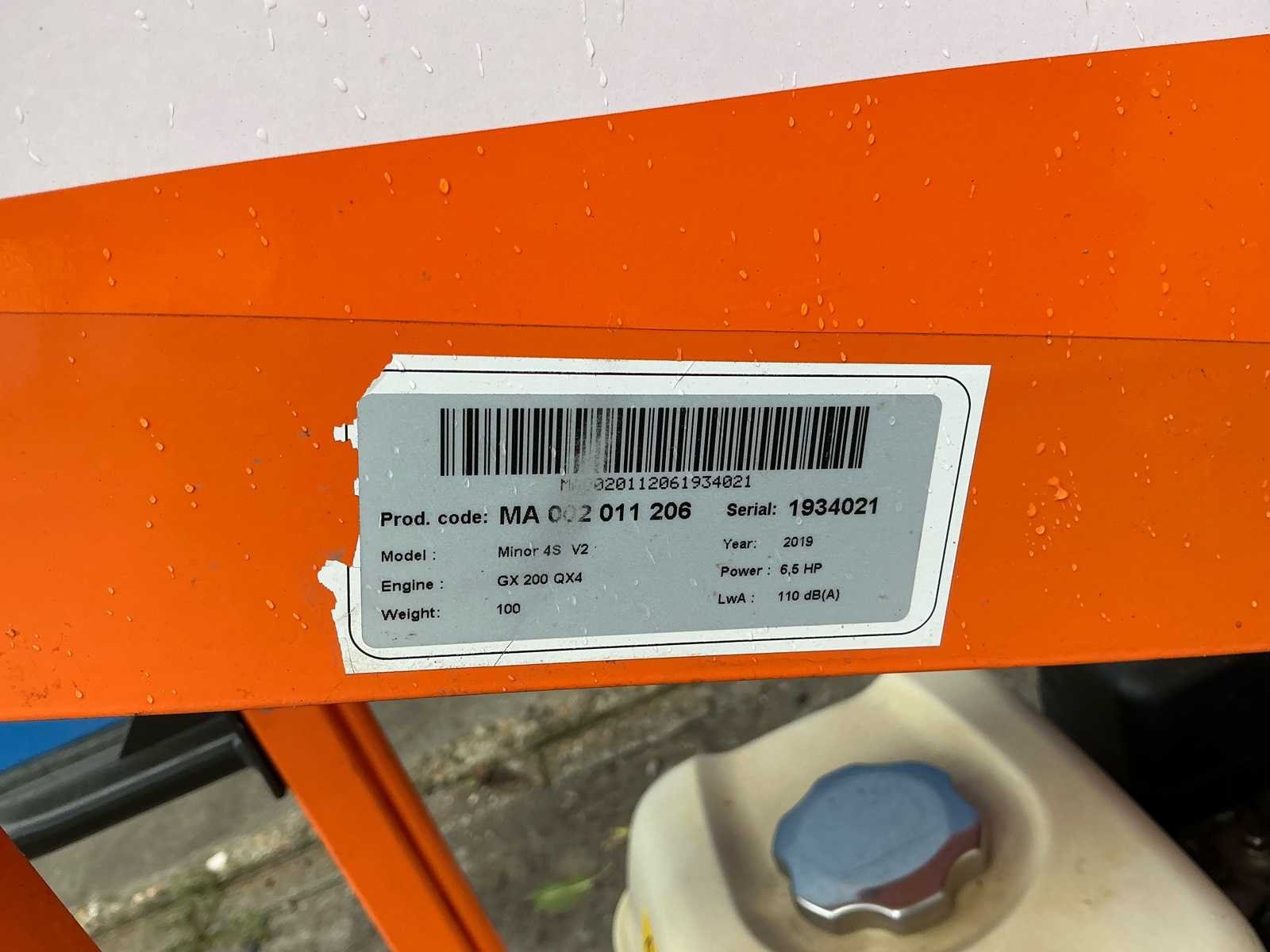 Voorzien van Honda GX200 6,5 pk benzine motor, verrijdbaar onderstel, 190 x 250 mm invoeropening, invoerhoogte 750 mm. Nee Merk: Eliet Type: Minor 4S Bouwjaar: 2019 Serienummer: 1934021 Max. Ø: 50mm Brandstofmotor aangedreven: true Brandstof: Benzine Vermogen: 5kW Eigen gewicht: 100kg Totale afmeting L: 1280mm Totale afmeting Breedte: 520mm Totale afmeting Hoogte: 1000mm