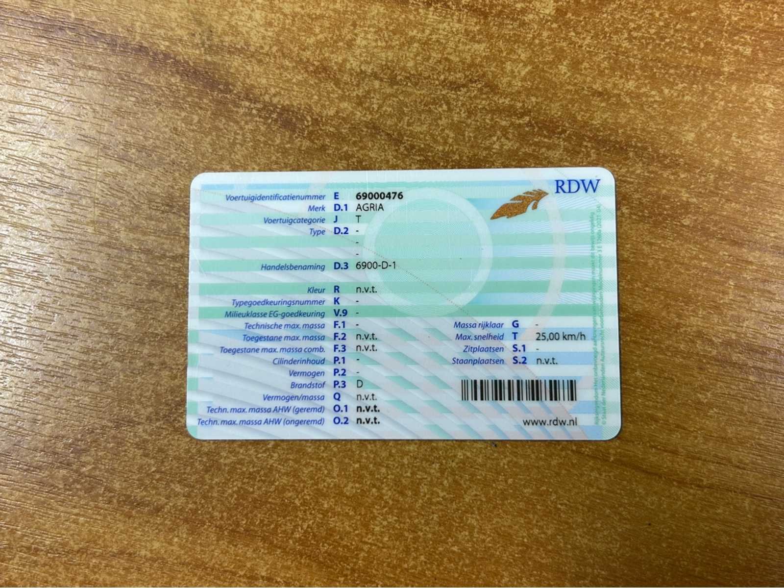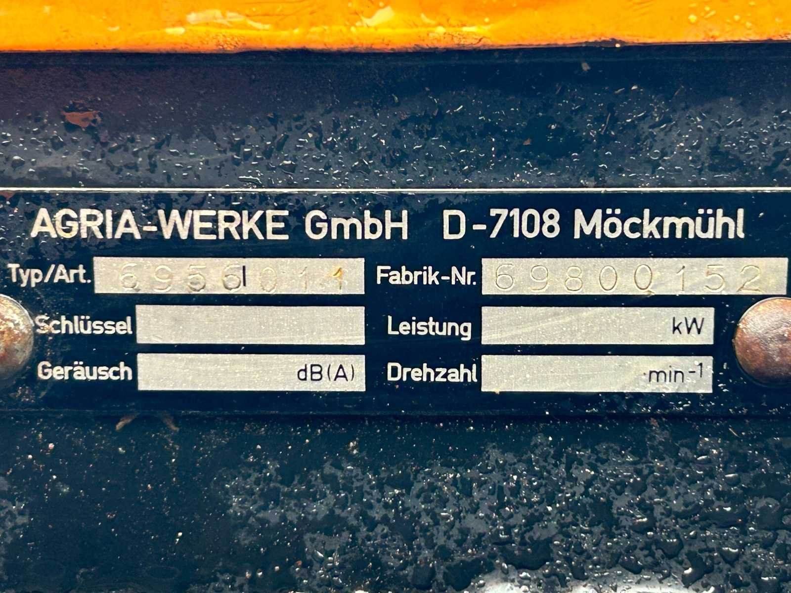Voorzien van: Agria maaidek, Agria cabine (glazen ruiten), fronthefinrichting, frontaftakas, middenaftakas, 1x enkelwerkend hydraulisch ventiel achterzijde, Kubota V1200 4-cilinder dieselmotor, verlichting, rolbeugel, Nederlandse kentekenregistratie (TVN-30-T), (LET OP! differentieel tandwiel defect, slipt door bij belasting. rijden wel mogelijk), Nee Merk: Agria Type: 6900-D1 Serienummer: 69000476 Afgelezen urenstand: 1845 Versnellingsbaktype: 4 versnellingen + H/L Bandenmaat voor: Pirelli 6.5/80-12 Bandenmaat achter: Semperit 10.0/75-15.3 Aantal hydraulische ventielen achter: 1 Fronthefinrichting: true Frontaftakas: true Cabine: true Totale afmeting L: 3100mm Totale afmeting Breedte: 1080mm Totale afmeting Hoogte: 1820mm Leveringsvoorwaarden: Heftruck aanwezig op locatie.