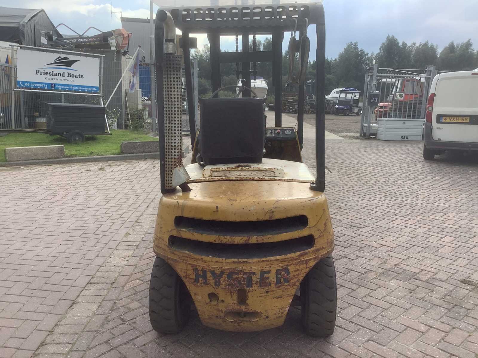 Rijdt en alles functioneert Nee Merk: hyster Type: H50 Bouwjaar: 1995 Serienummer: h503580395 Brandstof: diesel Mast: duplex Aantal wielen: 4 Afgelezen urenstand: 716166 Side-shift: true Duplex mast: true Hefvermogen: 2500kg Lepellengte: 120mm Min. hefhoogte: 10mm Max. hefhoogte: 320mm Hefhoogte: 320mm Vol rubber banden: true Minimale doorrijhoogte: 190mm Totale afmeting L: 380mm Totale afmeting Breedte: 115mm Totale afmeting Hoogte: 220mm Diesel: true
