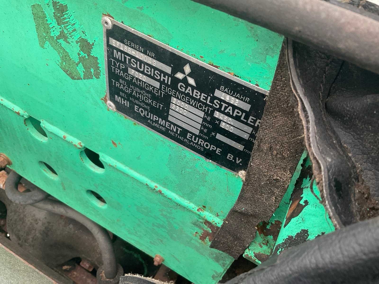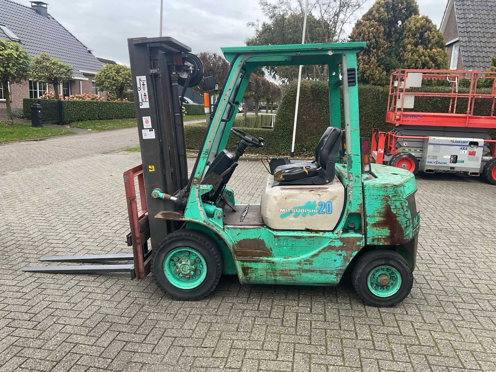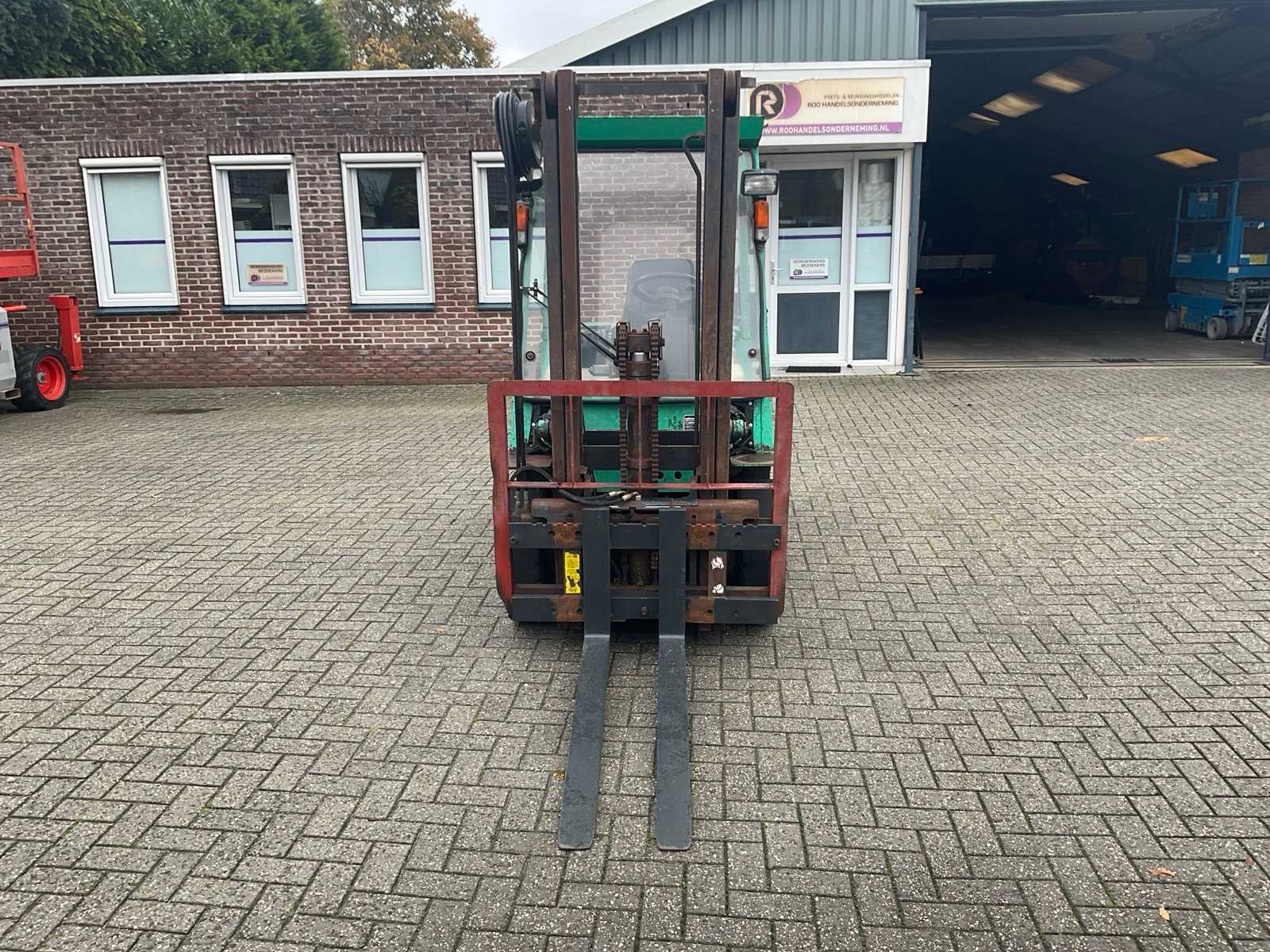 Loopt en rijdt goed Heffen doet hij niet. Nee Merk: Mitsubishi Type: Ef18b. Bouwjaar: 1992 Brandstof: Diesel Mast: Triple Soort band: Volrubber banden Aantal wielen: 4 Afgelezen urenstand: 3771 Side-shift: true Triple mast: true Eigen gewicht: 3460kg Hefvermogen: 2000kg Lepellengte: 1200mm Hefhoogte: 3300mm Vol rubber banden: true Minimale doorrijhoogte: 2200mm Totale afmeting L: 2200mm Totale afmeting Breedte: 1160mm Totale afmeting Hoogte: 2200mm Diesel: true