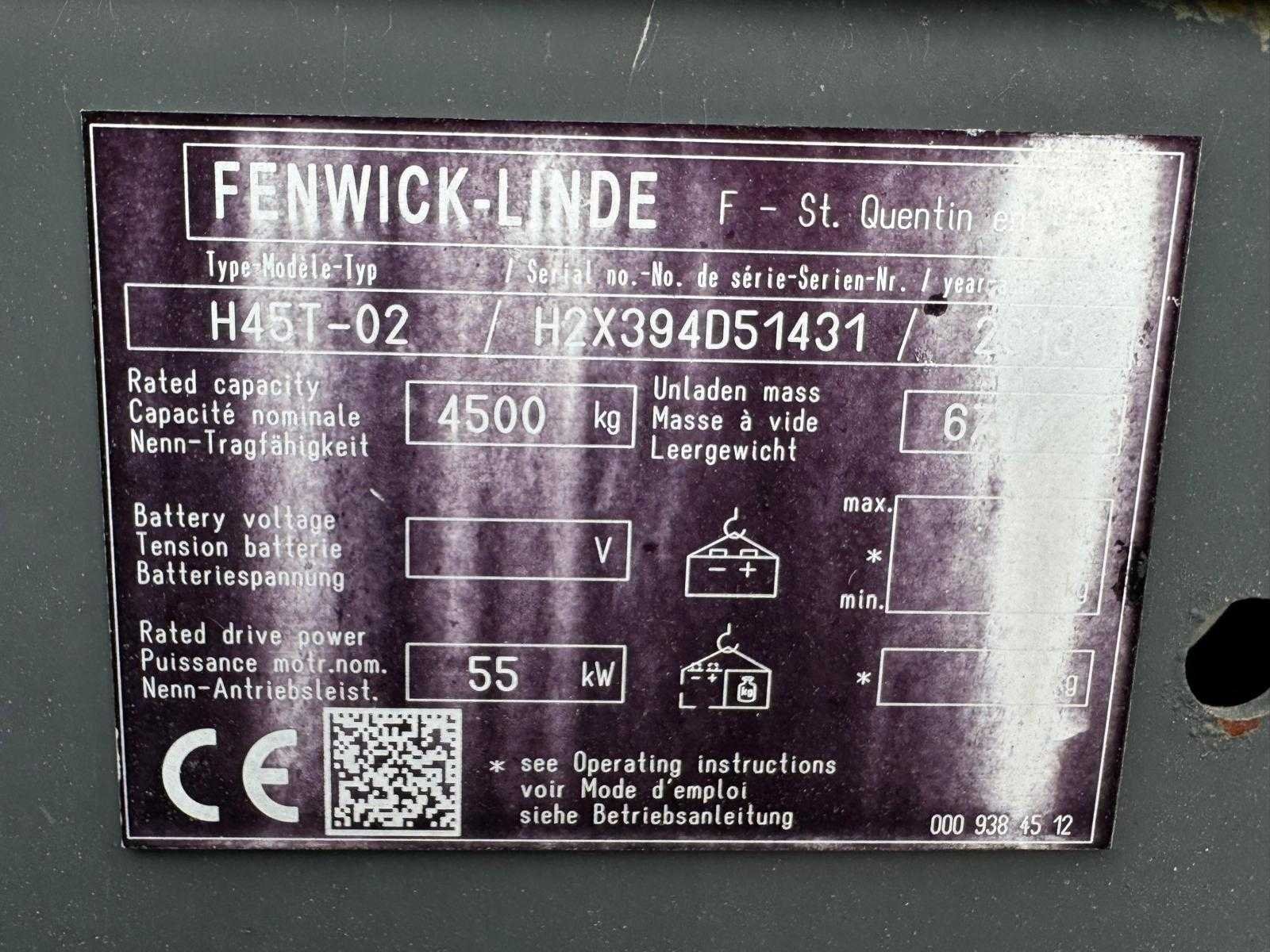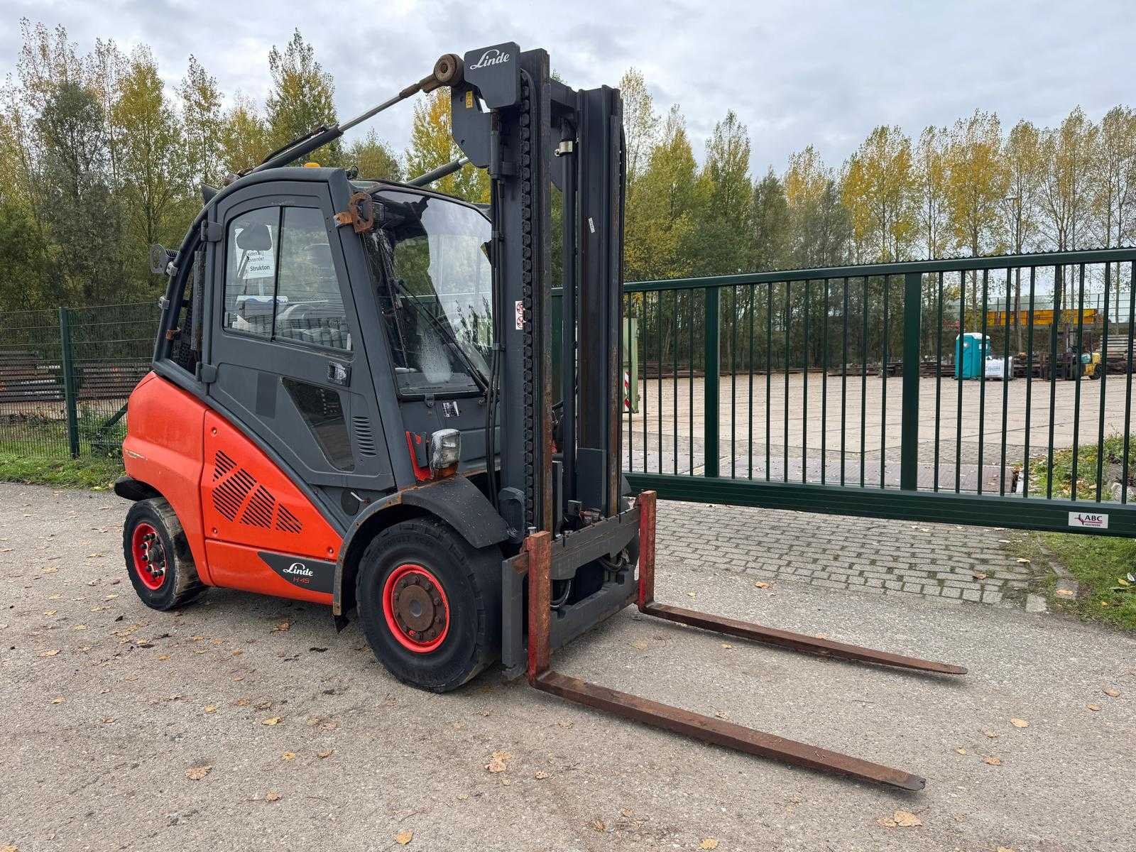 I.v.m. opruiming materiaal dienst aangeboden:airco; extra functie; Start maar rijdt niet; gaat niet van handrem af/ Park stand: Met nederlandse kenteken registratie; dient overgeschreven te worden; zonder gasfles; technische dienst geen inspectie uitgevoerd; No Merk: Linde Type: H45T Bouwjaar: 2014 Serienummer: H2X394D51431 Brandstof: LPG Afgelezen urenstand: 12470 Duplex mast: true Hefvermogen: 4500kg Lepellengte: 1400mm Hefhoogte: 410mm Vol rubber banden: true Minimale doorrijhoogte: 2700mm Totale afmeting L: 3400mm Totale afmeting Breedte: 1400mm Totale afmeting Hoogte: 2700mm LPG: true