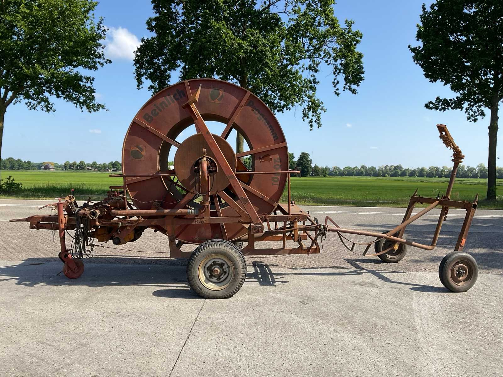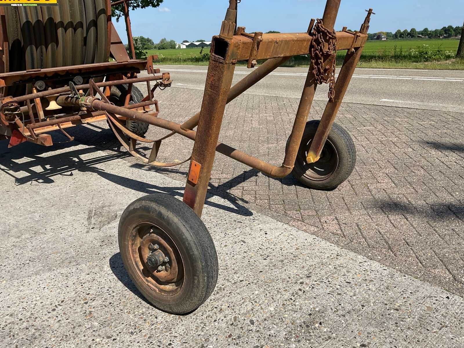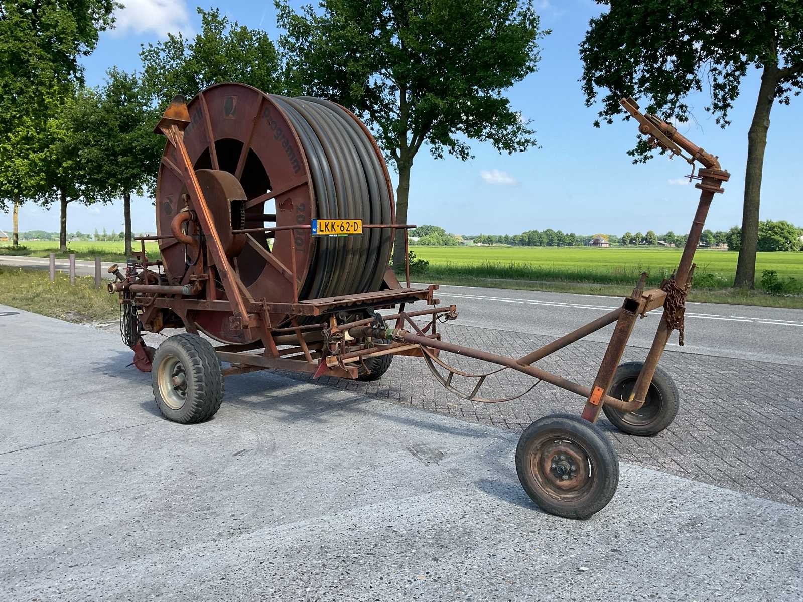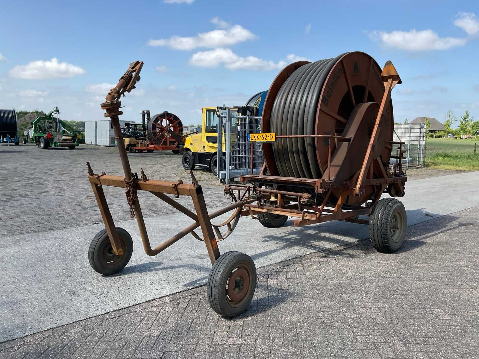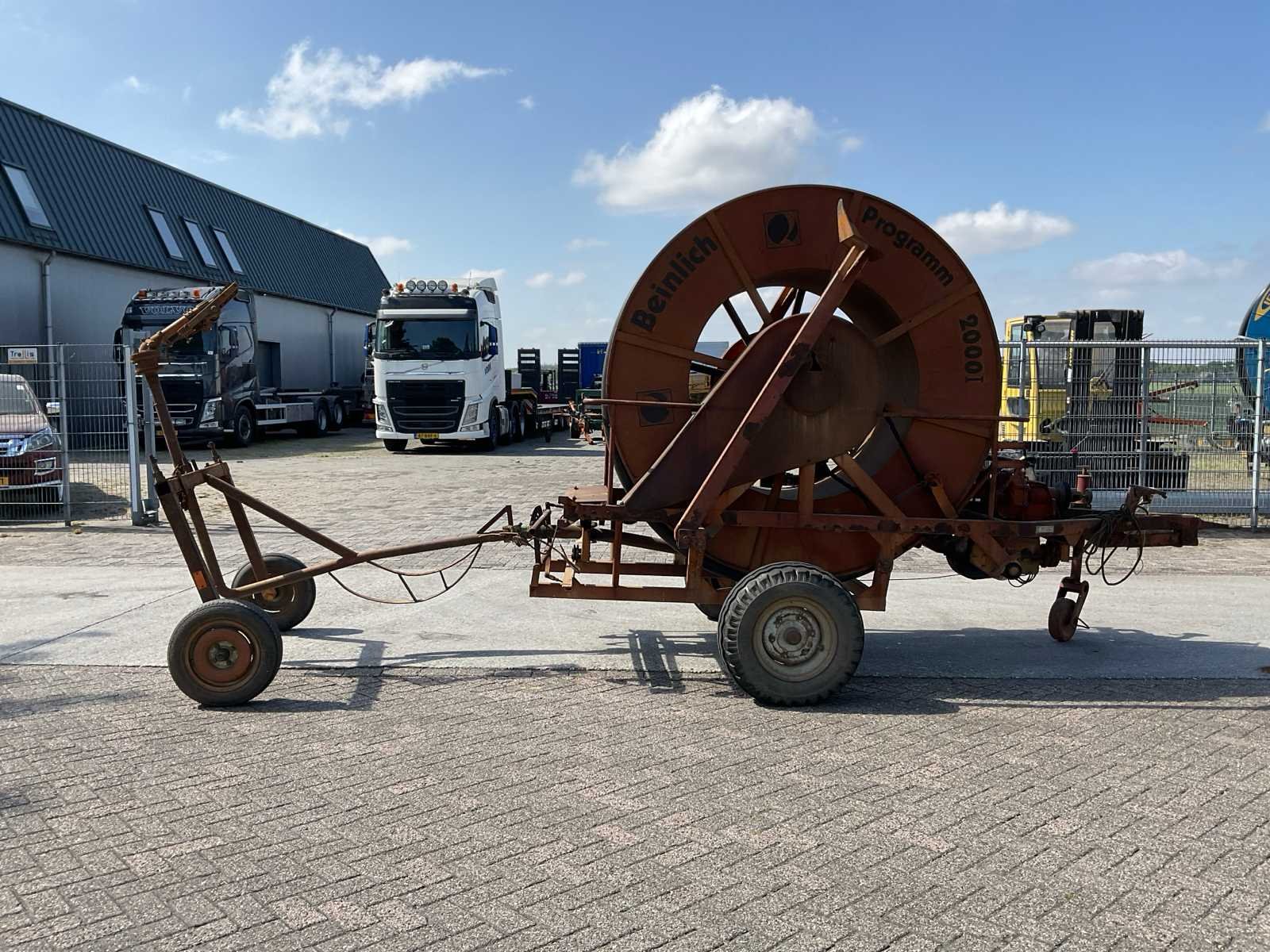 Lengte slang: 260 meter, diameter slang: 82mm, voorzien van: 10.0/75-15 banden, trekoog aanspan, steunwiel, 2x handmatige steunpoot achter, Nederlandse kentekenregistratie, sproeiwagen, Komet Twin 101 Plus sproeikanon, No Merk: Beinlich Type: Programm 200I Bouwjaar: 1977 Kenteken: LKK-62-D Totale afmeting L: 4400mm Totale afmeting Breedte: 2240mm Totale afmeting Hoogte: 2780mm