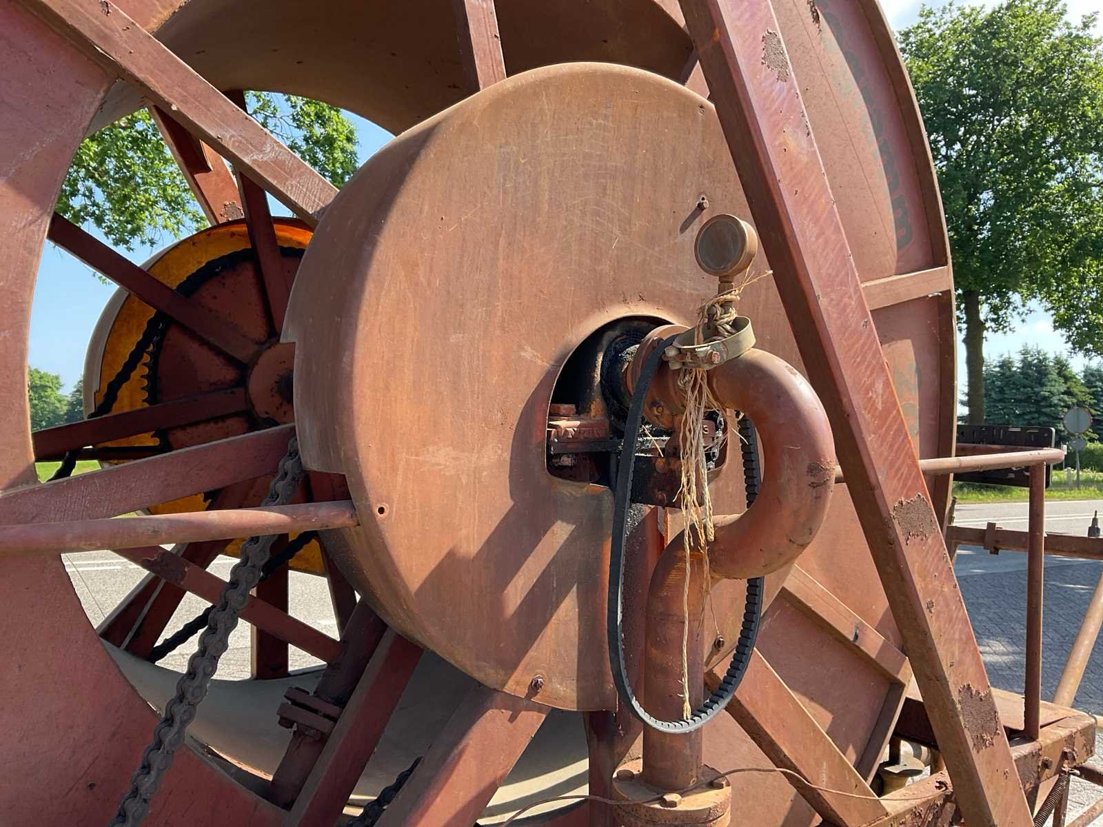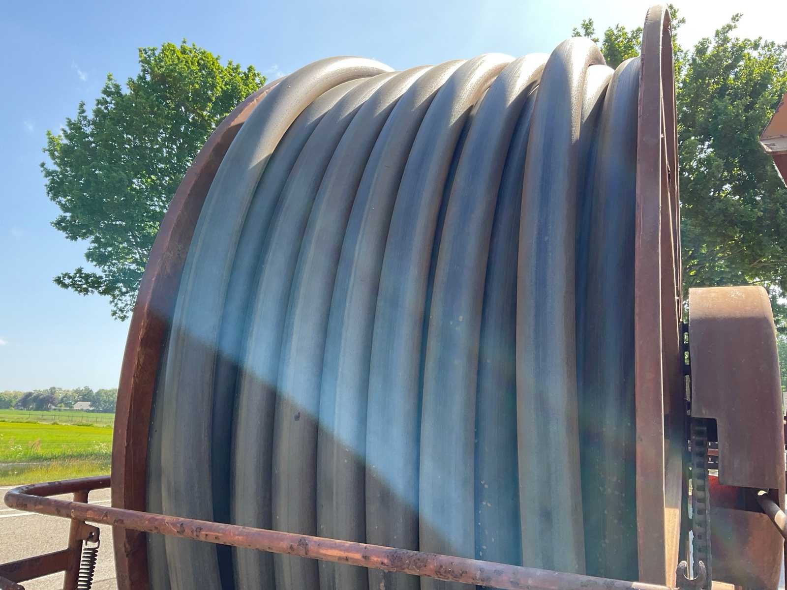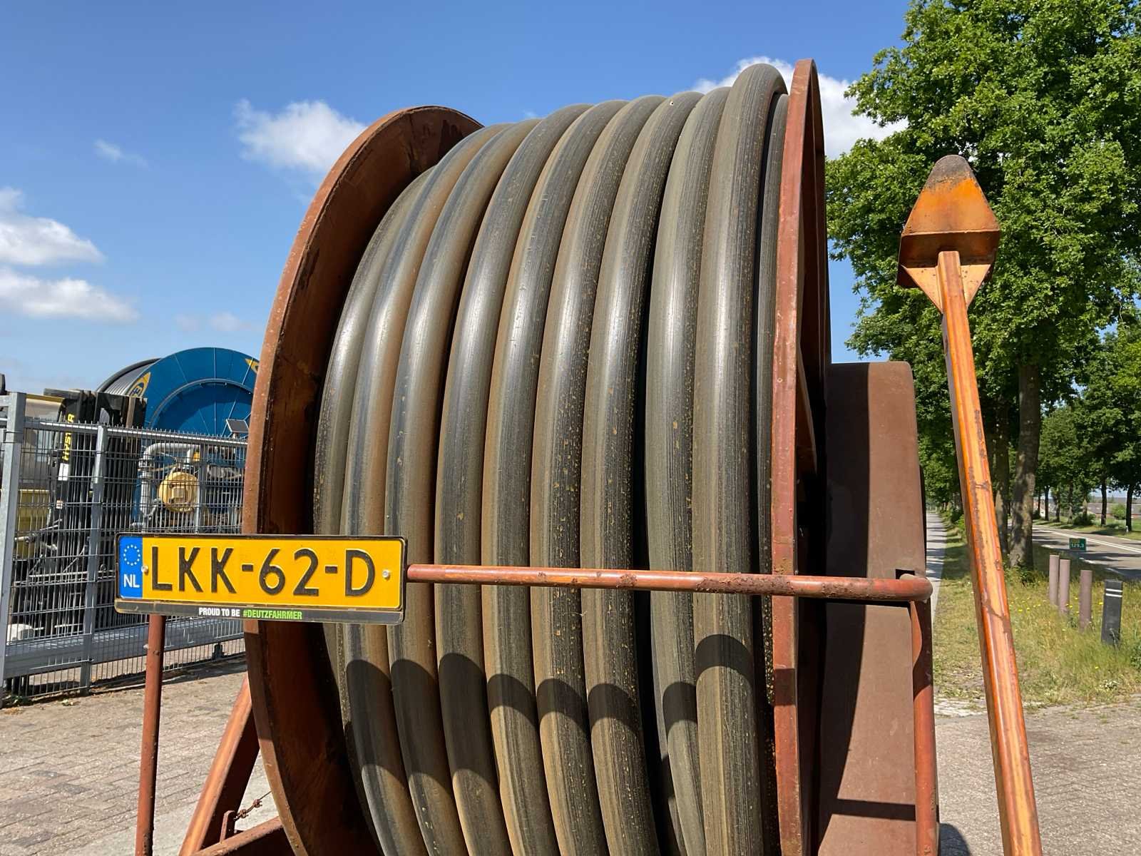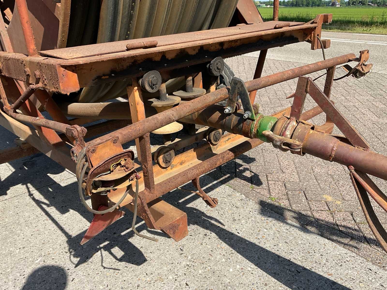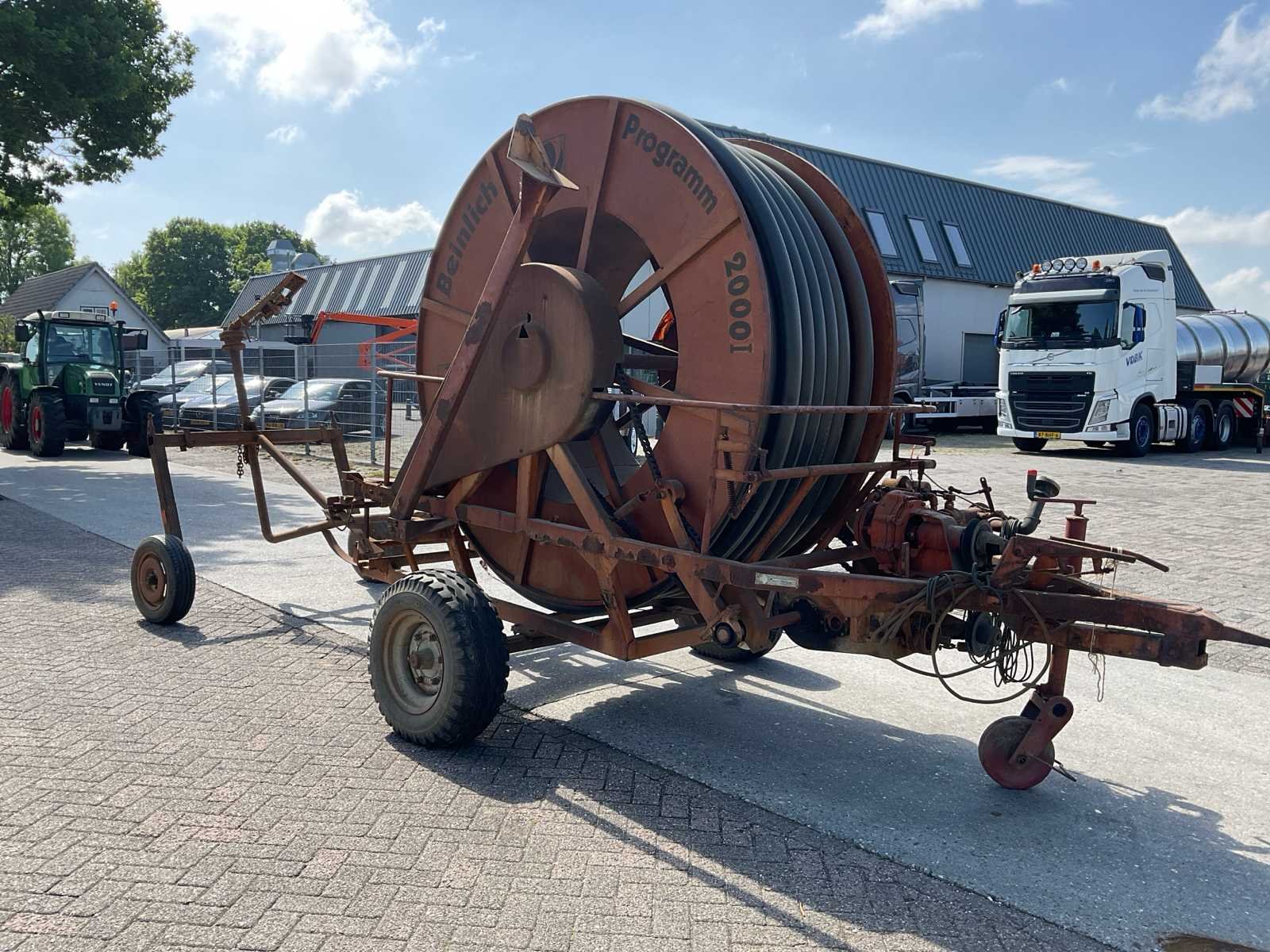 Lengte slang: 260 meter, diameter slang: 82mm, voorzien van: 10.0/75-15 banden, trekoog aanspan, steunwiel, 2x handmatige steunpoot achter, Nederlandse kentekenregistratie, sproeiwagen, Komet Twin 101 Plus sproeikanon, No Merk: Beinlich Type: Programm 200I Bouwjaar: 1977 Kenteken: LKK-62-D Totale afmeting L: 4400mm Totale afmeting Breedte: 2240mm Totale afmeting Hoogte: 2780mm