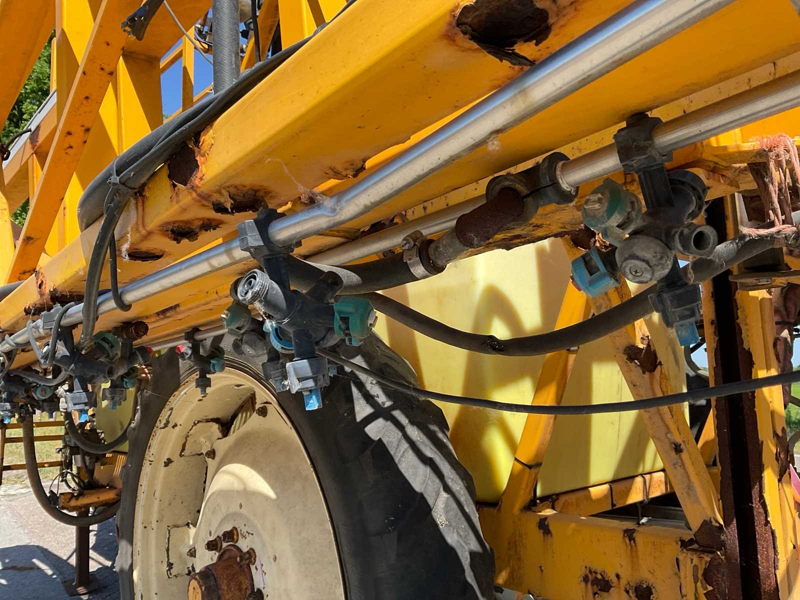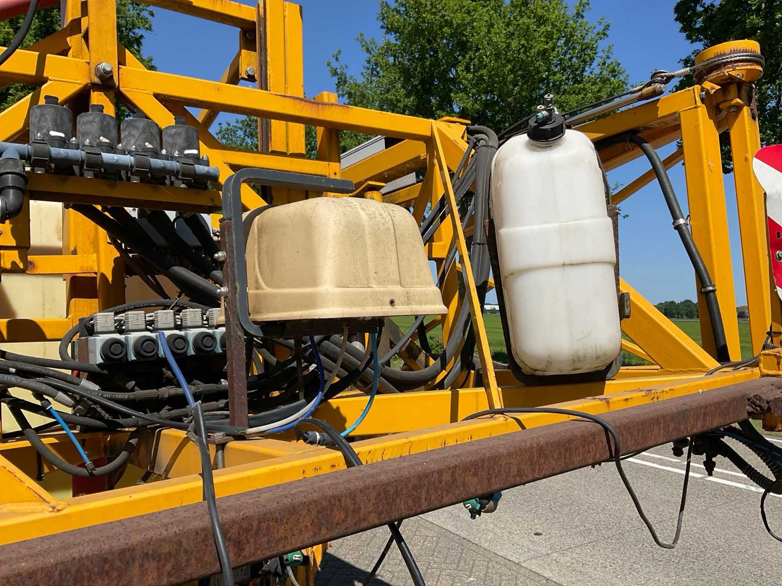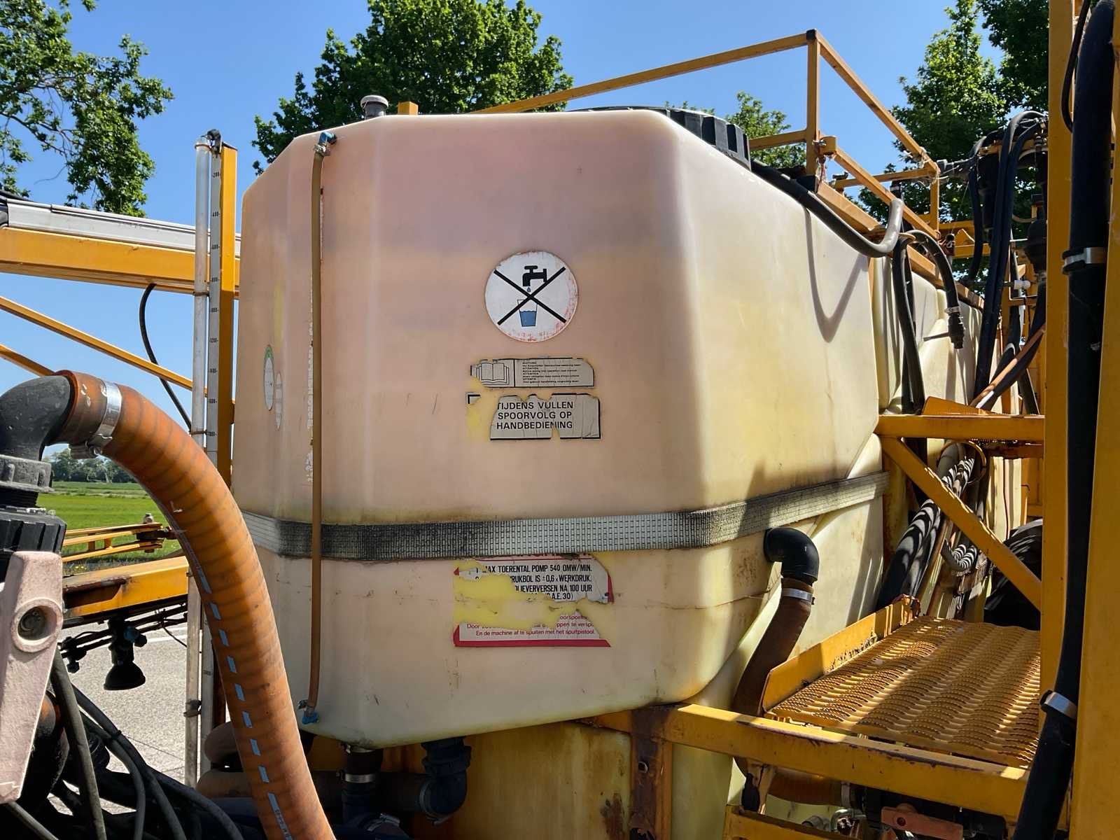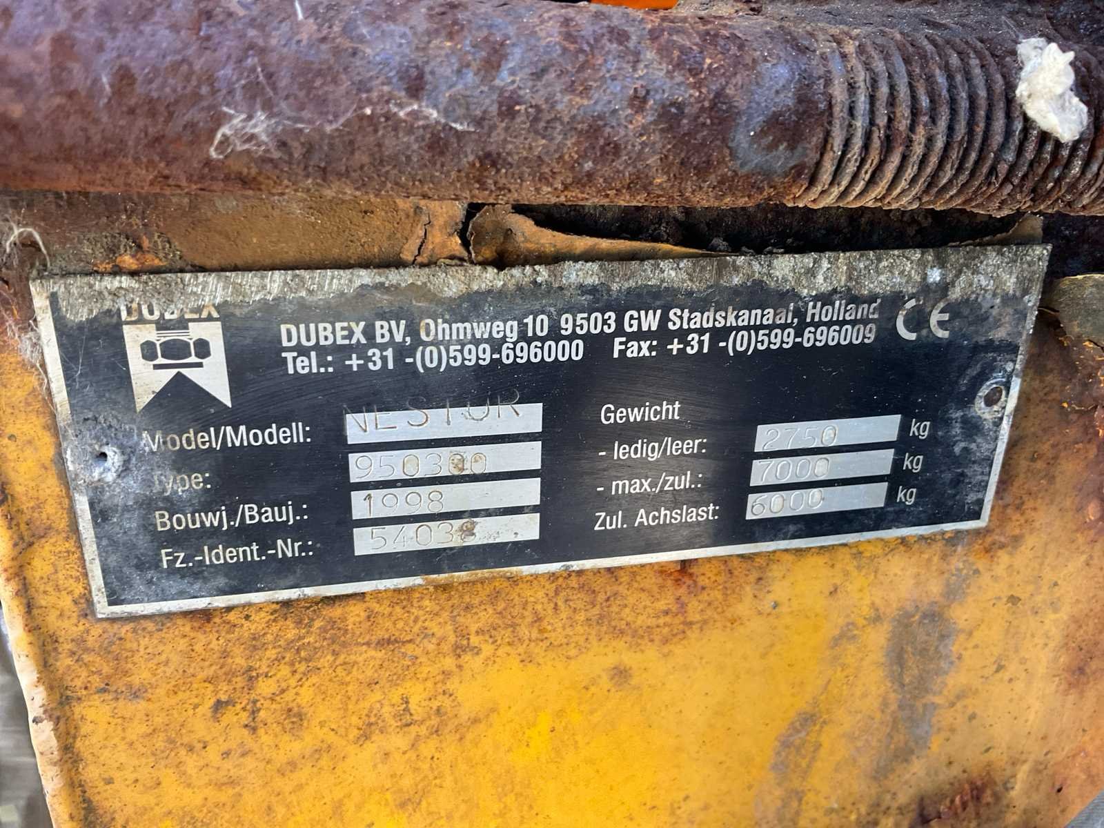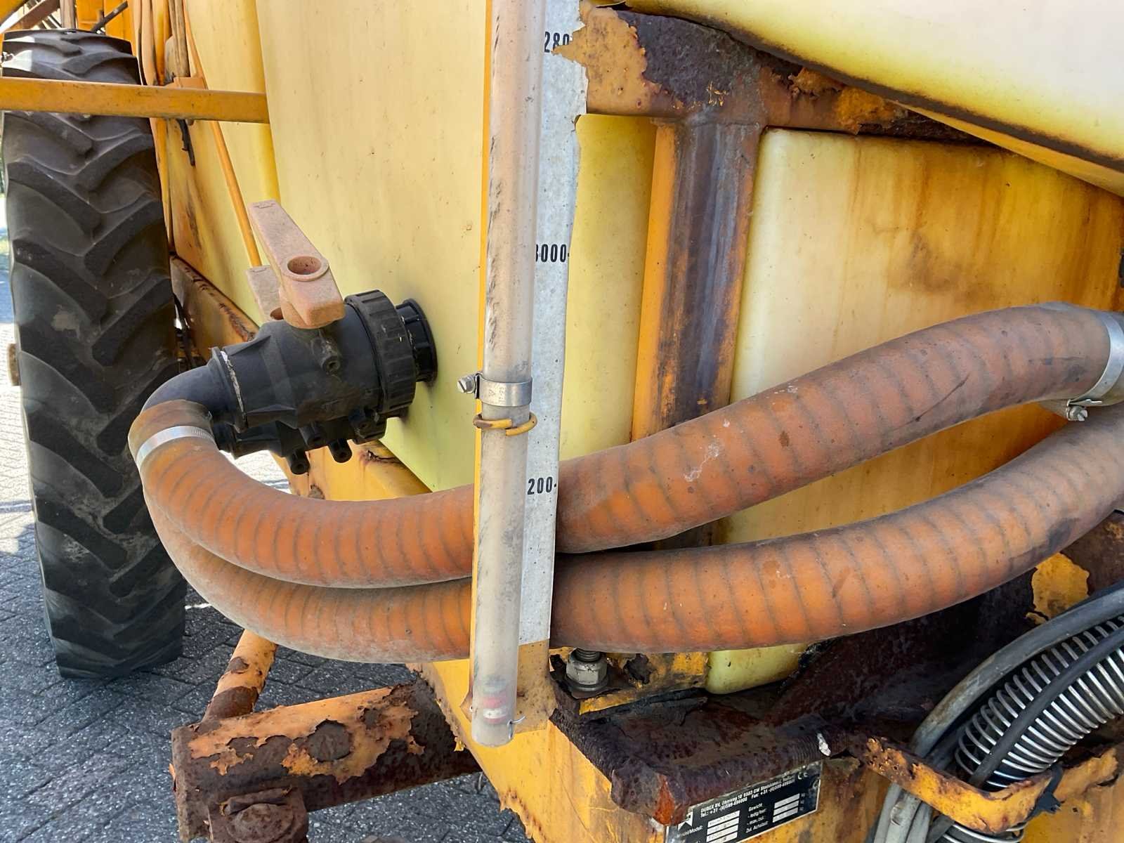 Voorzien van: knikdissel, trekoog aanspan, aftakas aangedreven pomp, steunpoot, 800 liter watertank, 3200 liter tank, Nee Merk: Dubex Type: Nestor 950300 Bouwjaar: 1998 Serienummer: 54038 Spuitboombreedte: 32m Tankinhoud: 3200l Bandenmaat: Alliance 12.4R46 Eigen gewicht: 2750kg Totale afmeting L: 6700mm Totale afmeting Breedte: 3200mm Totale afmeting Hoogte: 3100mm
