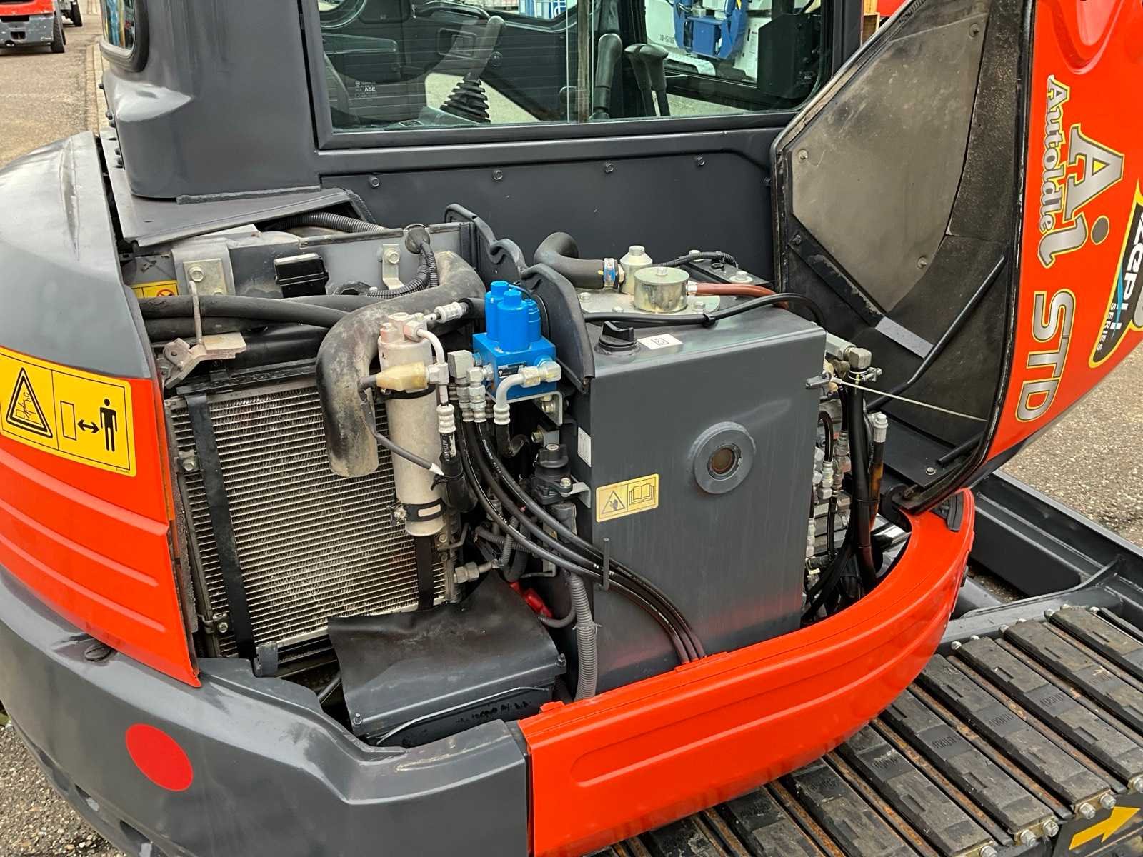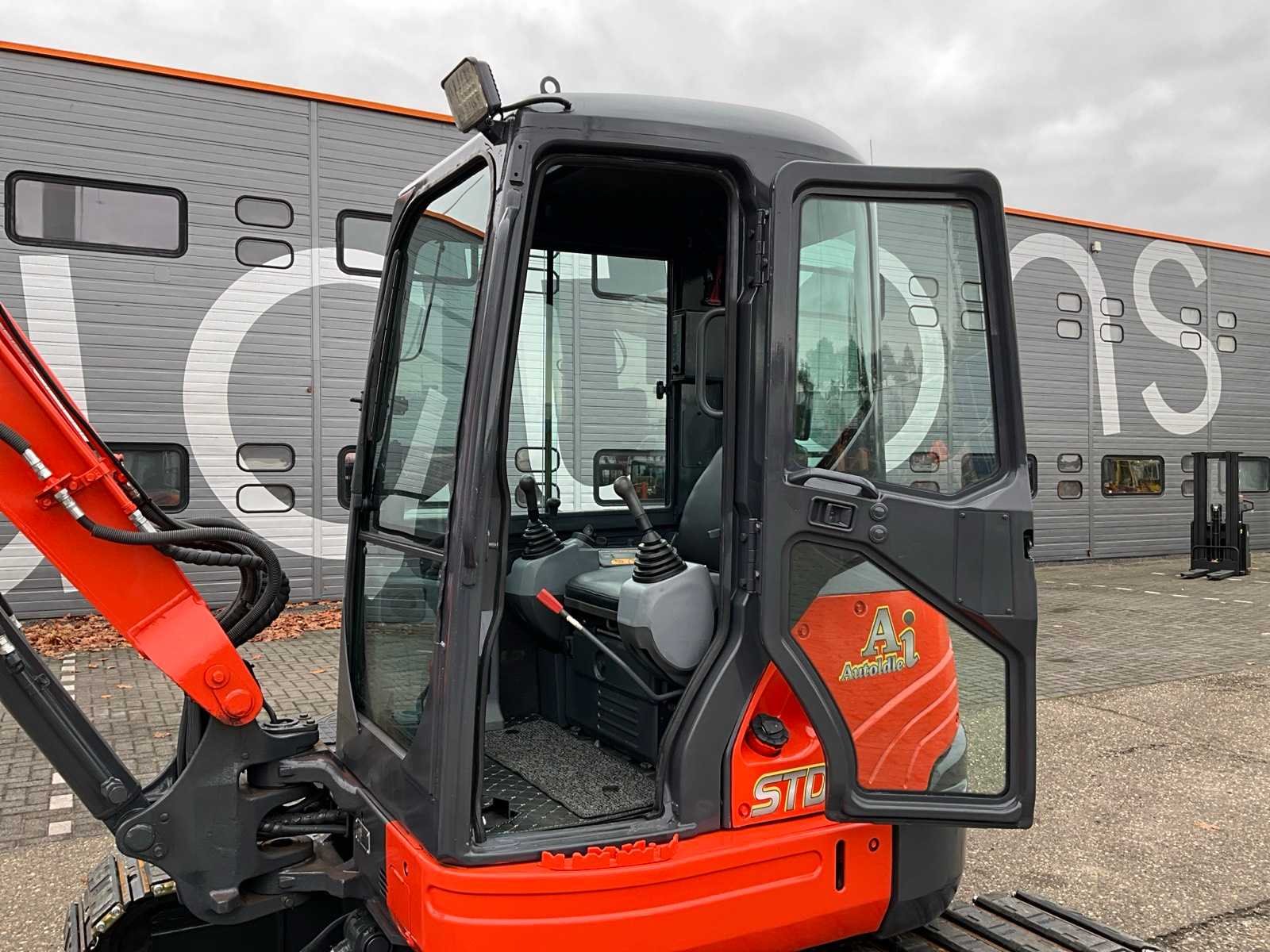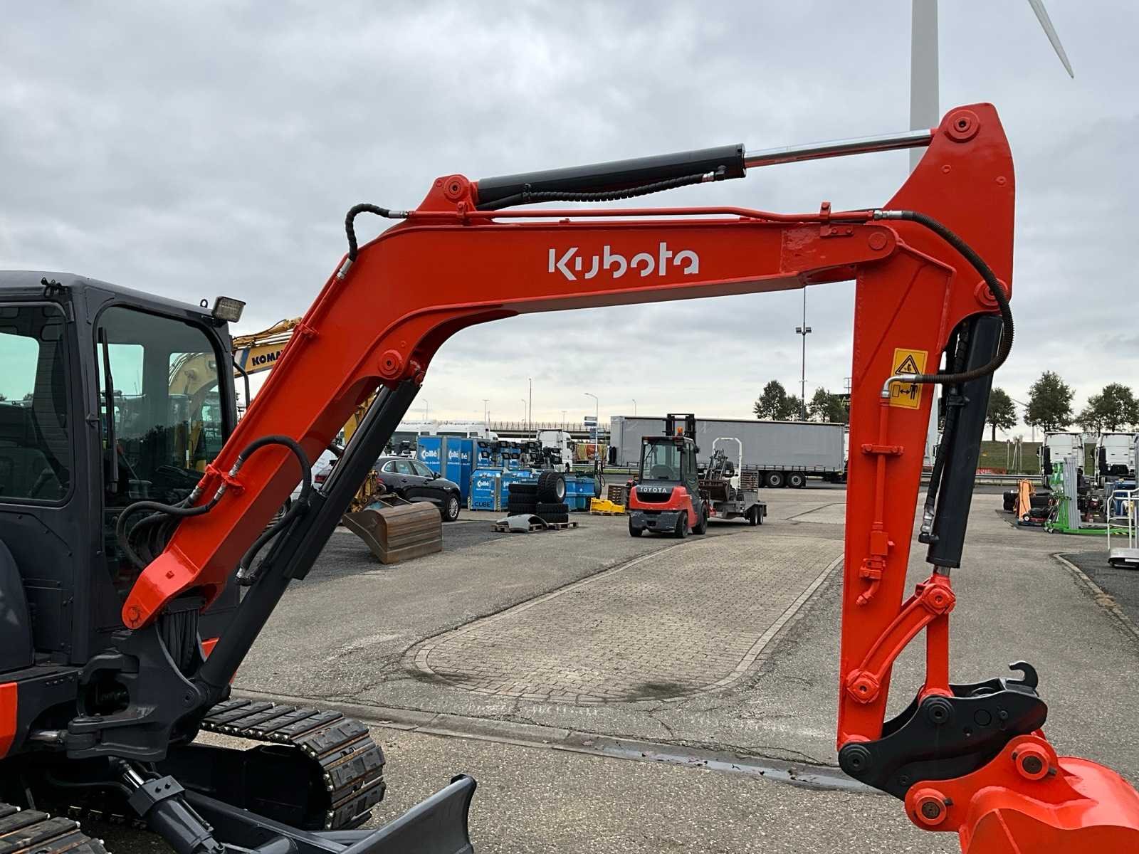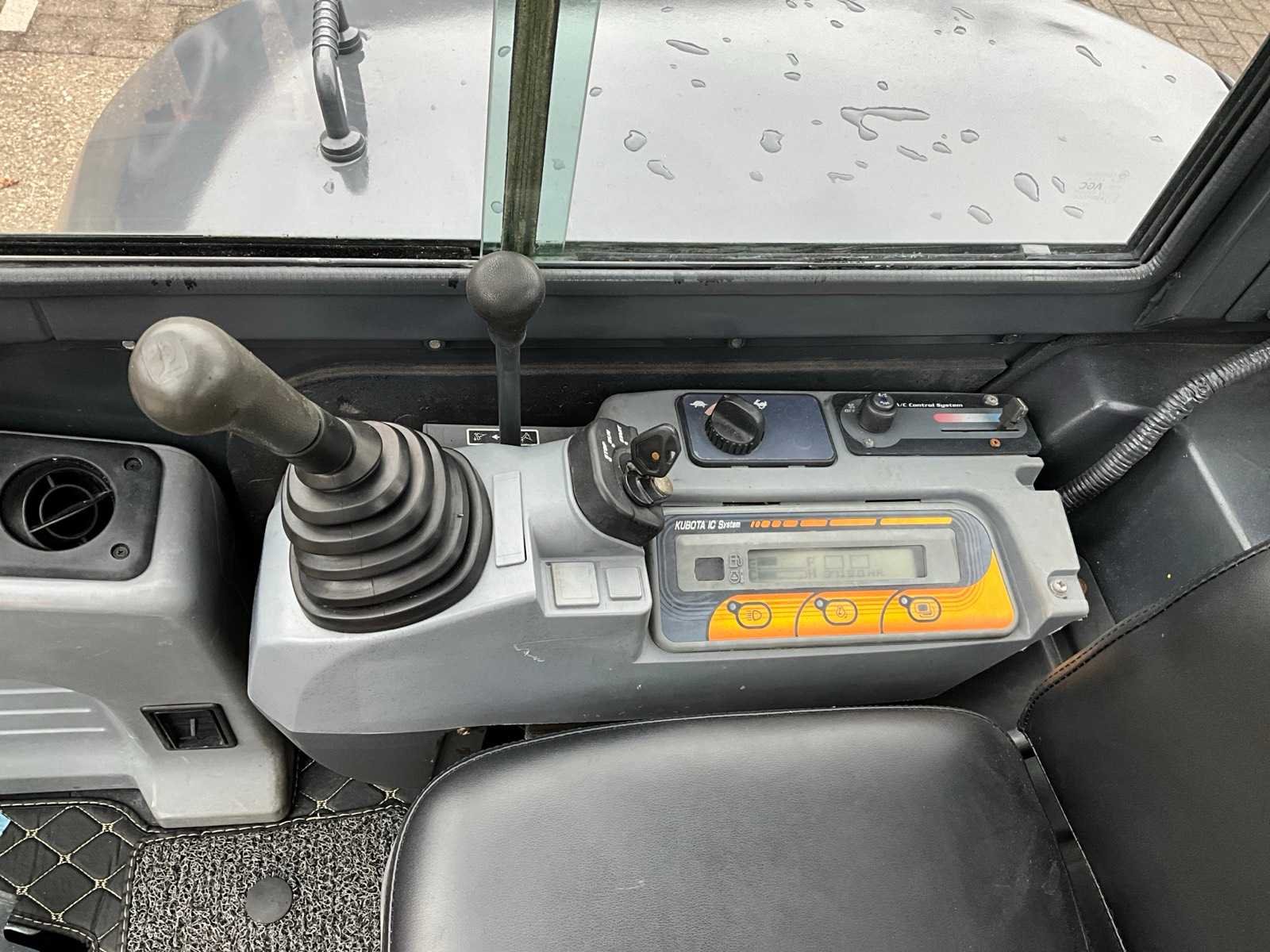 Mechanische snelwissel, dieplepel met tanden 700mm, extra hydraulische functie, zwenkgiek, schuifblad, stalen rupsen met rubber pads, Nee Merk: Kubota Type: KX155-3SZ Bouwjaar: 2012 Serienummer: 87370 Merk motor: Kubota Motorvermogen (kW): 30kW Aantal cilinders: 4 Brandstof: Diesel Bedrijfsgewicht: 5115kg Met graafbak: true Graafbak afm. b: 700mm Rups breedte: 400mm Cabine: true Afgelezen urenstand: 3720 Totale afmeting L: 5800mm Totale afmeting Breedte: 2000mm Totale afmeting Hoogte: 2600mm