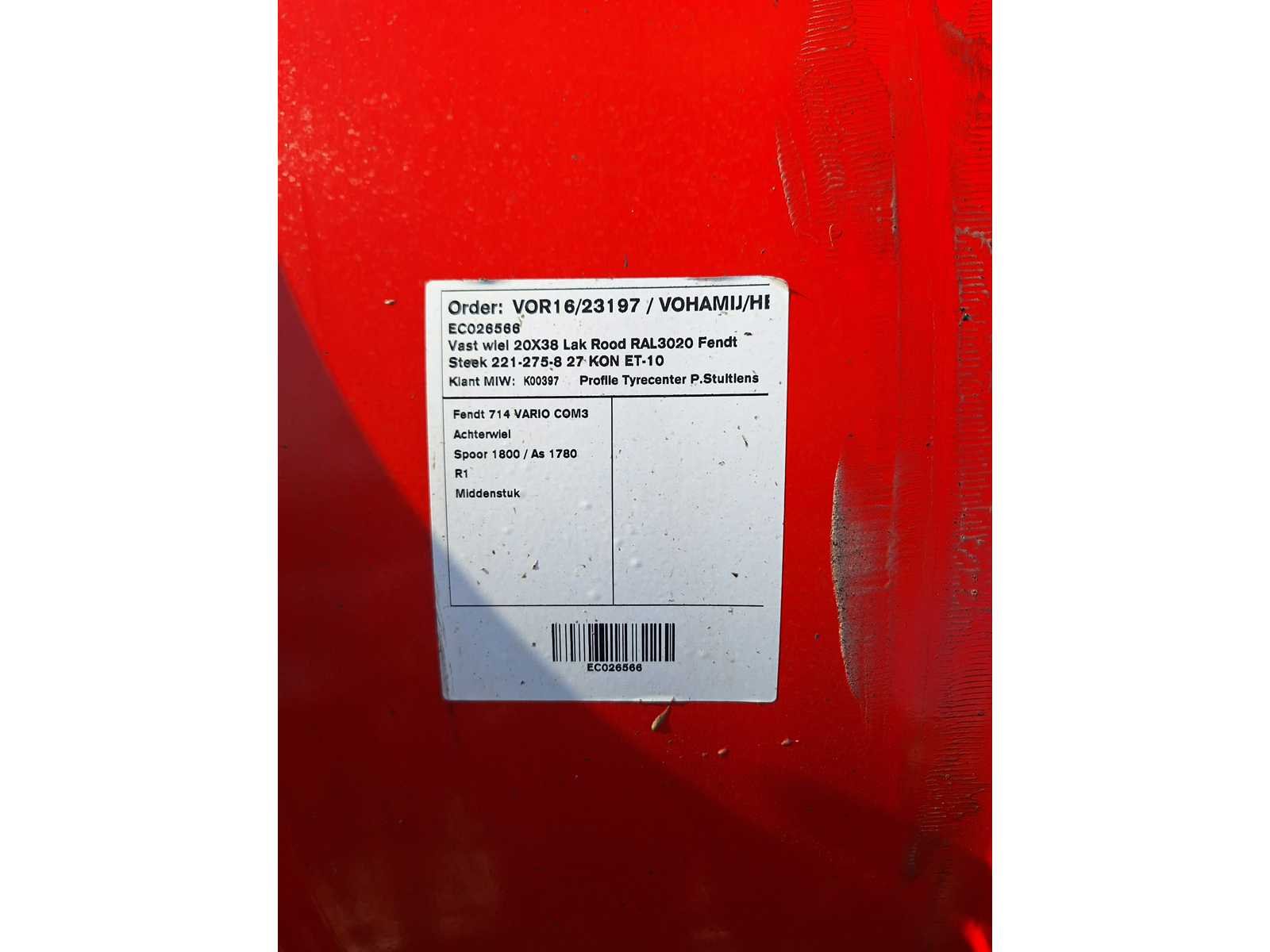 Bestaat uit: velg Ral 3020 Fendt, 20x38, steek 221-275-8, KON ET-10. Nee Type: 20x38