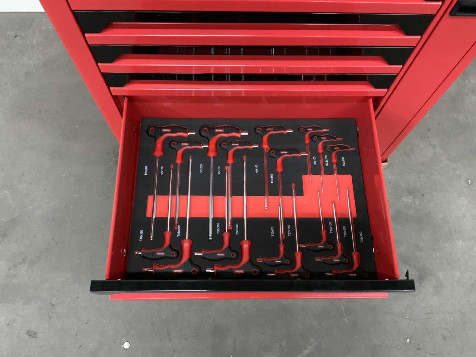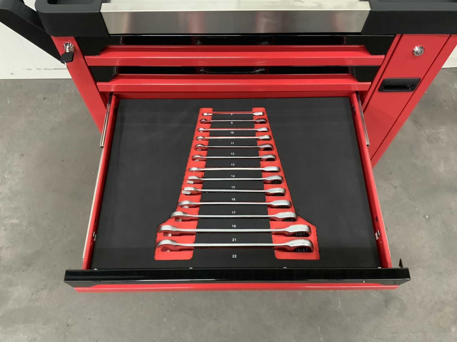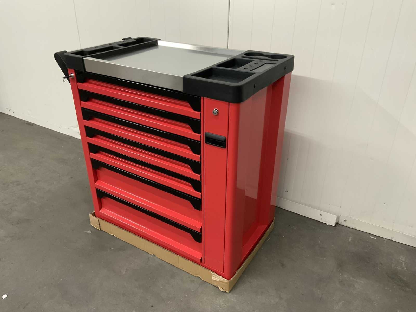 Aantal laden: 7; met inhoud: ja; totale afmeting L: 845 mm; totale afmeting B: 460 mm; totale afmeting H: 975 mm; omschrijving: v.v. 2 zwenkwielen; ongebruikt in doos; 2371 Nee Merk: Sg Tools Type: Uitschuifrek Bouwjaar: 2025