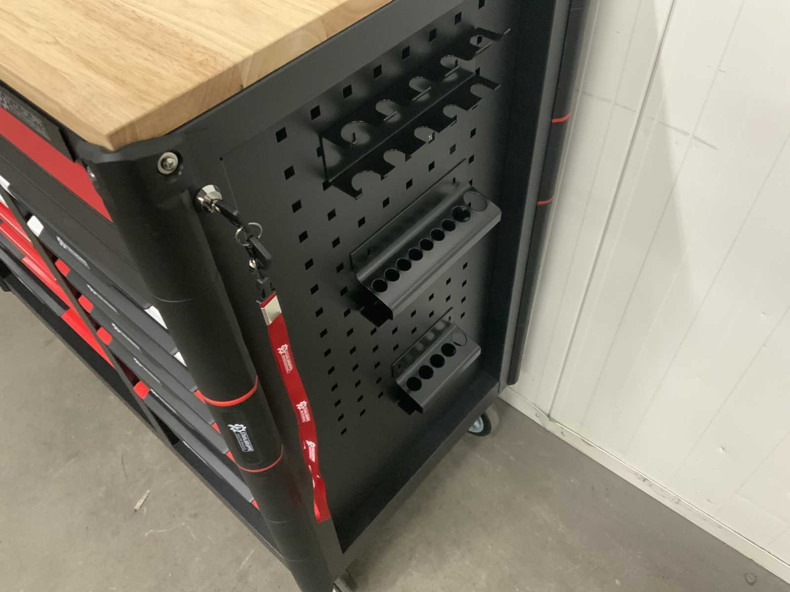 Aantal laden: 13; met inhoud: ja; eigen gewicht: 153 kg; totale afmeting L: 1060 mm; totale afmeting B: 550 mm; totale afmeting H: 1100 mm; omschrijving: ongebruikt, op wielen, houten werkblad bovenop 20mm dik Word uitgeleverd in het Zwart / Rood - Zwart/Blauw - Zwart/Groen of Zwart/Grijs Nee Merk: Stahlgruppe Type: Jumbo Bouwjaar: 2025