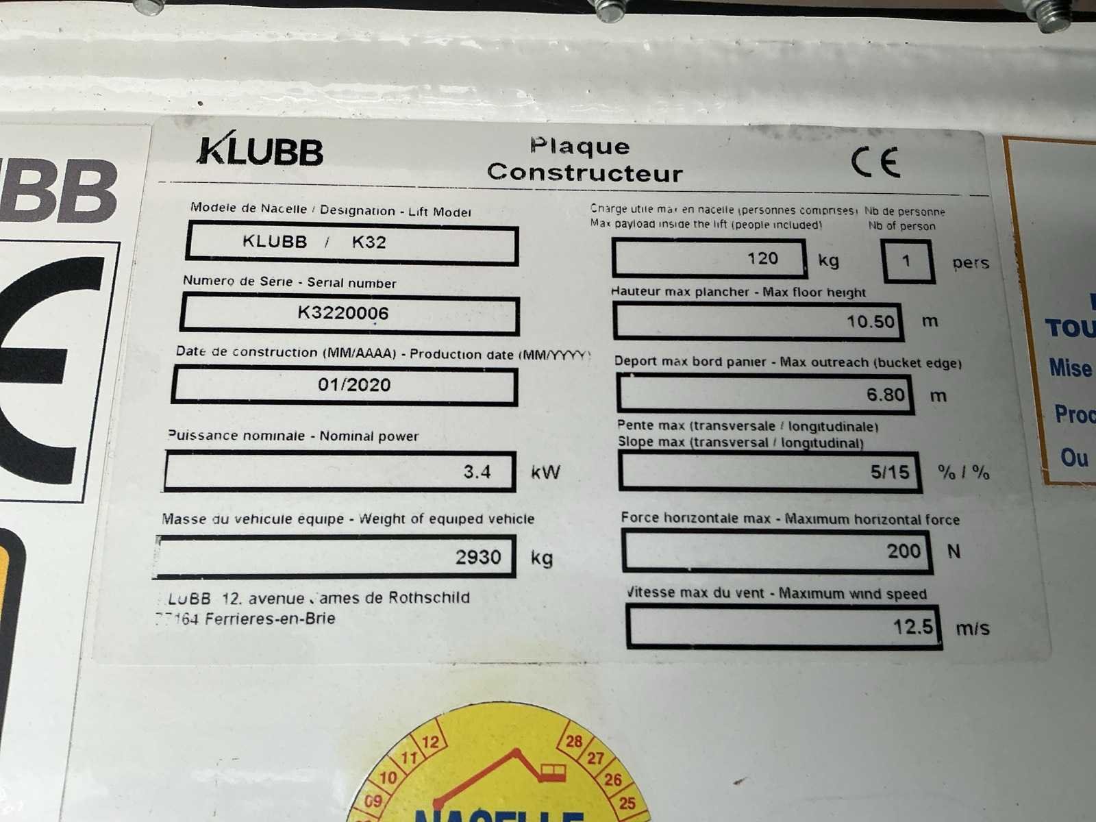 Voertuig: RED Edition uitvoering; Elektrische ramen; Elektrisch verstelbare spiegels; Cruise control; Airco; Radio; 6-Versnellingen; Armsteun; Ladder houder; 2x kast inrichting; Oplaadpunt telefoon Hoogwerker: KLubb K32; Autohoogwerker opbouw; 12.5M Werkhoogte; zijdelinks bereik: 7.3 Meter; Maximale manbak belasting: 120KG; Draaibereik: 360° Graden; 230-volt aansluiting Nee Kenteken: V-63-LVF Merk: Renault Type: T35 2.3 dCi L2 EL Model: Master Bouwjaar: 2020 Afgelezen kilometerstand: 141856km Cilinderinhoud: 2299cc Vermogen (kW): 107kW Brandstof: Diesel Datum eerste toelating: 2020-02-28 APK vervaldatum: 2026-02-18 Transmissie: Handgeschakeld Aantal zitplaatsen: 2 Kleur: wit Bruto BPM (NL): 11937 Rest BPM: 0 Aantal deuren: 5 Ledig gewicht: 2905kg Laadvermogen: 595kg Vermogen (pk): 145 Aantal cilinders: 4 Velgmaat: 16 inch Carrosserie: hoogwerker Emissieklasse: 6