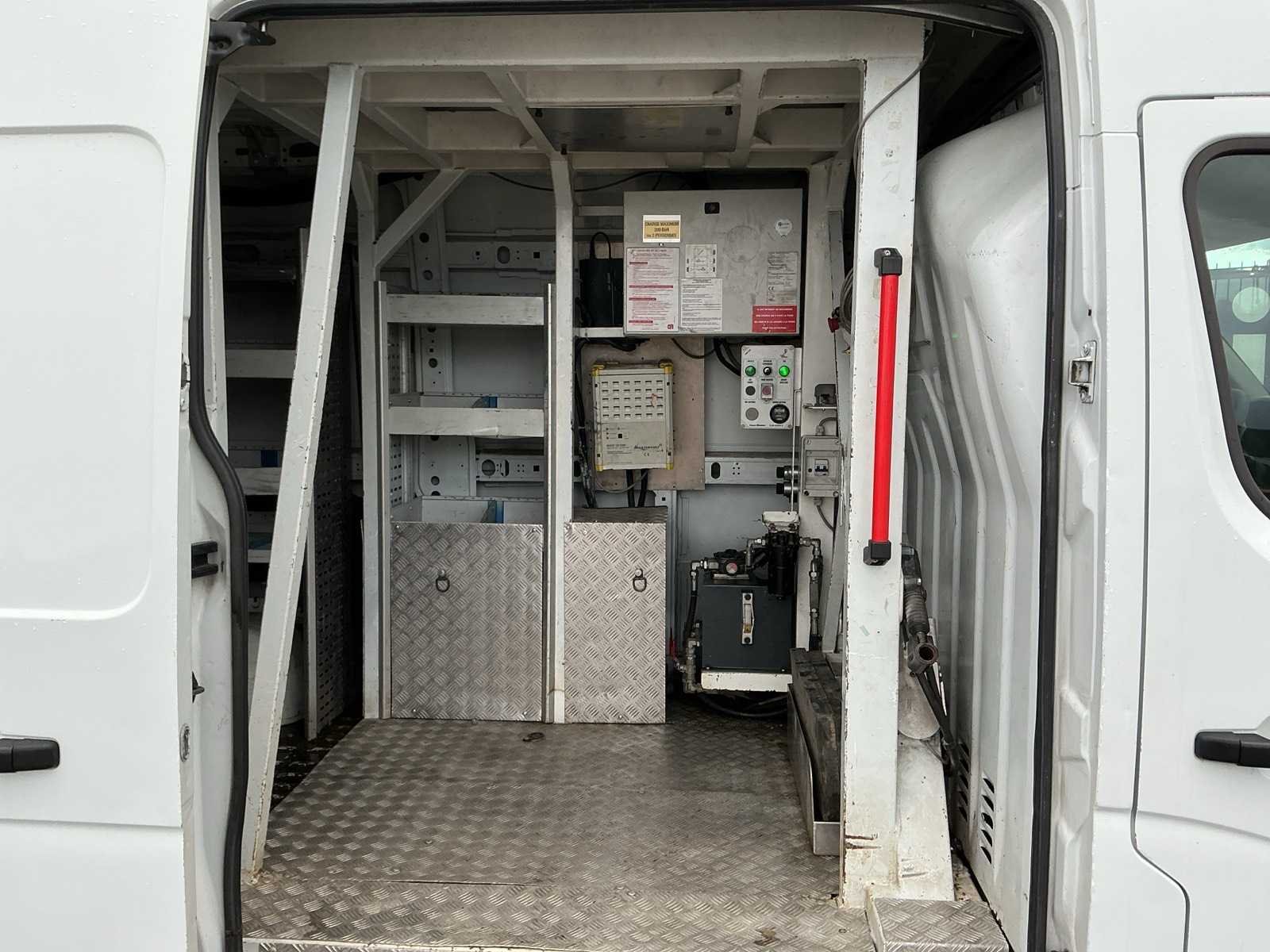 Voertuig: Elektrische ramen; Elektrisch verstelbare spiegels; Radio; 6-Versnellingen; Armsteun; Ladder houder; 2x kast inrichting; Dubbele Montering; Tachograaf; Achteruitrij camera Hoogwerker: France Elevateur 172 TPF; Autohoogwerker opbouw; 17M Werkhoogte; zijdelinks bereik: 9 Meter; Maximale manbak belasting: 265KG; Draaibereik: 400° Graden; 230-volt aansluiting; 2-persoons manbak; trekhaak; PDC Nee Kenteken: Geen Registratie Documenten Merk: Renault Type: T45 2.3 dCI L3H2 Model: Master Bouwjaar: 2012 Chassisnummer: VF6MHF8FG46928356 Afgelezen kilometerstand: 87304km Cilinderinhoud: 2299cc Vermogen (kW): 107kW Brandstof: Diesel Aandrijving: RWD Transmissie: Handgeschakeld Aantal zitplaatsen: 2 Kleur: Wit Aantal deuren: 5 Aantal cilinders: 4 Velgmaat: 16 inch Emissieklasse: 5