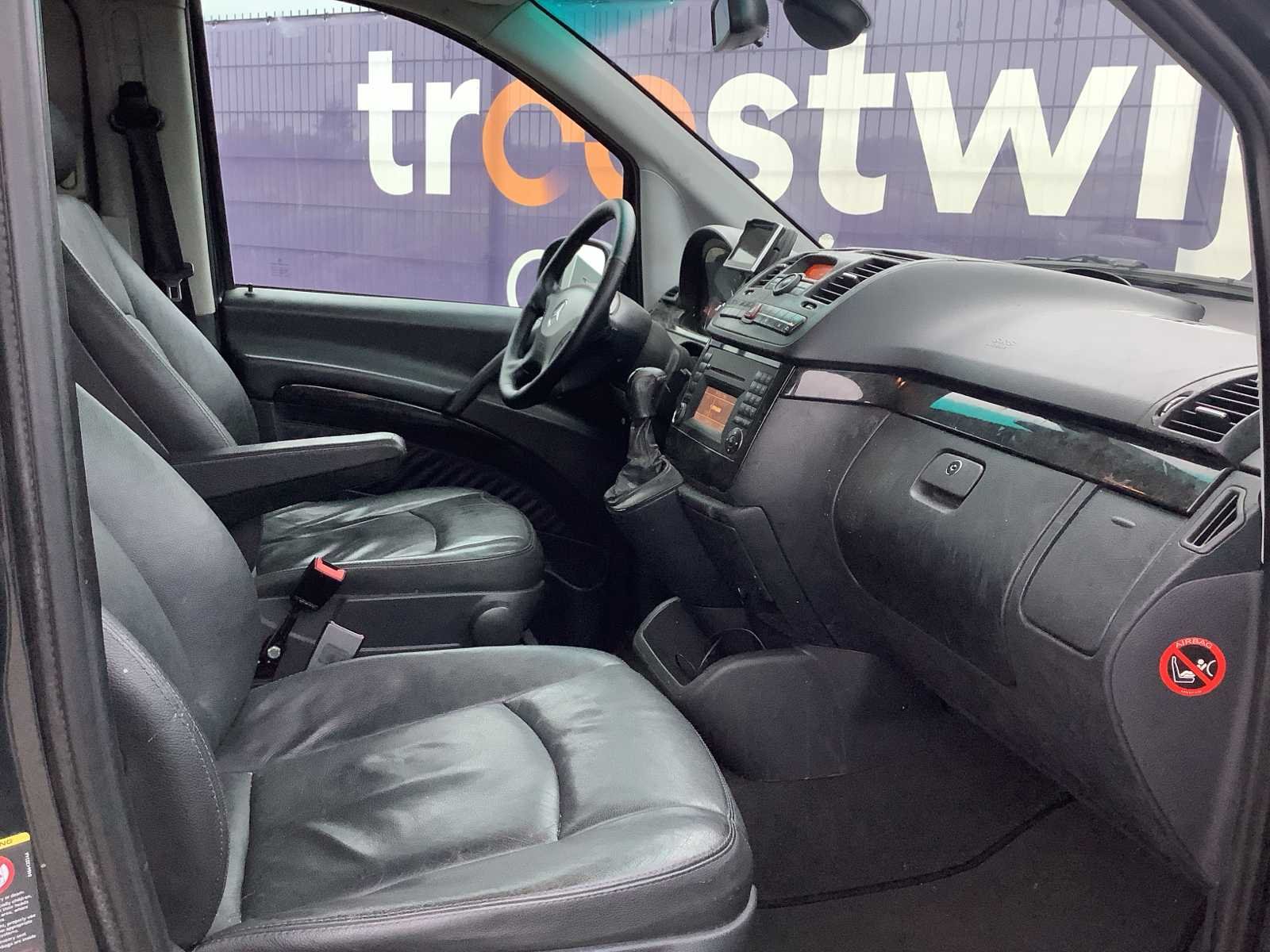 Elektrische ramen; Cruise control; Stoelverwarming; radio/CD; 2x Elektrische schuifdeur; Elektrische Spiegel; Climate control; Airco; Stuurwiel bediening; 2x elektrische dakraam; Achteruitrij camara; 2x beeldscherm achterbank; Parrot; PDC Nee Kenteken: 09-VNS-3 Merk: Mercedes-Benz Type: 3.0 CDI DC Amb. Lang Model: Viano Bouwjaar: 2008 Cilinderinhoud: 2987cc Vermogen (kW): 150kW Datum eerste toelating: 2007-07-04 Datum eerste toelating (NL): 2008-02-29 APK vervaldatum: 2026-09-24 Transmissie: Automaat Aantal zitplaatsen: 5 Kleur: niet van toepassing Bruto BPM (NL): 23773 Rest BPM: 0 Ledig gewicht: 2210kg Laadvermogen: 560kg Vermogen (pk): 204 Aantal cilinders: 6 Carrosserie: gesloten opbouw Emissieklasse: 4 Maximaal trekgewicht ongeremd: 750