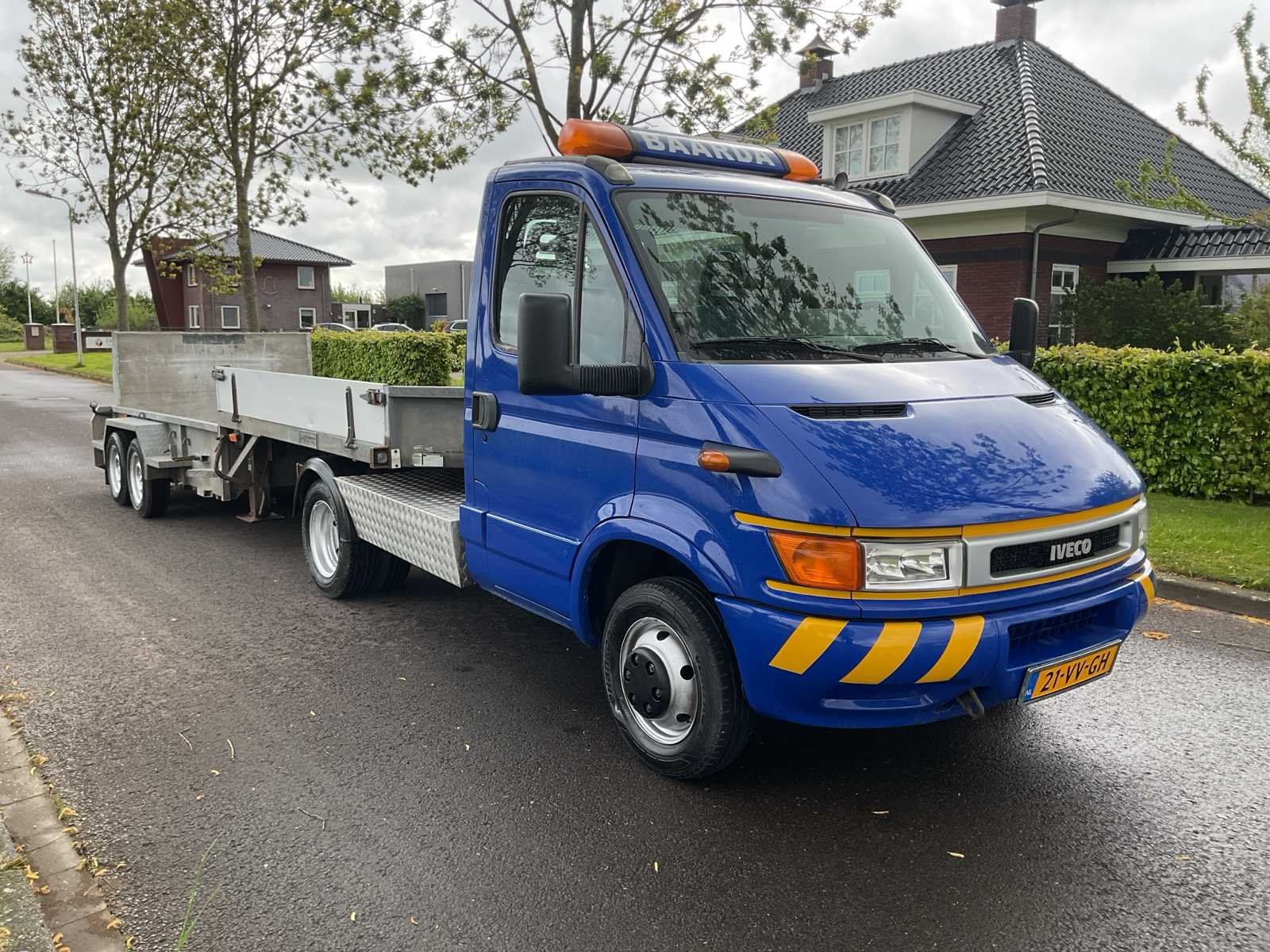 Radio/cd; 6-versnellingen; zwaaibalk; luchthoorn; Veldhuizen trailer; kenteken OG-97-NR; totale trailer lengte 650cm; lier; verzonken zekeringshaken; aluminium laadklep Nee Kenteken: 21-VV-GH Merk: Iveco Type: 40C13 300 Model: Daily Bouwjaar: 2001 Afgelezen kilometerstand: 273968km Cilinderinhoud: 0cc Vermogen (kW): 92kW Brandstof: diesel Datum eerste toelating: 2001-03-15 Datum eerste toelating (NL): 2001-03-15 APK vervaldatum: 2026-02-06 Transmissie: Handgeschakeld Kleur: niet van toepassing Ledig gewicht: 2140kg Laadvermogen: 1360kg Vermogen (pk): 125 Aantal cilinders: 4 Carrosserie: opleggertrekker Emissieklasse: 3