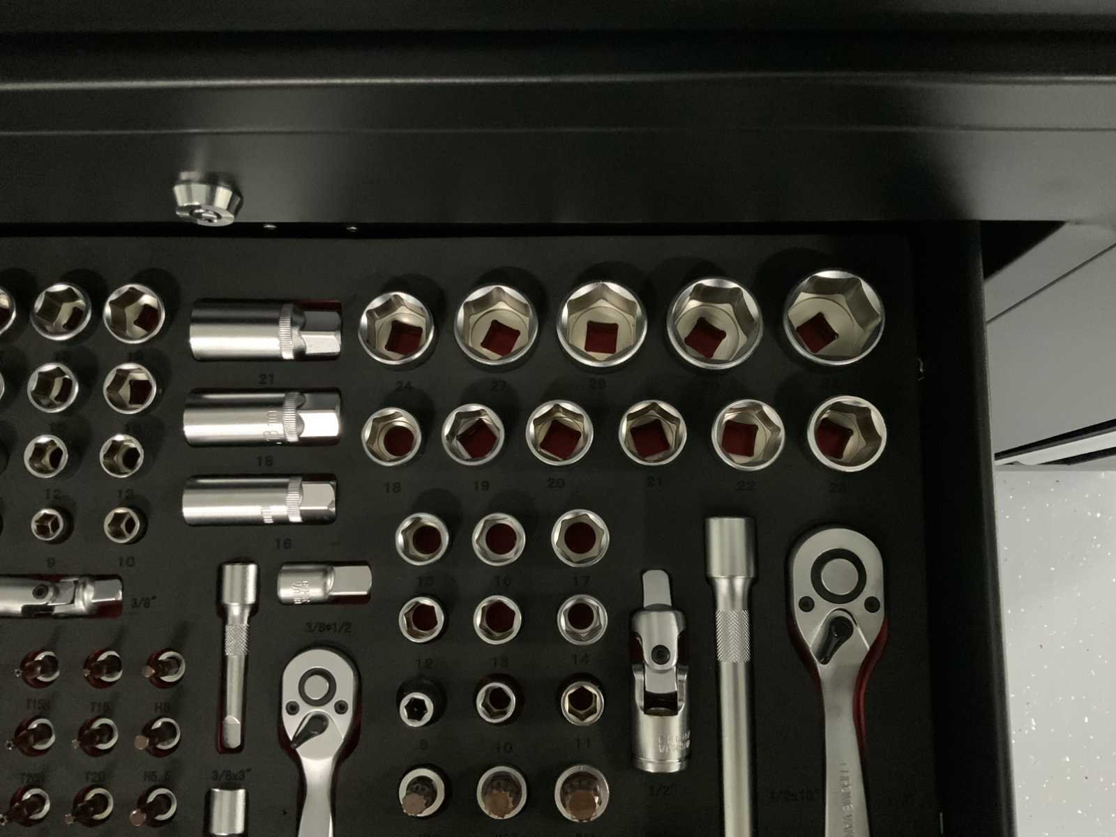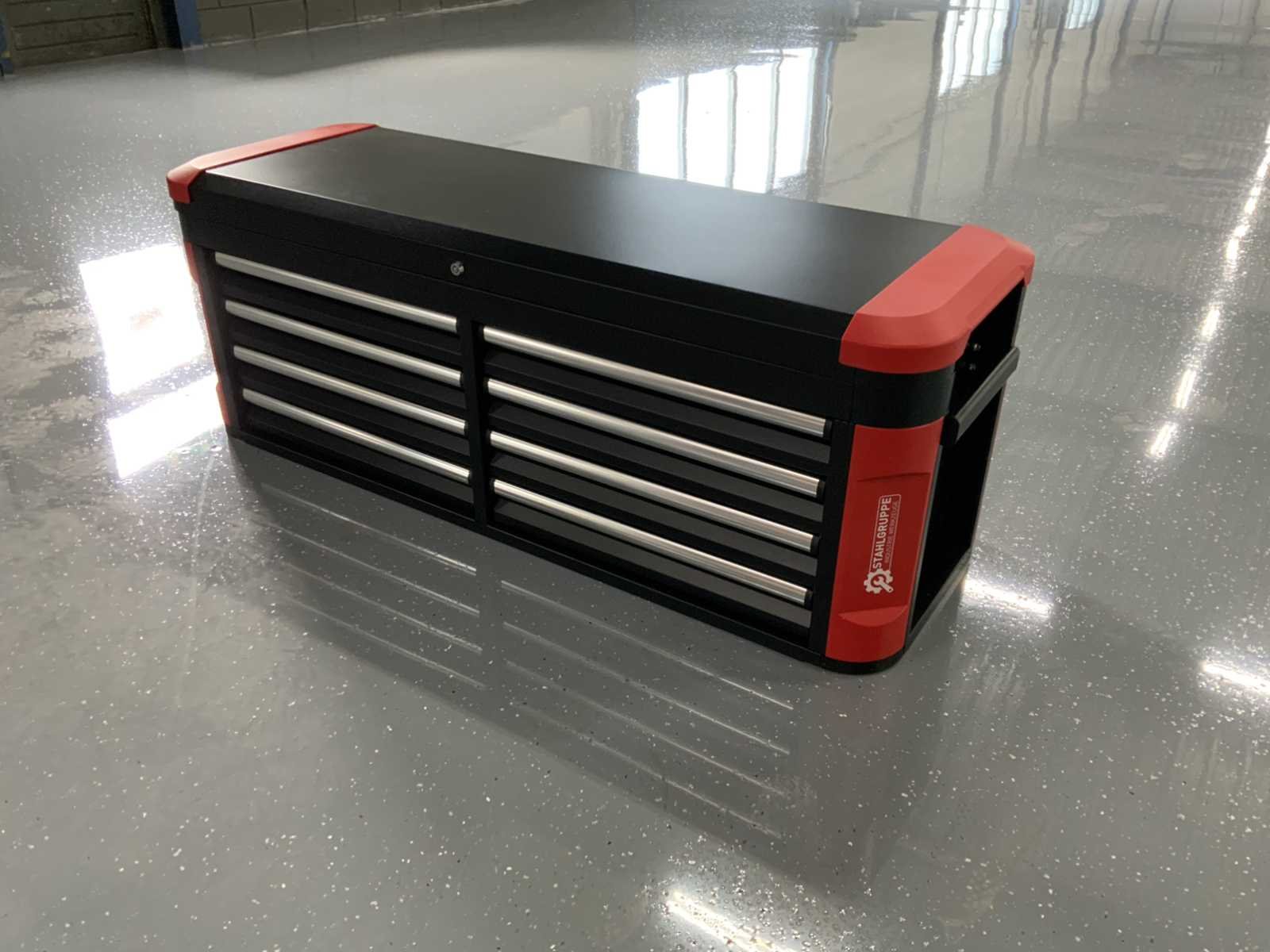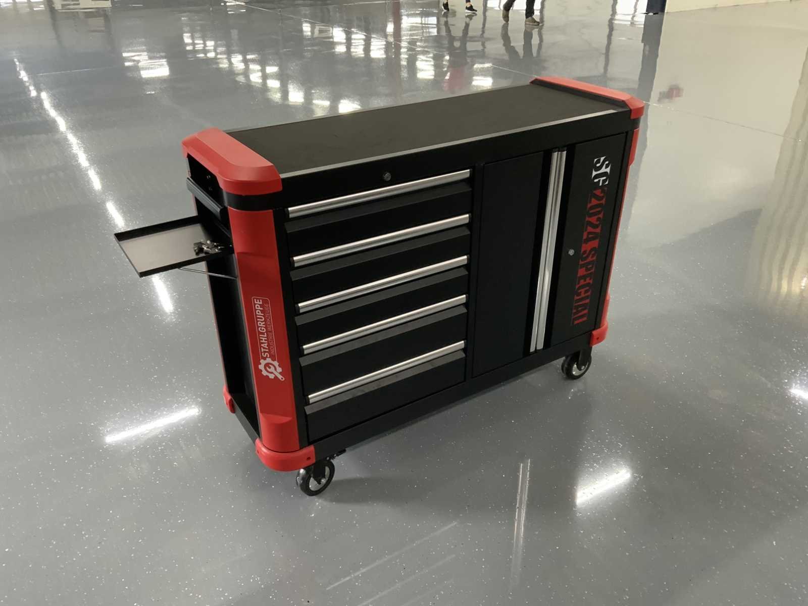 13 Laden, 9 gevuld, 327 pcs gereedschap. Kar met afneembare topbox Top box met 8 laden en boven klep Kar met 5 laden en kast met dubbele openslaande deuren Hoeken schuin afgewerkt met bumpers Stevig kunststof handvaten 2 zwenkwielen waarvan 2 geremd Hoge kwaliteit cilinder sloten Mat zwart afgewerkt met rode accenten Nee Merk: Stahlgruppe Type: XL PRO Deluxe Bouwjaar: 2025 Aantal laden: 13 Met inhoud: true