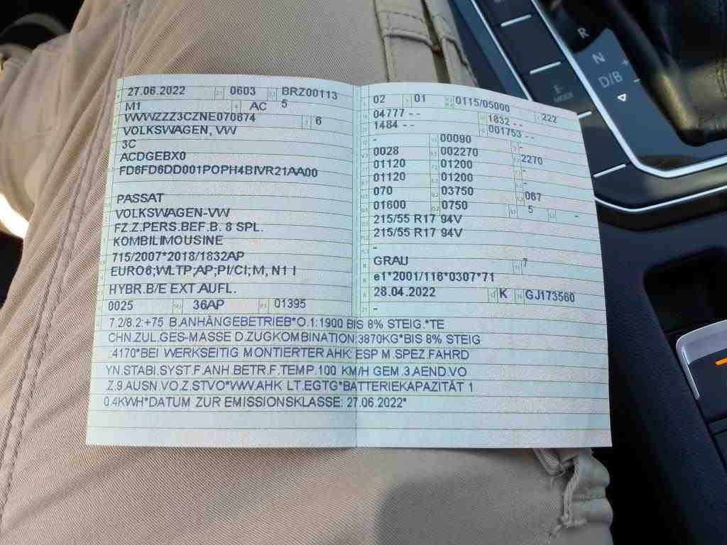 Duitse kenteken papieren. Indien gewenst kunnen wij het gehele import proces voor u verzorgen, RDW invoer, BPM taxatie, Douane afwikkeling, stalling etc. Voor deze auto zijn de totale invoerkosten inclusief de BPM €1.195.- Dus voor €1.195.- boven op uw aankoopprijs verzorgen wij het NL kenteken voor u. (This option is only for Dutch buyers) Voor vragen kunt u mailen naar info@auto-auctions.nl No Kenteken: Duitse kenteken papieren Merk: Volkswagen Model: Passat Type: Variant GTE 1.4 TSI PHEV Afgelezen kilometerstand: 153391km Cilinderinhoud: 1395cc Vermogen (kW): 160kW Brandstof: Hybride Benzine Chassisnummer: WVWZZZ3CZNE070674 Datum eerste toelating: 27-06-2022 Vermogen (pk): 218hp Aantal zitplaatsen: 5 Kleur: Mangang Grey Metallic Transmissie: Automaat Aantal deuren: 5 Aantal sleutels: 2 Velgmaat: 17 Aantal cilinders: 4 Carrosserie: Stationwagen Nationaliteit documenten: Duitse kenteken papieren Onderhoudshistorie: Digitaal volledig aanwezig Start en rijdt: Ja oplaadkabel : Aanwezig