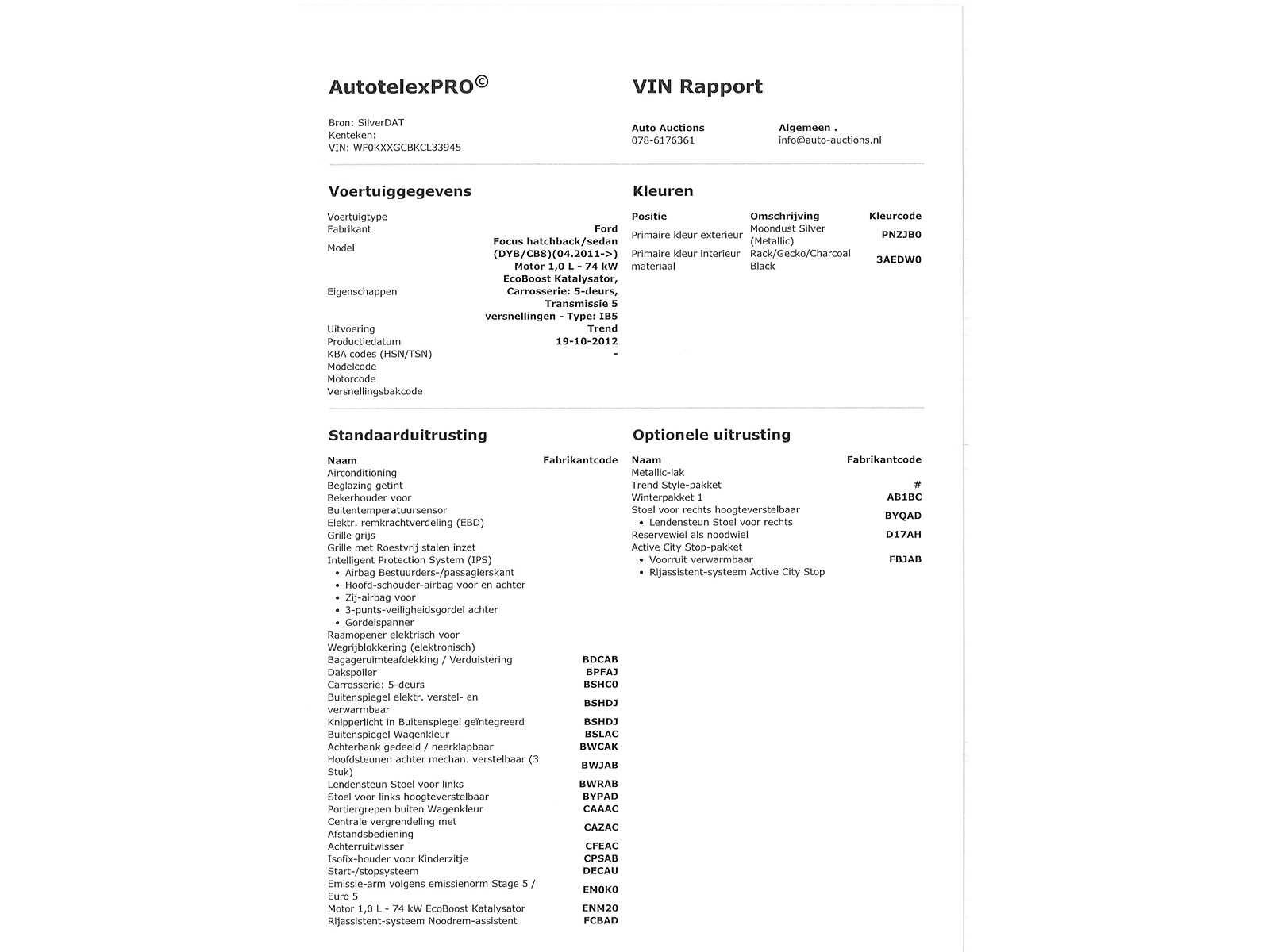 Voor vragen kunt u mailen naar info@auto-auctions.nl Nee Kenteken: JJT-74-D Merk: Ford Model: Focus Type: 1.0 EcoB. Lease Tr. Afgelezen kilometerstand: 180569km Cilinderinhoud: 998cc Vermogen (kW): 74kW Brandstof: Benzine Chassisnummer: WF0KXXGCBKCL33945 Datum eerste toelating: 31-10-2012 APK vervaldatum: 2016-10-31 Vermogen (pk): 99hp Aantal zitplaatsen: 5 Kleur: grijs Transmissie: Handmatig Emissieklasse: 5 Aantal deuren: 4 Aantal sleutels: 1 Ledig gewicht: 1176kg Bruto BPM (NL): 1743€ Aantal cilinders: 3 Carrosserie: hatchback Onderhoudshistorie: Niet Aanwezig Carfax Link: https://was.carfax.eu/v0/api/ccdid/5100016408/svc/201/vinreg/JJT74D/checksum/eyJhbGciOiJIUzI1NiIsInR5cCI6IkpXVCJ9.eyJleHAiOjE3Njc2MjAxMzB9.aIxQQhnAMxRl6XtUfIDCYKWPGKjUxB-7QNLFs63ceS4 Start en rijdt: Ja