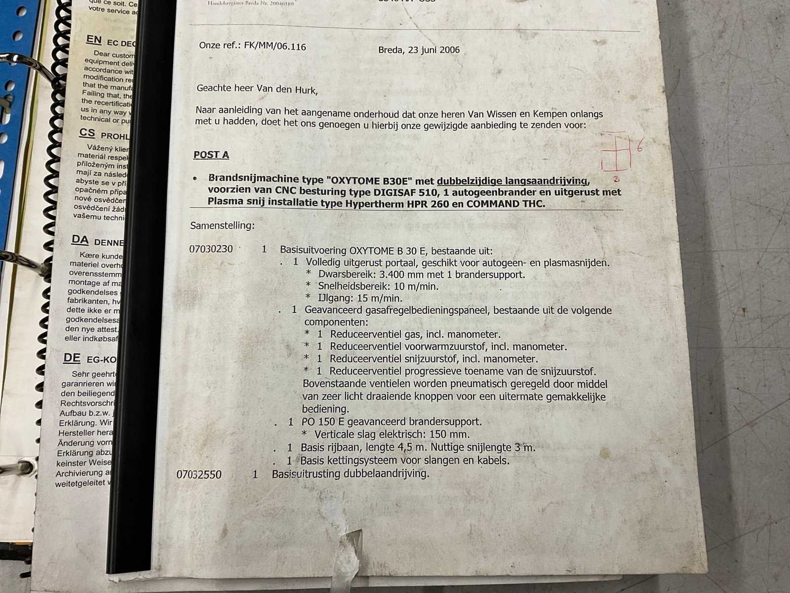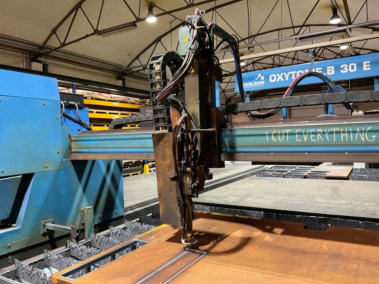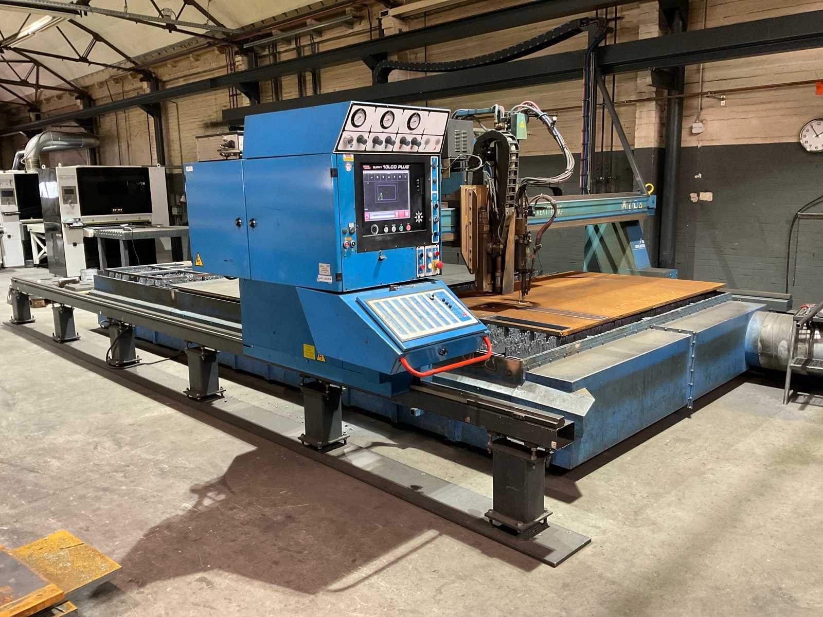 Voorzien van: Lincoln Burny 10LCD PLUS besturing (vernieuwd in 2020 aantoonbaar), onderhoud aantoonbaar, Kemper CPU 224 998701071 afzuiginstallatie (10.000 m3/uur, 11kw, Nee Merk: Oerlikon Type: Oxytome B 30 E Tafel afmeting l: 6600mm Tafel afmeting b: 3100mm Merk en type plasma-unit: HyPerformance Plasma HPR260 Aansluiting: 400V Afmeting l: 8100mm Afmeting b: 4900mm Afmeting h: 2100mm