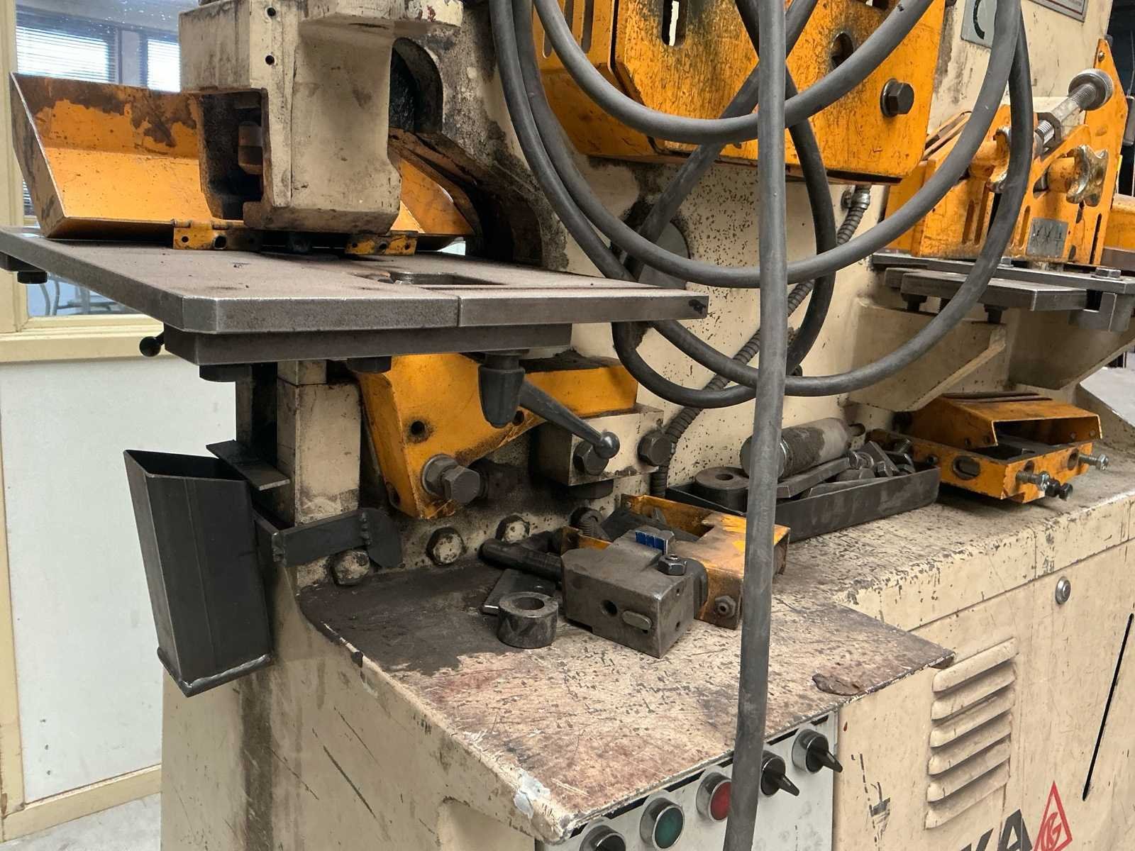 Voorzien van: geschikt voor ponsen en knippen van staal inclusief matrijzen Nee Merk: Geka Type: Multricrop Totale afmeting L: 1500mm Totale afmeting Breedte: 1700mm Totale afmeting Hoogte: 1700mm Serienummer: 2407