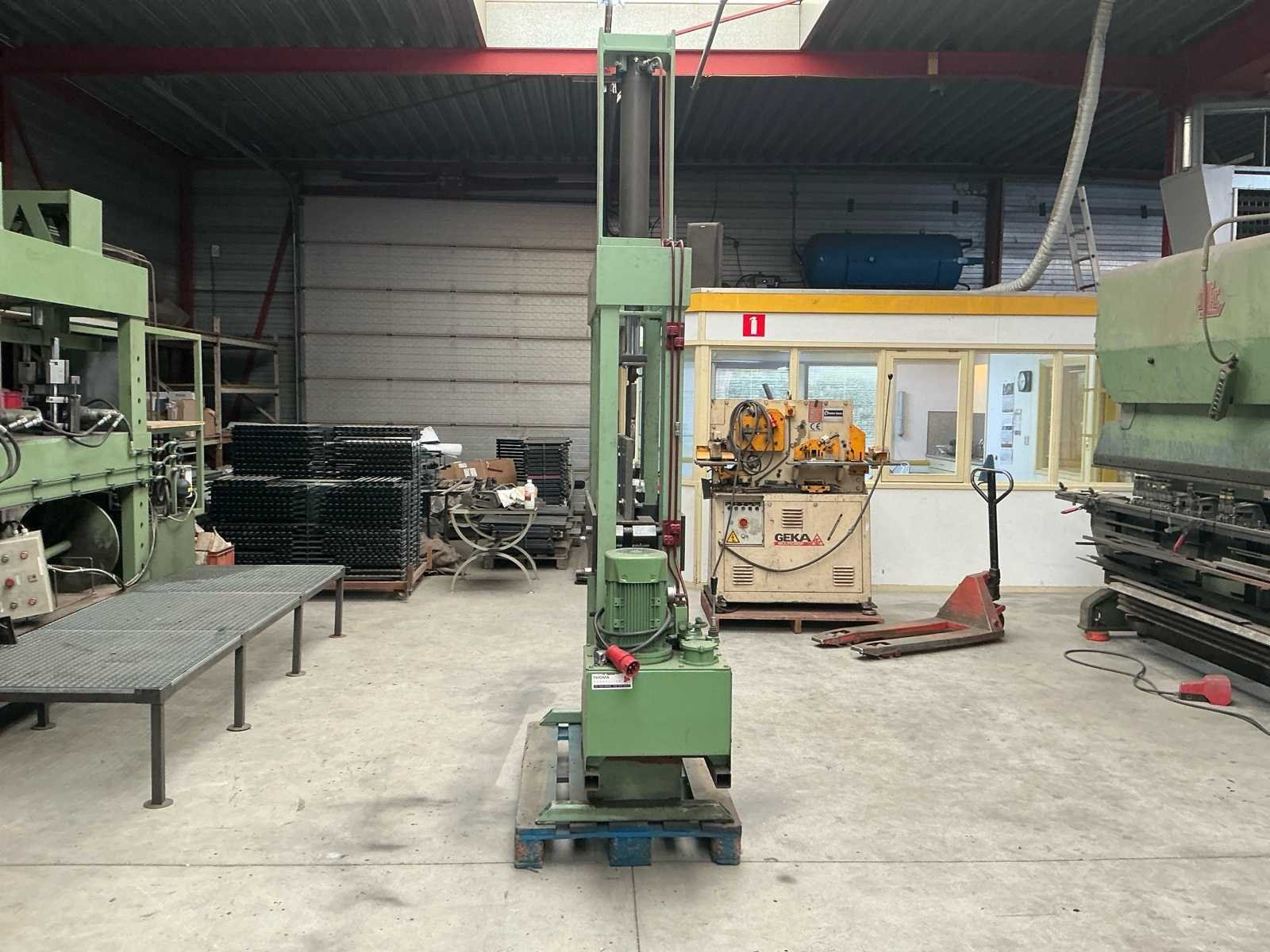 Voorzien van: enkele pers, verstelbaar, hydraulische/electrisch, krachtstroom, diverse mallen Nee Afmeting l: 1500mm Afmeting b: 800mm Afmeting h: 3000mm