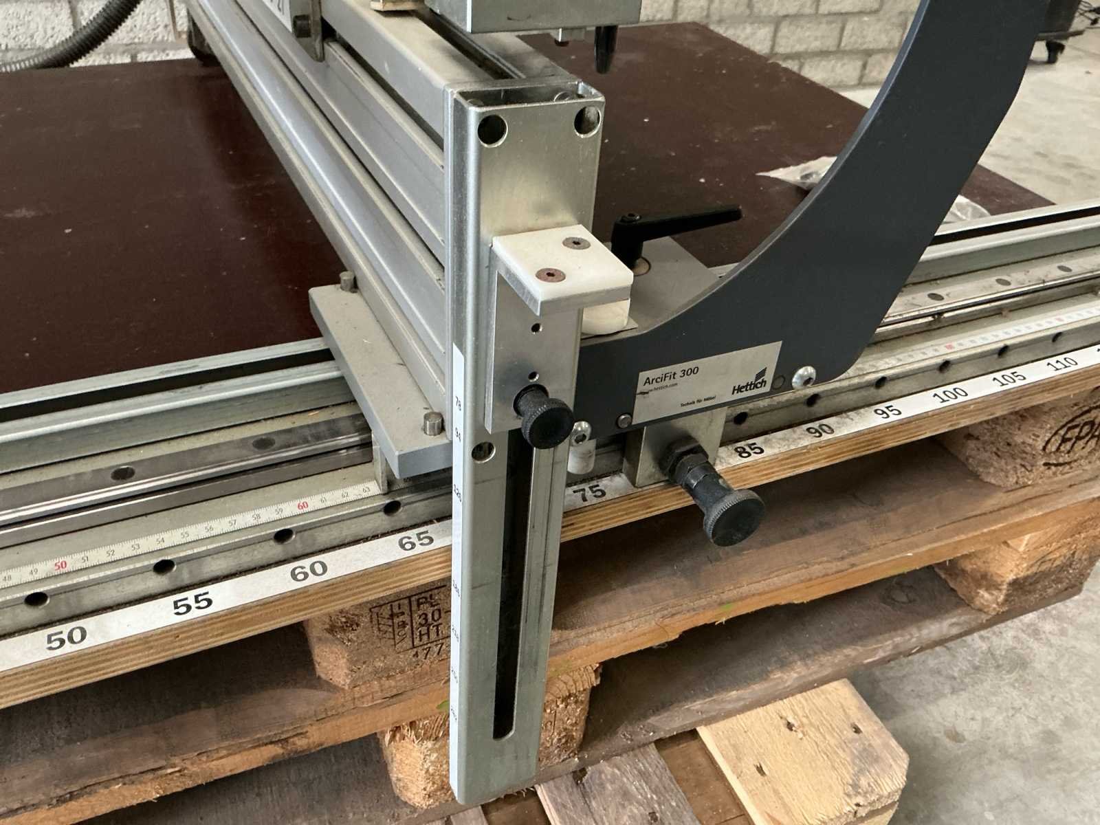 Voorzien van: ArciFit 300 Artikelnummer 9123527, voor het monteren van ArciTech lades en pannenlades, handmatige positionering van het systeem en pneumatisch persen, alle instellingen zijn zonder gereedschap mogelijk, luchtdruk 6 - 8 bar / 100 psi, capaciteit: tot 65 lades per uur, metalen frame. Nee Merk: Hettich Type: Arcifit 300 Nr.10 Bouwjaar: 2011 Serienummer: 07-0218010