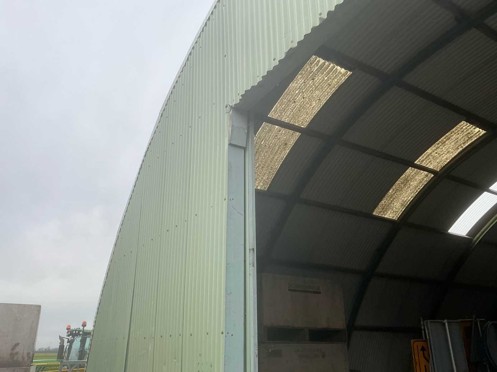 Totale afmeting van de loods is 30 bij 12,5 meter. Totale vloer oppervlakte komt dus neer op circa 350-375m2; Voorzien van verlichting, schuifdeur en zijdeur. Nee Merk: Romneyloods Totale afmeting L: 30000mm Totale afmeting Breedte: 12500mm Totale afmeting Hoogte: 5500mm