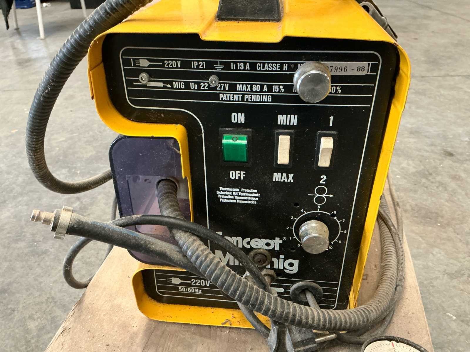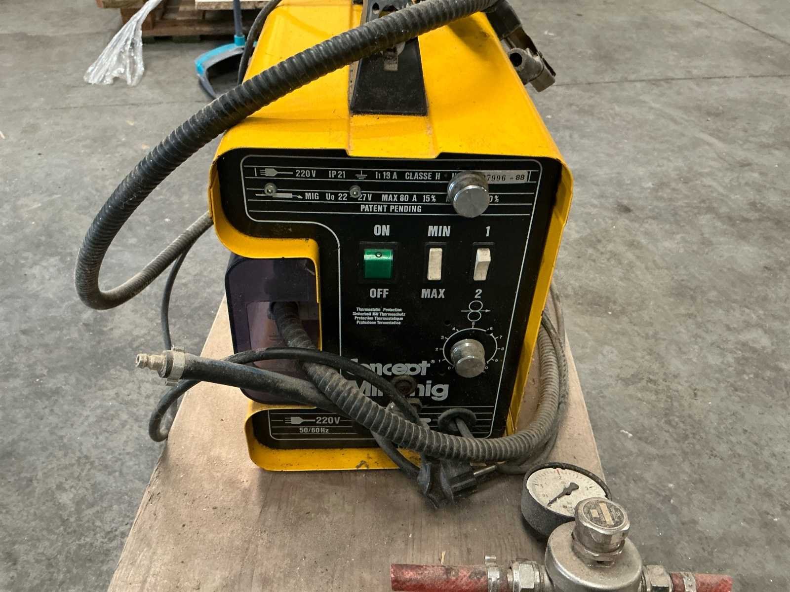Voorzien van: Mig/Mag lasapparaat, merk Concept, model Minimig, 220V; 50/60Hz. Nee Merk: Concept Minmig Draadaanvoerunit: true
