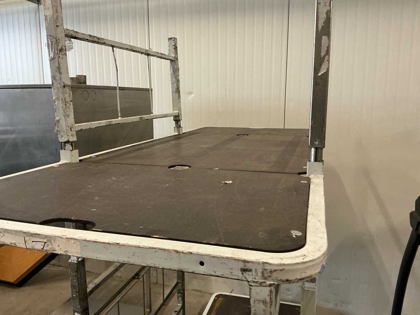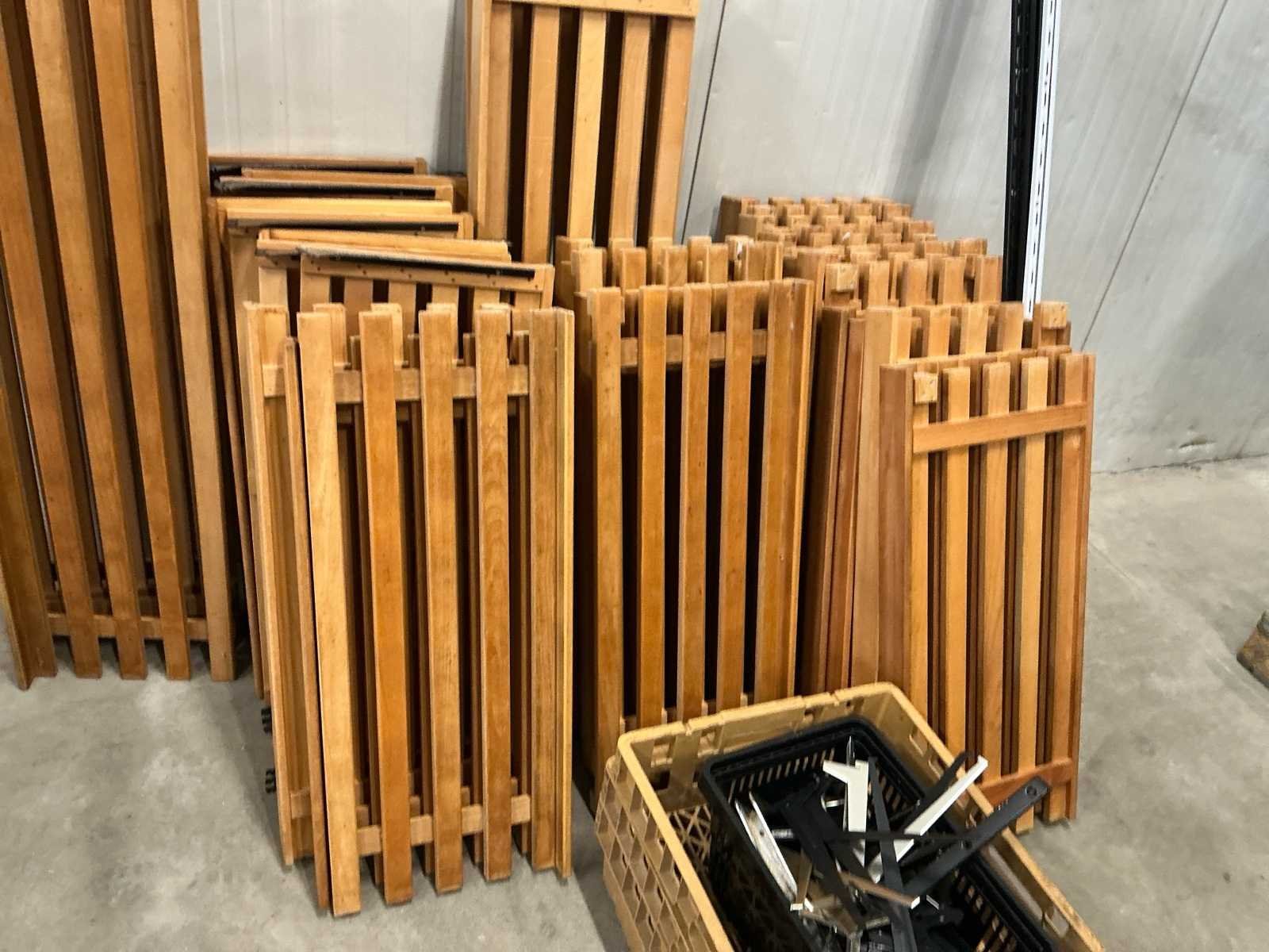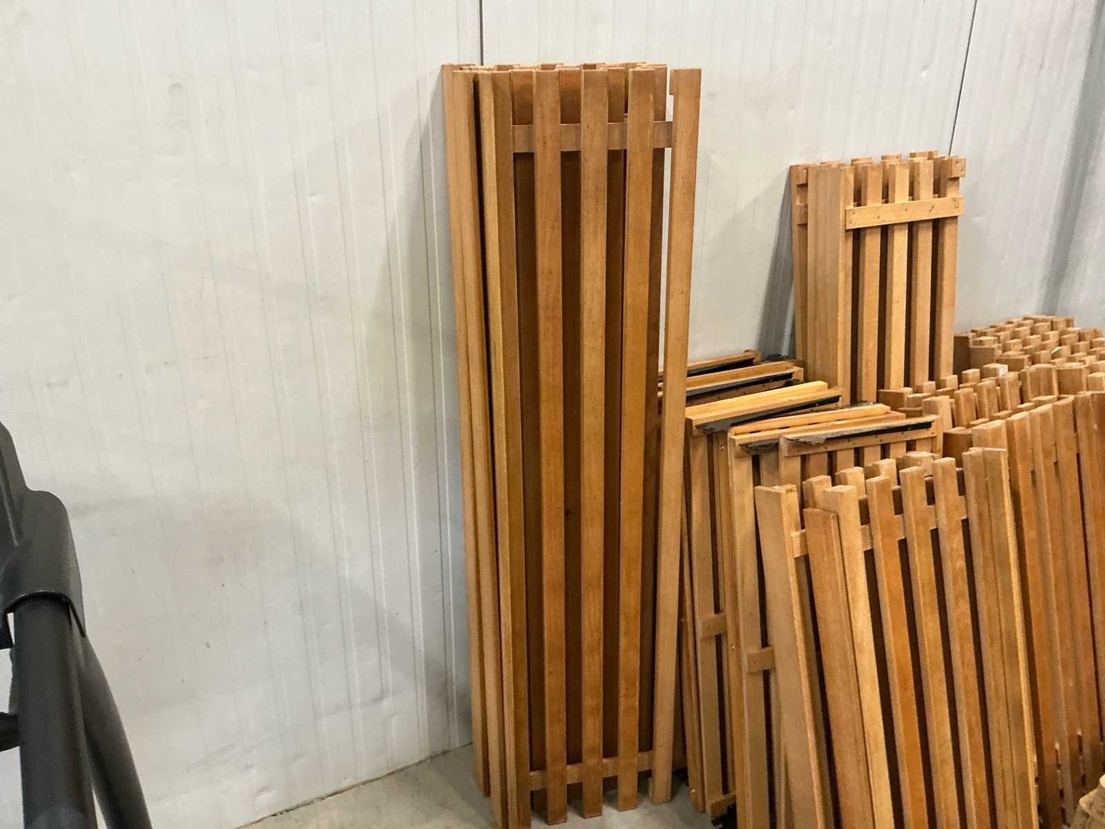 Voorzien van: Kwalitatief houten stellage, 4 planken (150x36cm), 3 planken (136x36cm). 37 planken (90x36cm) 3 bakken, 10 insteek profielen, inclusief stalen transport rek 2 plateaus demonteerbaar. Nee