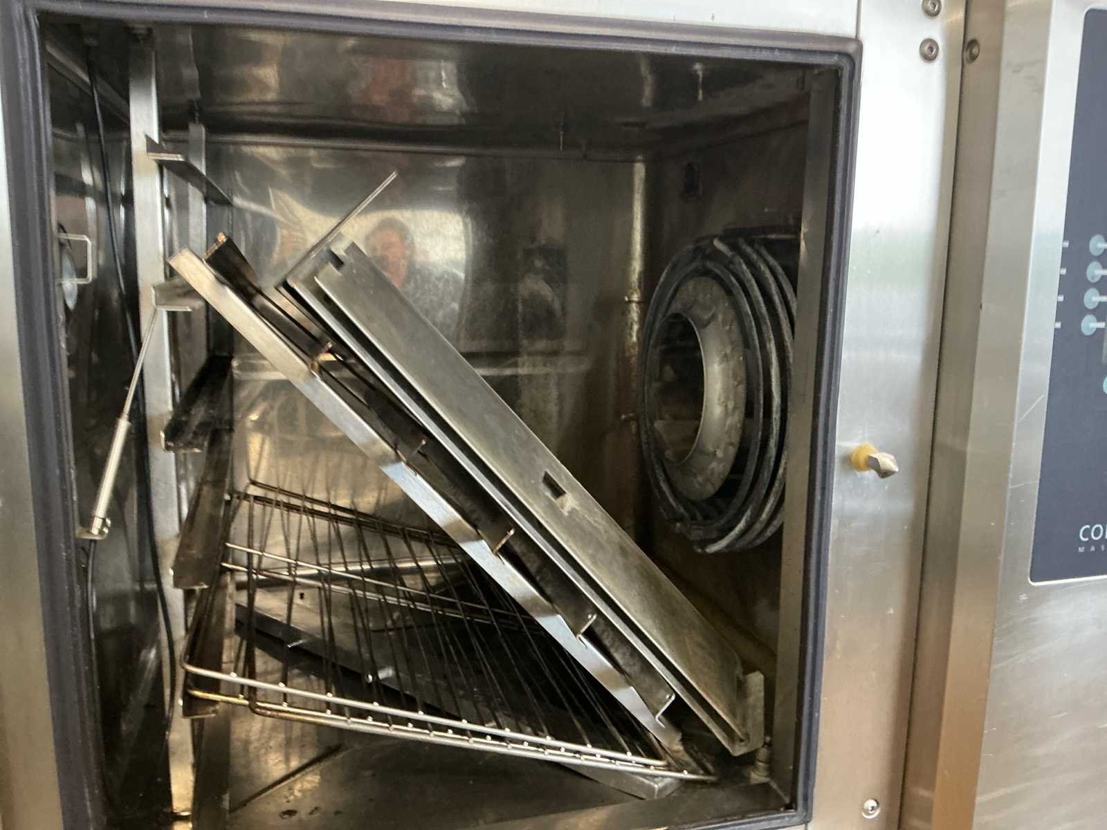 Voorzien van: Trolley rvs op zwenkwielen. De Leventi CM MM Q2 B+DI is een professionele combi-steamer uit 2006, gemaakt in Nederland door Leventi International B.V., met serienummer 06110064, een vermogen van 9,5 kW, werkend op 380/415V 3-fase 50/60Hz, geschikt voor een waterdruk van 1,5–5 bar, voorzien van CE-keurmerk, en ontworpen voor intensief gebruik in professionele keukens. Nee Merk: Leventie Bouwjaar: 2006 Type: CM MM Q2 B+DI Materiaal: Rvs Aantal niveau's: 6 Touchscreen bediening: true Serienummer: 06110064 Gas: true Elektrisch: true Rvs: true