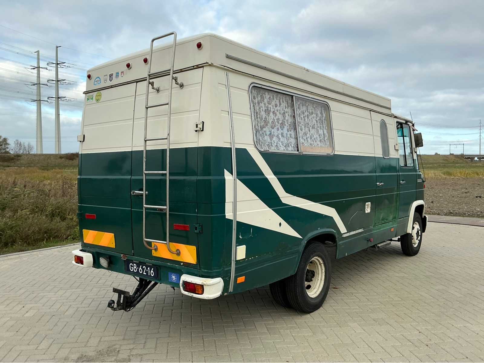 Wegenbelasting vrij. APK vrij. Terug gekeurd voor B rijbewijs. Onder andere voorzien van: 4 cilinder dieselmotor, handgeschakelde versnellingsbak (5 versnellingen), lange wielbasis a 350 cm, dubbellucht banden achter, bladveren achter, verhoogd dak (stahoogte binnen 193 cm), trekhaak, 2persoons bed 200x180 cm, elektronische stuurbekrachtiging, omvormer, stroomaansluiting, ladder,op achterdeur, WAECO koelkast, gaskookstel, diverse opbergruimtes, campingstoelen, campingtafel, losse zijtent, draaibare bijrijdersstoel, schuiframen, gordijnen, zijdeur, achterdeuren, inklapbare opstap voor zijdeur, reservewiel, wielkeg. Nee Kenteken: GB-62-16 Merk: Mercedes-Benz Model: L608D Chassisnummer: 310325-13-158302 Aantal zitplaatsen: 2 Bruto BPM (NL): 0€ Transmissie: Handgeschakeld 5 versnellingen Datum eerste toelating (NL): 1974-12-05 Datum eerste toelating: 1974-12-05 APK vervaldatum: n.v.t. Bouwjaar: 1974 Afgelezen kilometerstand: 311062km NAP status: Logisch Vermogen (kW): 63kW Vermogen (pk): 86hp Cilinderinhoud: 0cc Emissieklasse: 0 Brandstof: diesel Aantal deuren: 5 Kleur: Groen Carrosserie: kampeerwagen Lengte: 600cm Breedte: 225cm Hoogte: 280cm Ledig gewicht: 3120