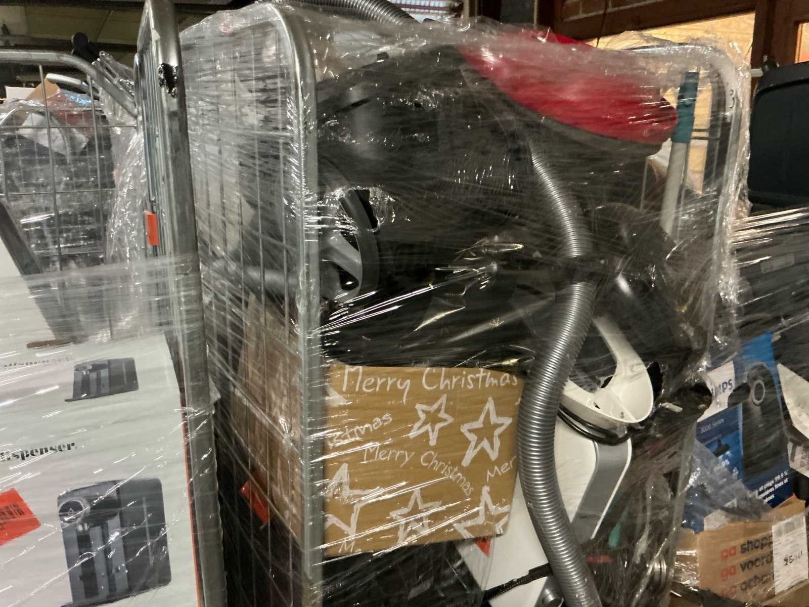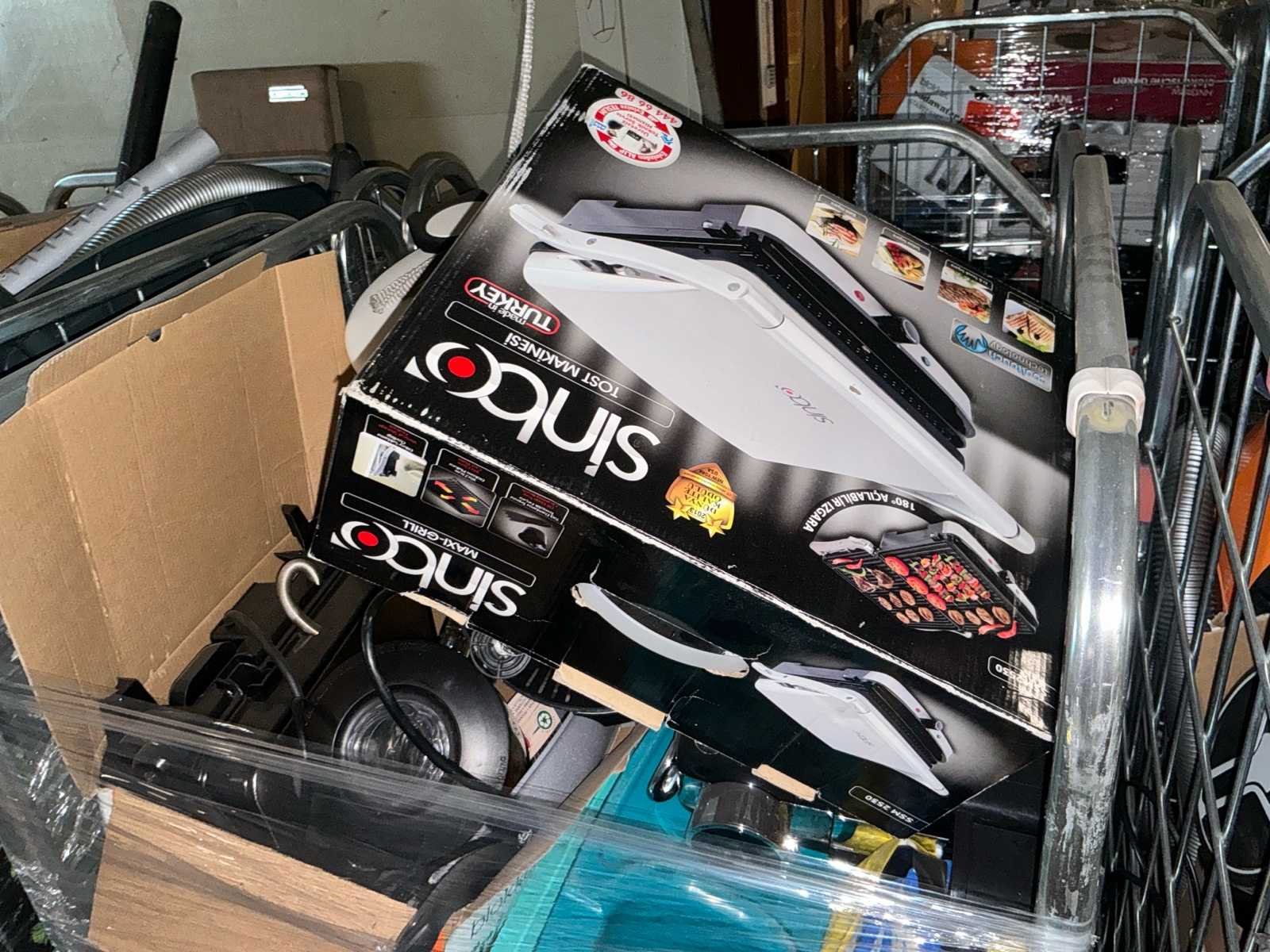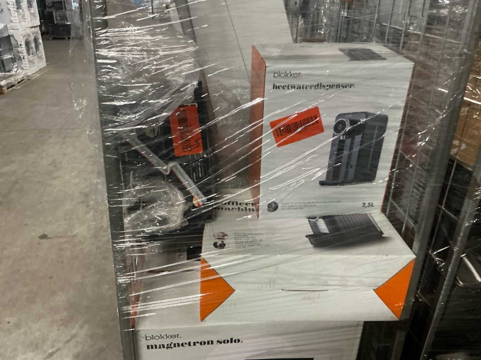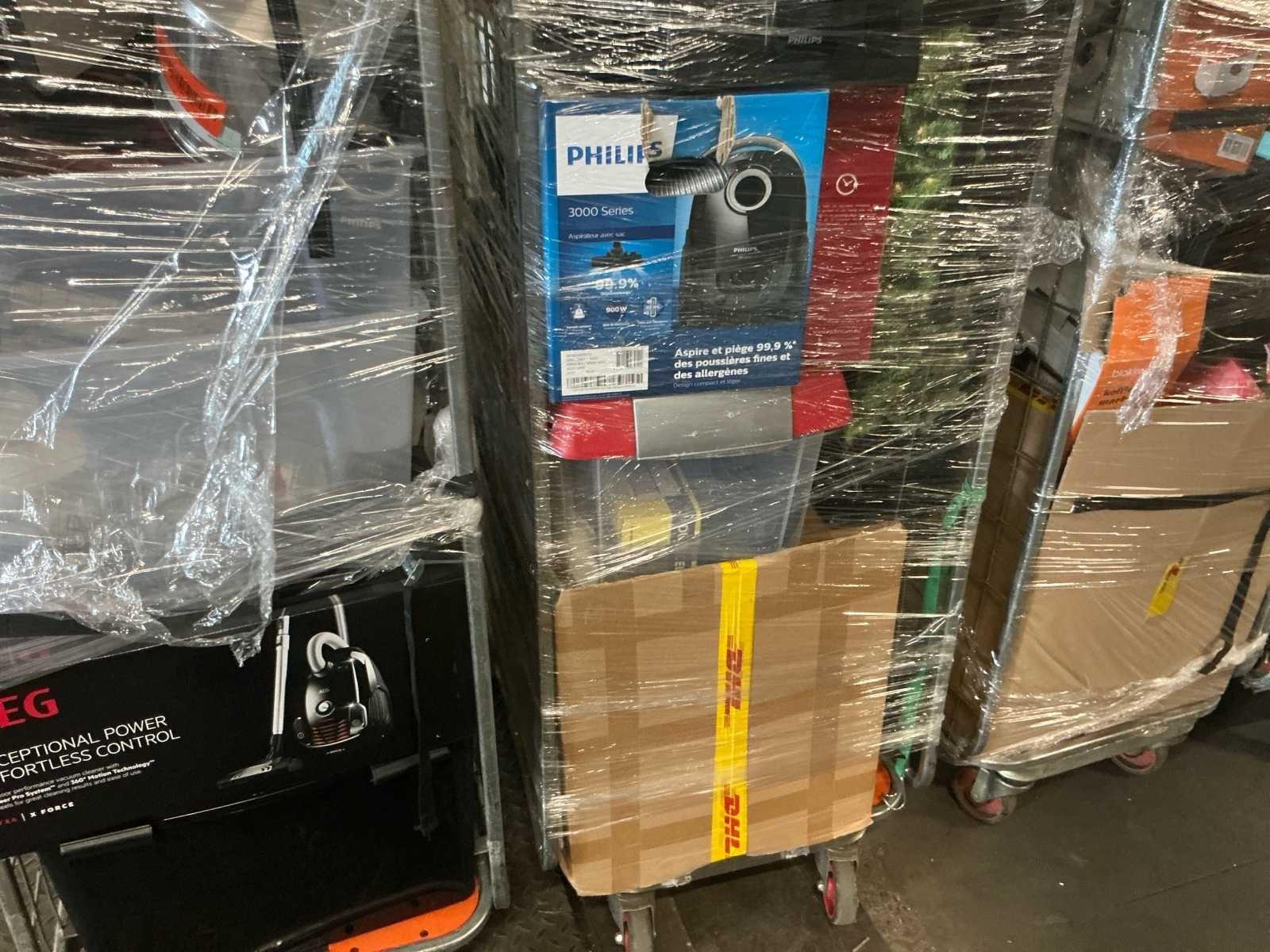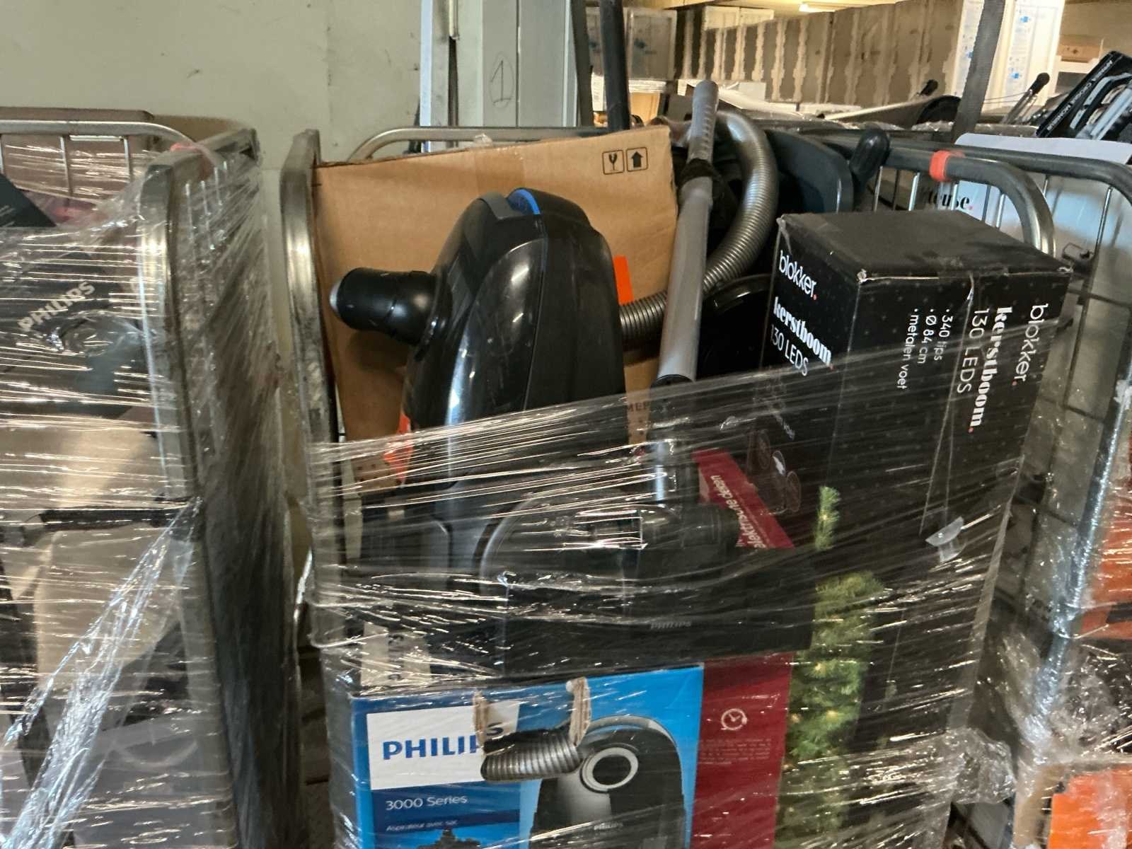 Bestaande uit: inhoud van 12 rolcontainers. Onder andere: stofzuigers, magnetron, koffiezetapparaten, waterkokers, air-fryers, etc. Let op! Dit betreffen retourgoederen, deze zijn niet gecontroleerd. (Rolcontainers niet inbegrepen) Nee