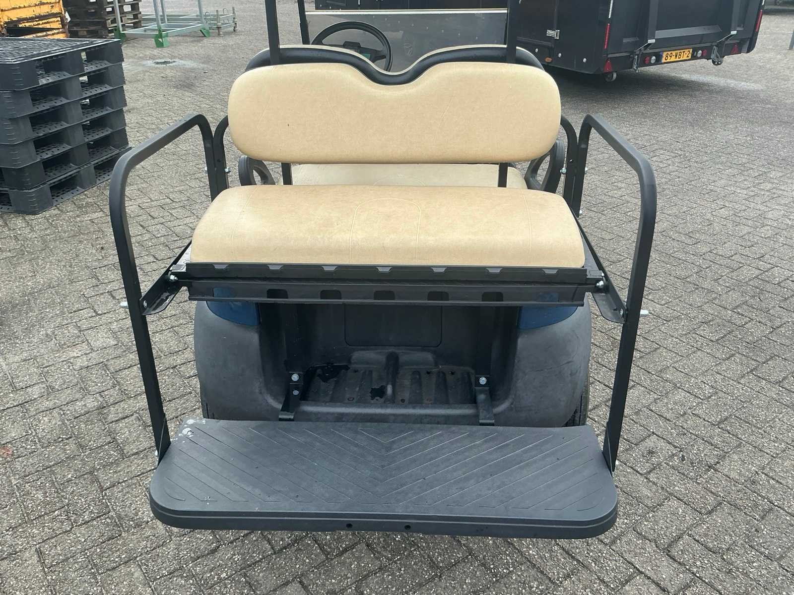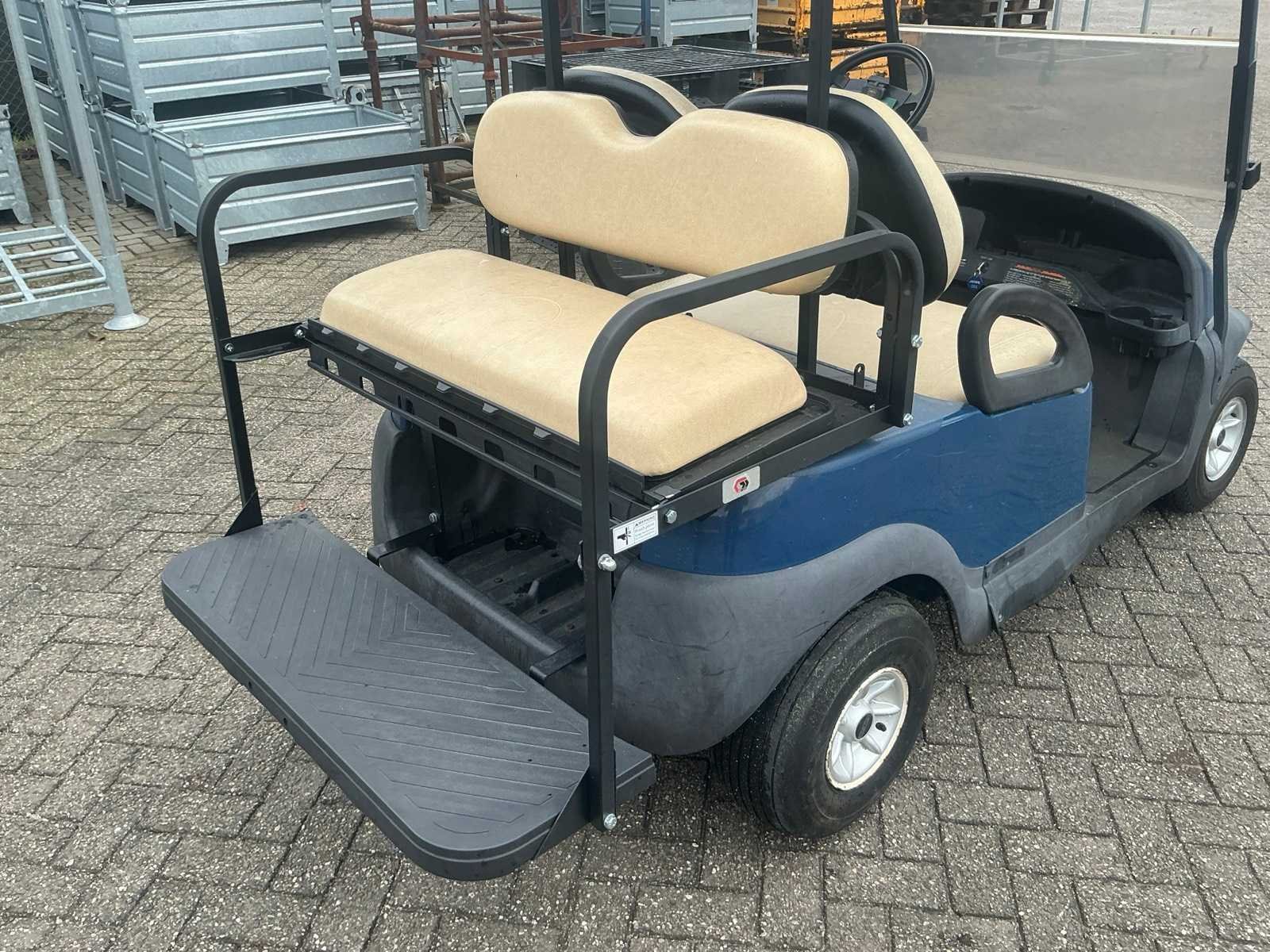 Rijdt goed. Van Lithium pakket voorzien Nee Merk: Club Car Aantal personen: 4 Elektrisch: true Kleur: Blauw Lengte: 260cm Breedte: 110cm Hoogte: 175cm