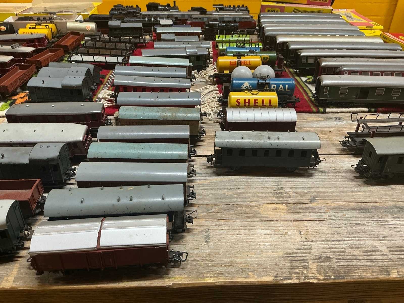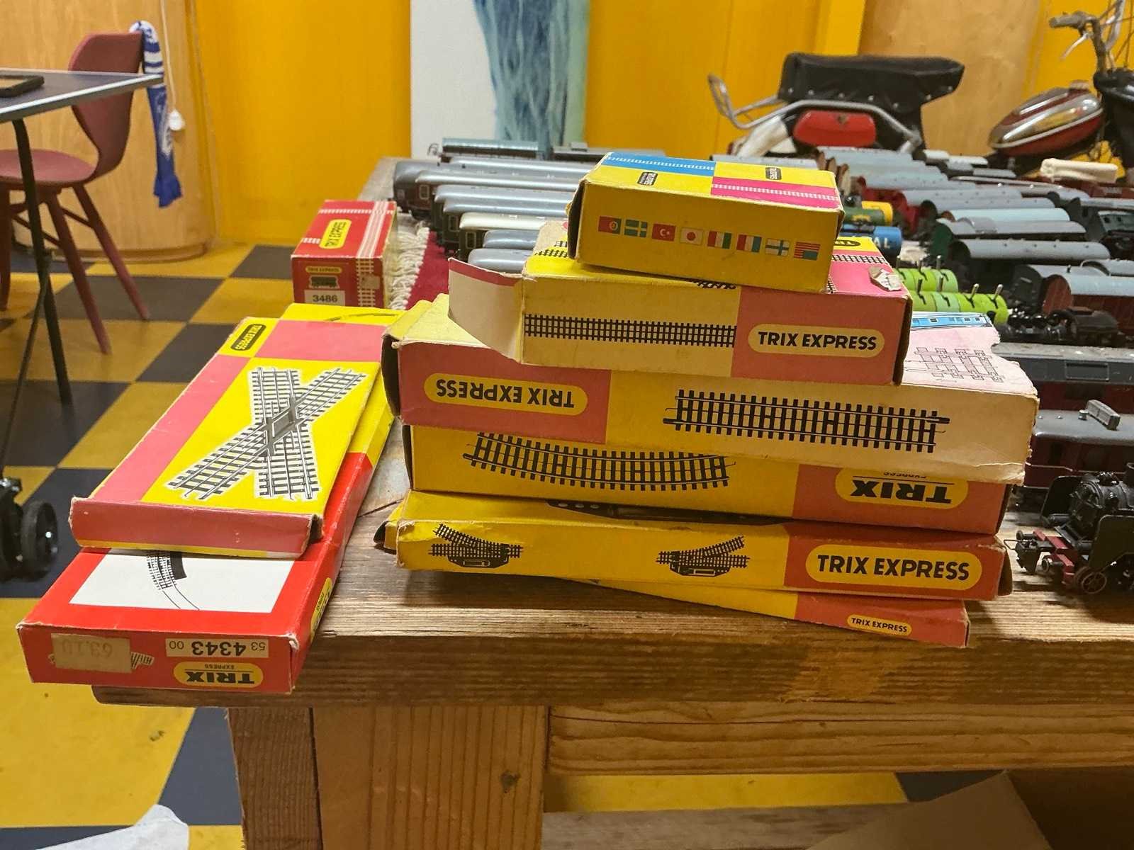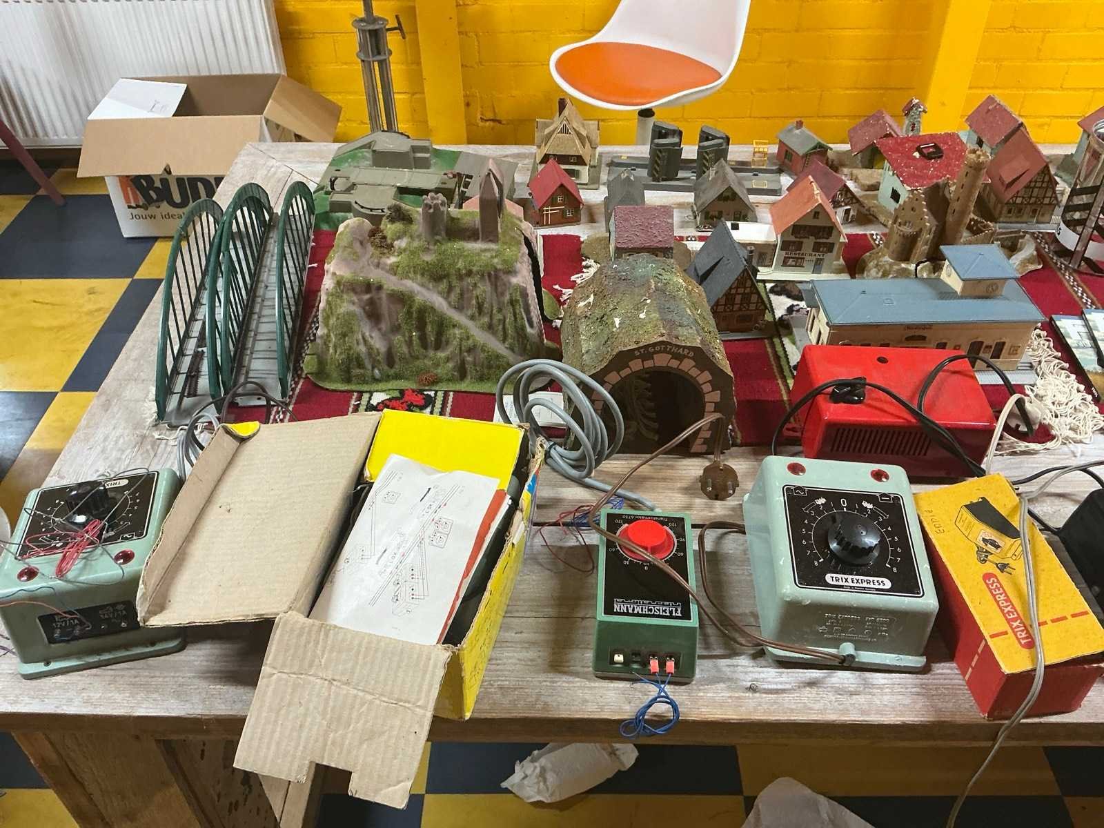 Voorzien van: diverse rails, transformatoren, diverse model accessoires, 8 treintjes, ca. 70 wagons, station, 2 bruggen, diverse huisjes No Merk: Trix Expres