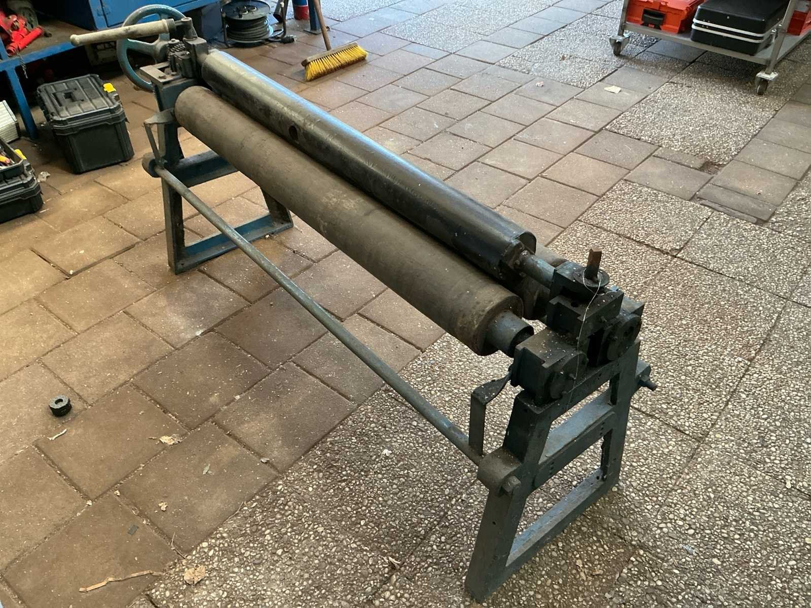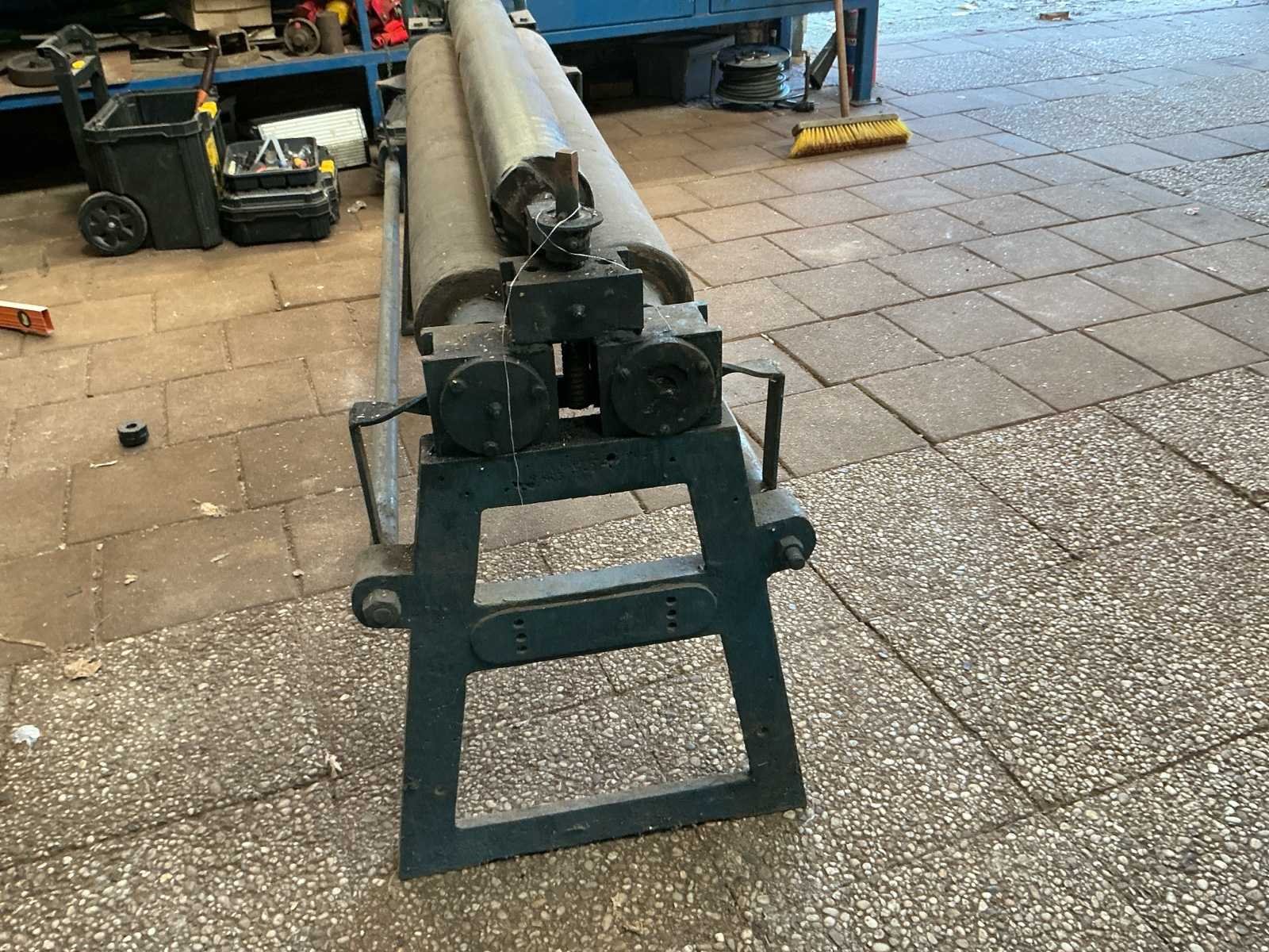 Let op! Marge (geen BTW) No Capaciteit lengte: 1270mm Aantal rollen: 3 Bovenrol Ø ca.: 100mm Rollengte: 1270mm Besturing, merk, type: Handbesturing Machinegewicht: 250kg Afmeting l: 2050mm Afmeting b: 500mm Afmeting h: 850mm