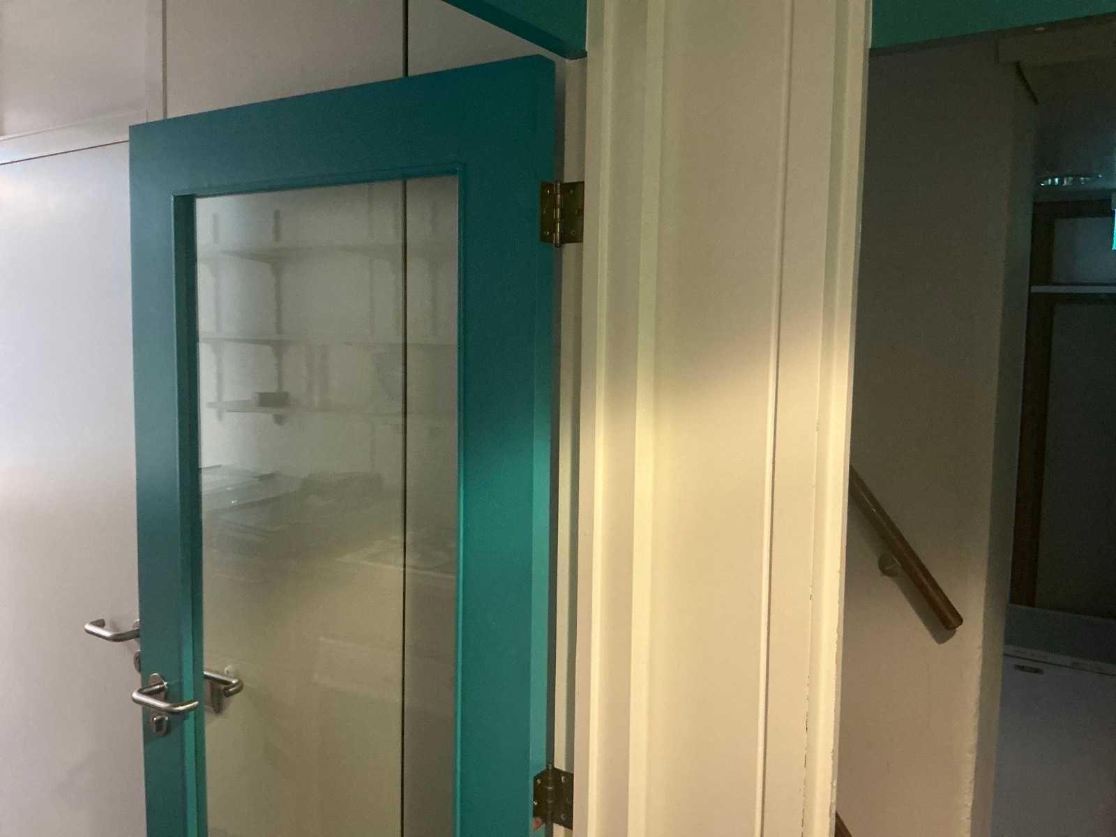 Aantal deuren; 1 schuifdeur; 1 grote klapdeur; 5 Blauwe deuren zonder kozijnen; 1 Witte deur met glas; 6 opdek deuren; 2 smalle glazen deuren Nee Merk: Diverse deuren Buitendeur: true Opdek: true Beglaasd: true Schuifdeur: true Glas: true