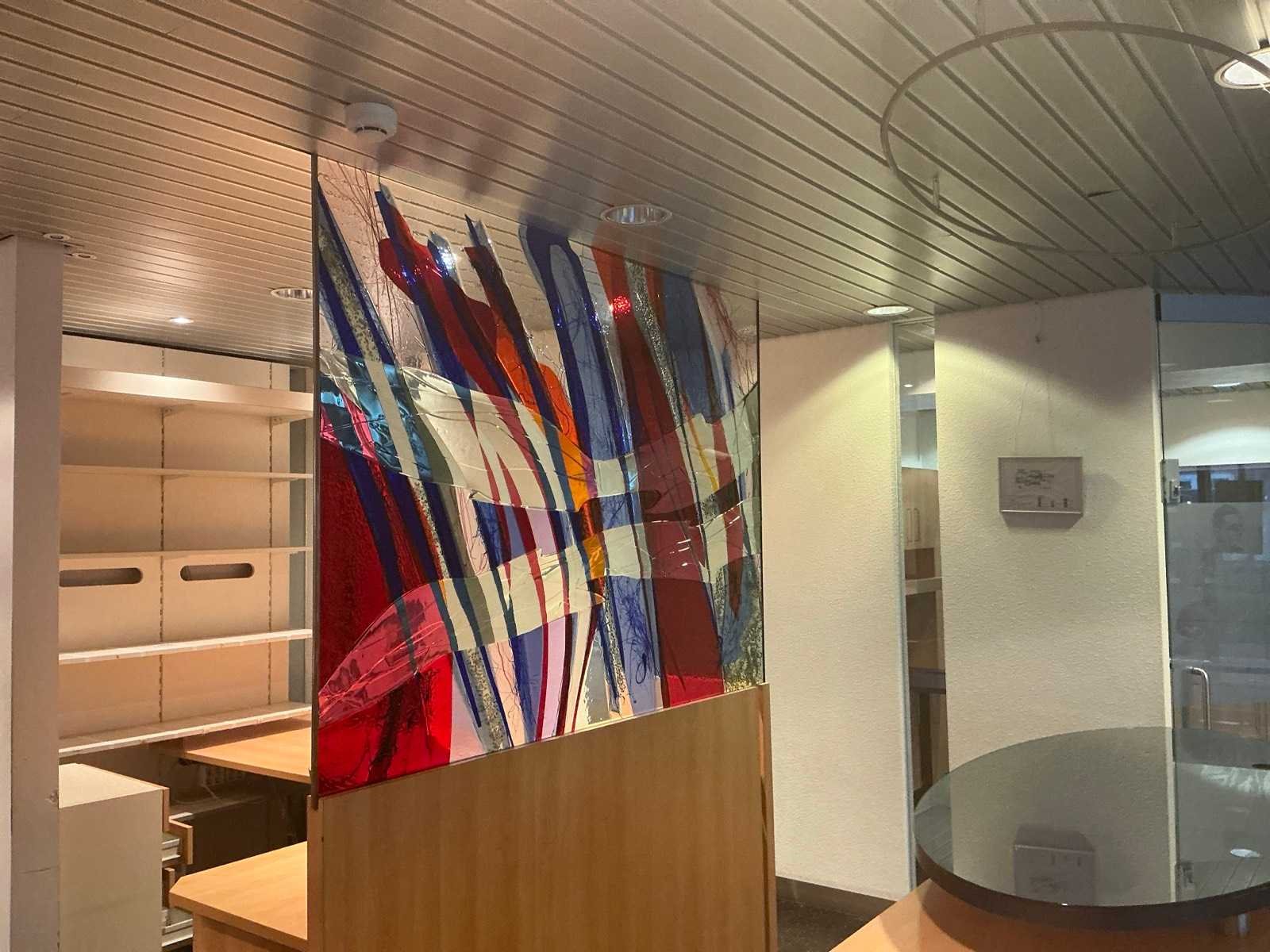 Glas kunst van Louis La Rooy Nee Kunstenaar: Louis La Rooy Materiaal: Glas Handtekening/stempel: true Lengte: 1.5cm Breedte: 200cm Hoogte: 146cm
