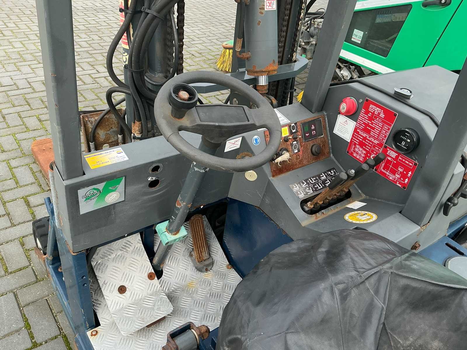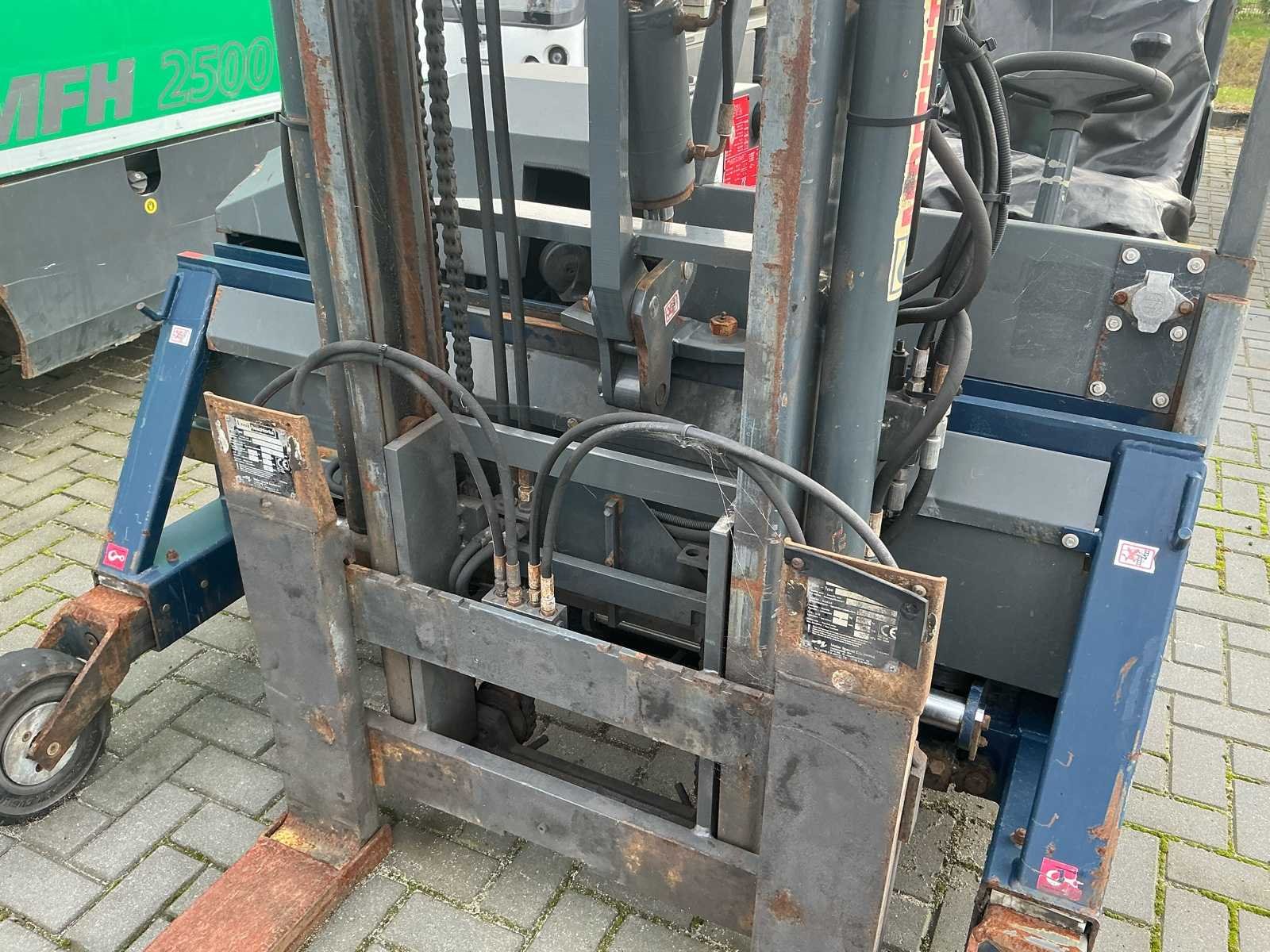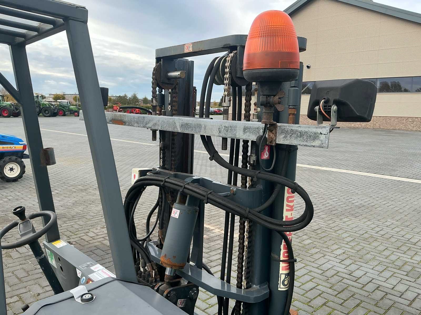 Kubotamotor, accu is leeg. Machine werkt wel. Nee Merk: MOFFETT-KOOI Type: M1 15.1 Bouwjaar: 2005 Brandstof: Diesel Aantal wielen: 3 Afgelezen urenstand: 687 Free-lift: true Duplex mast: true Eigen gewicht: 1478kg Hefvermogen: 1500kg Lepellengte: 1200mm Max. hefhoogte: 2200mm Minimale doorrijhoogte: 2000mm Totale afmeting L: 2600mm Totale afmeting Breedte: 1700mm Diesel: true Vol rubber banden: true