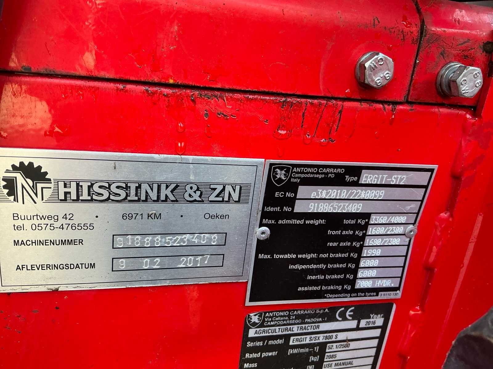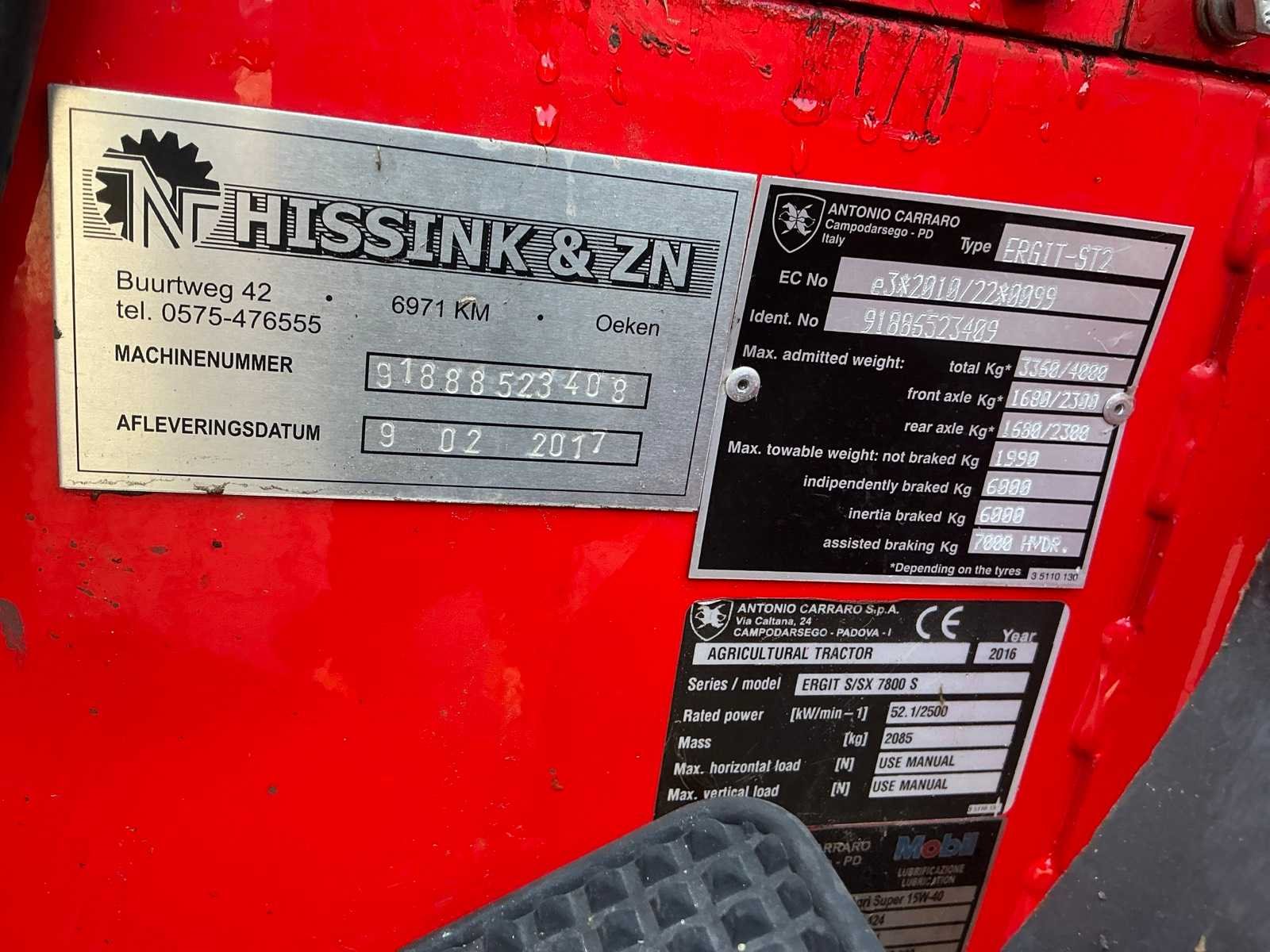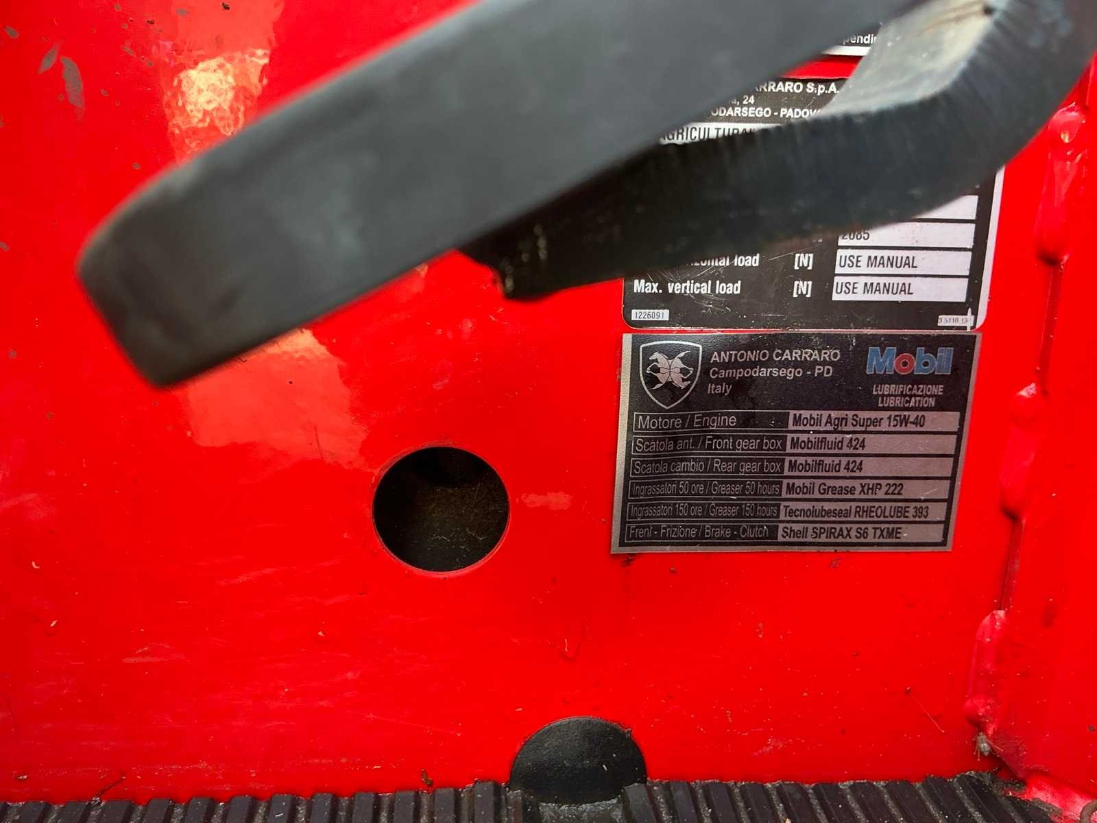 Voorzien van: verlichting, werkverlichting, mechanische geveerde stoel, 2x dubbelwerkend ventiel, 1x enkelwerkend ventiel, bullbar, snelwissel achter, spiegel, knik gestuurd Nee Merk: Antonio carraro Type: SX 7800 ERGIT-ST2 Bouwjaar: 2017 Serienummer: 91886523409 Kenteken: TJV-19-V Afgelezen urenstand: 4531 Versnellingsbaktype: Handgeschakeld Bandenmaat voor: 320/7R20 Bandenmaat achter: 320/70R20 Aantal hydraulische ventielen achter: 6 Frontgewichtenset: true Eigen gewicht: 3360kg Totale afmeting L: 3600mm Totale afmeting Breedte: 1350mm Totale afmeting Hoogte: 2400mm Datum eerste toelating: 2017-06-30 Self drive export possible : true