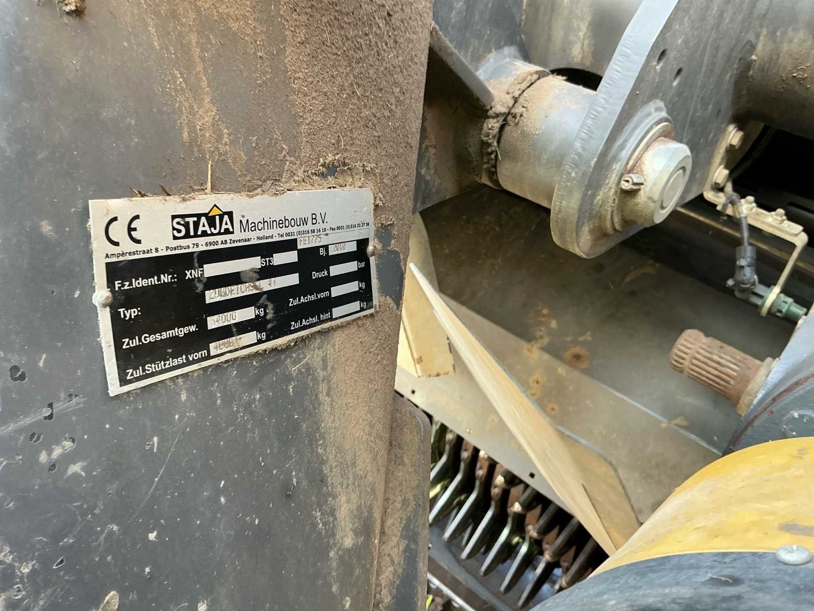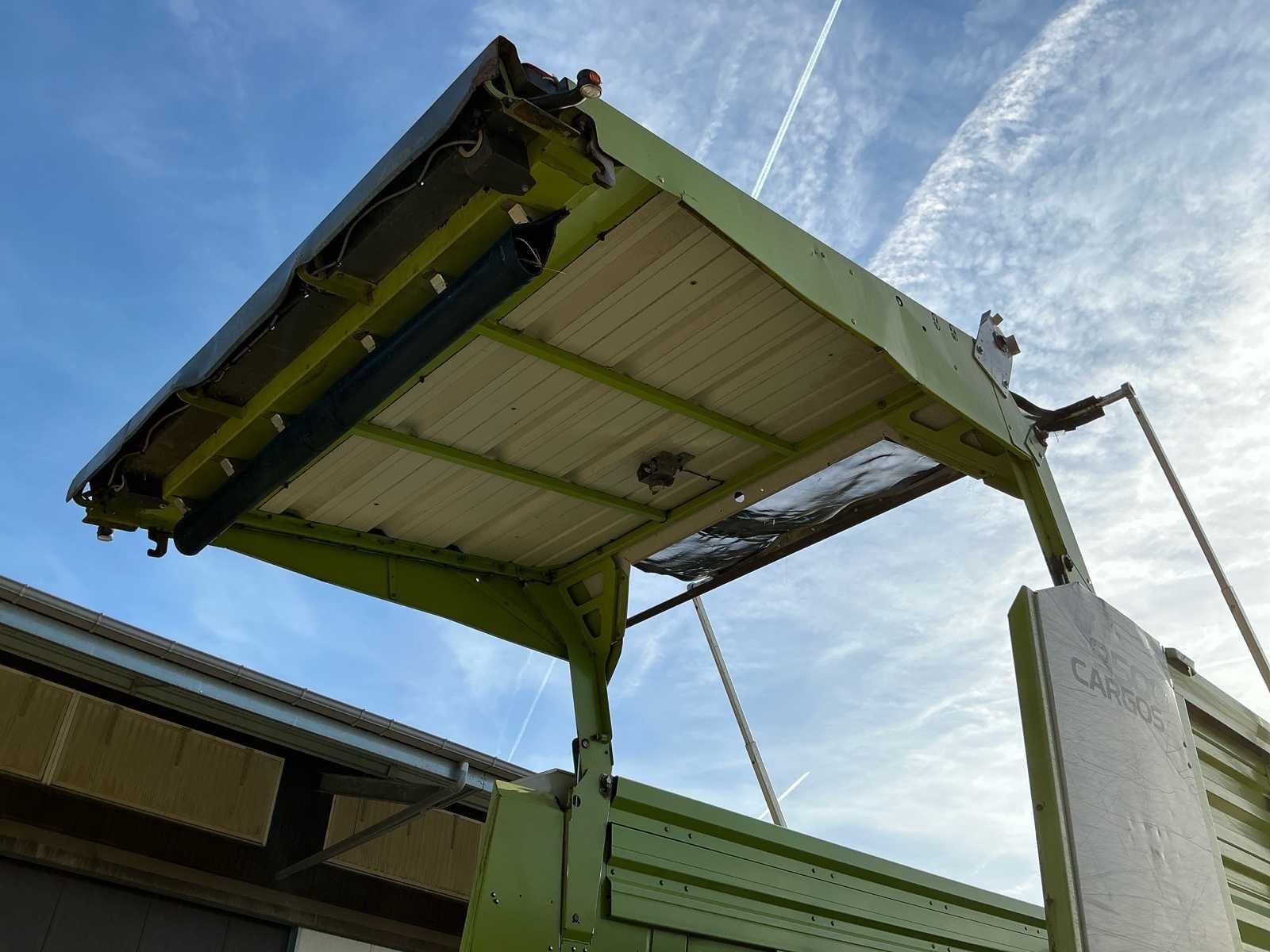 Voorzien van: aftakas, verlichting, luchtremmen, wielkeggen, picknick-up breedte 2000mm, Breedte Pick-Up 2 m, transportatie lengte 10.8 m, transport breedte 2.87 m, transport hoogte 3.87 m, aantal messen 40, Min snijlengte 38 mm, laadvolume 44 m³, geperst laden, 88 m³, aantal assen 2, geforceerde besturing, mechanische kettingspanners, geschroefde bodemkettinggeleiders, rotor met individuele tandsegmenten, instelbare voorspanning van de messen, neerklapbare snijgoot, uitklapbare messenhouder, opbergruimte voor extra set messen, hydraulische knikdissel, demonteerbare laadaggregaat aftakas, CEMIS 700, Ecosyl doseerapparaat. Nee Merk: Claas Type: Cargos 9500 Bouwjaar: 2010 Serienummer: FE1775 Kenteken: LGK95B Opslagcapaciteit: 44 Bandenmaat: 710/50 R26.5 Maximaal aantal messen: 40 Stuuras: true Afgelezen urenstand: 8907 Totale afmeting L: 10800 Totale afmeting Breedte: 2880 Totale afmeting Hoogte: 3990