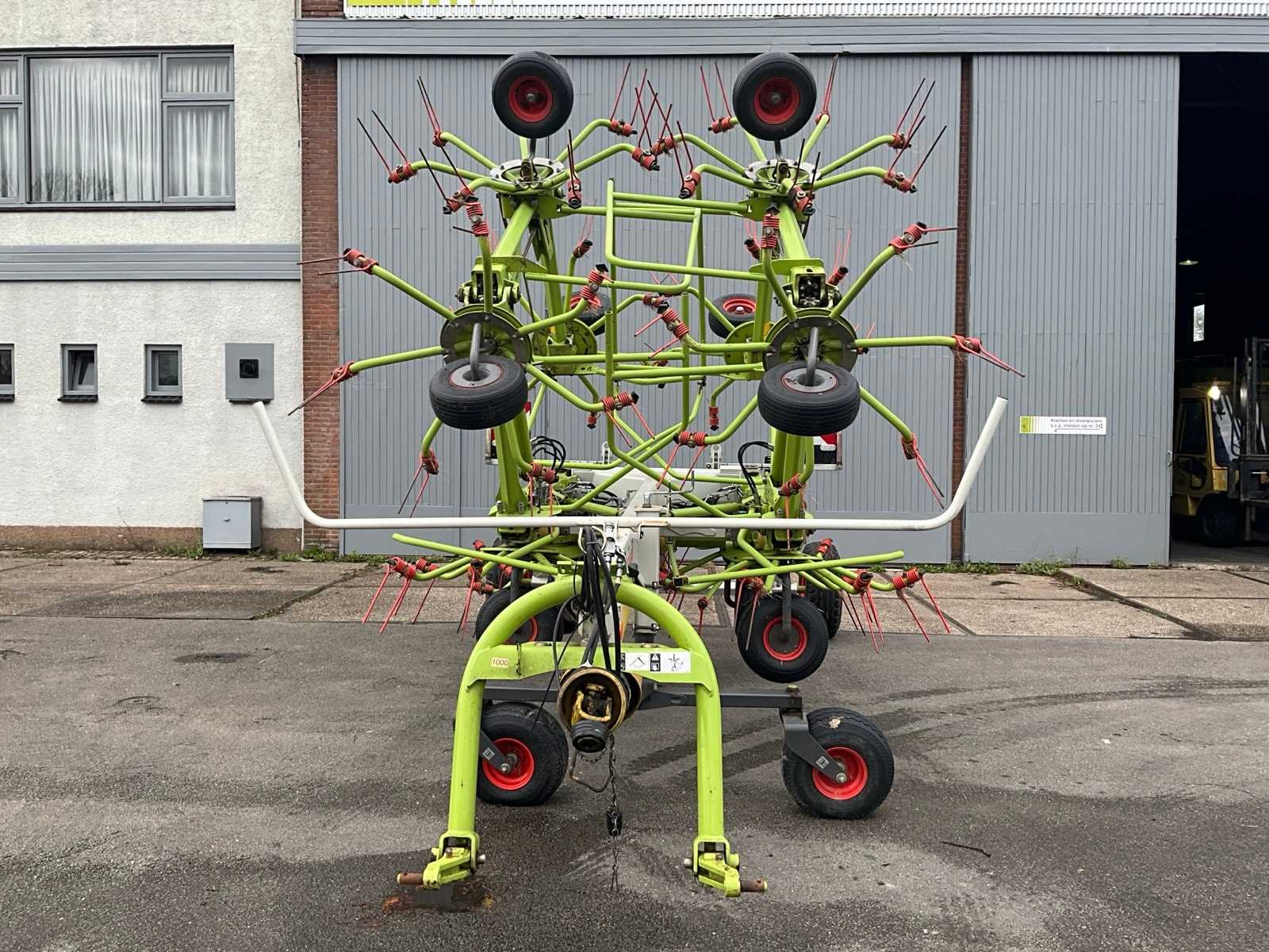 - Werkbreedte: 13,00 mtr. - Aantal rotoren: 10 - Armen per rotor: 7 - Aandrijving: 1000 toeren - Bandenmaat transportonderstel: 260/75-15.3 - Bandenmaat middelste rotoren: 18.5x8,5-8 - Bandenmaat overige rotoren: 16x16.5-8 - Verlichting met breedtemarkering Nee Merk: Claas Type: Volto 1300T Serienummer: 63101661 Bouwjaar: 2015 Kenteken: LBR-93-S Werkbreedte: 13000mm
